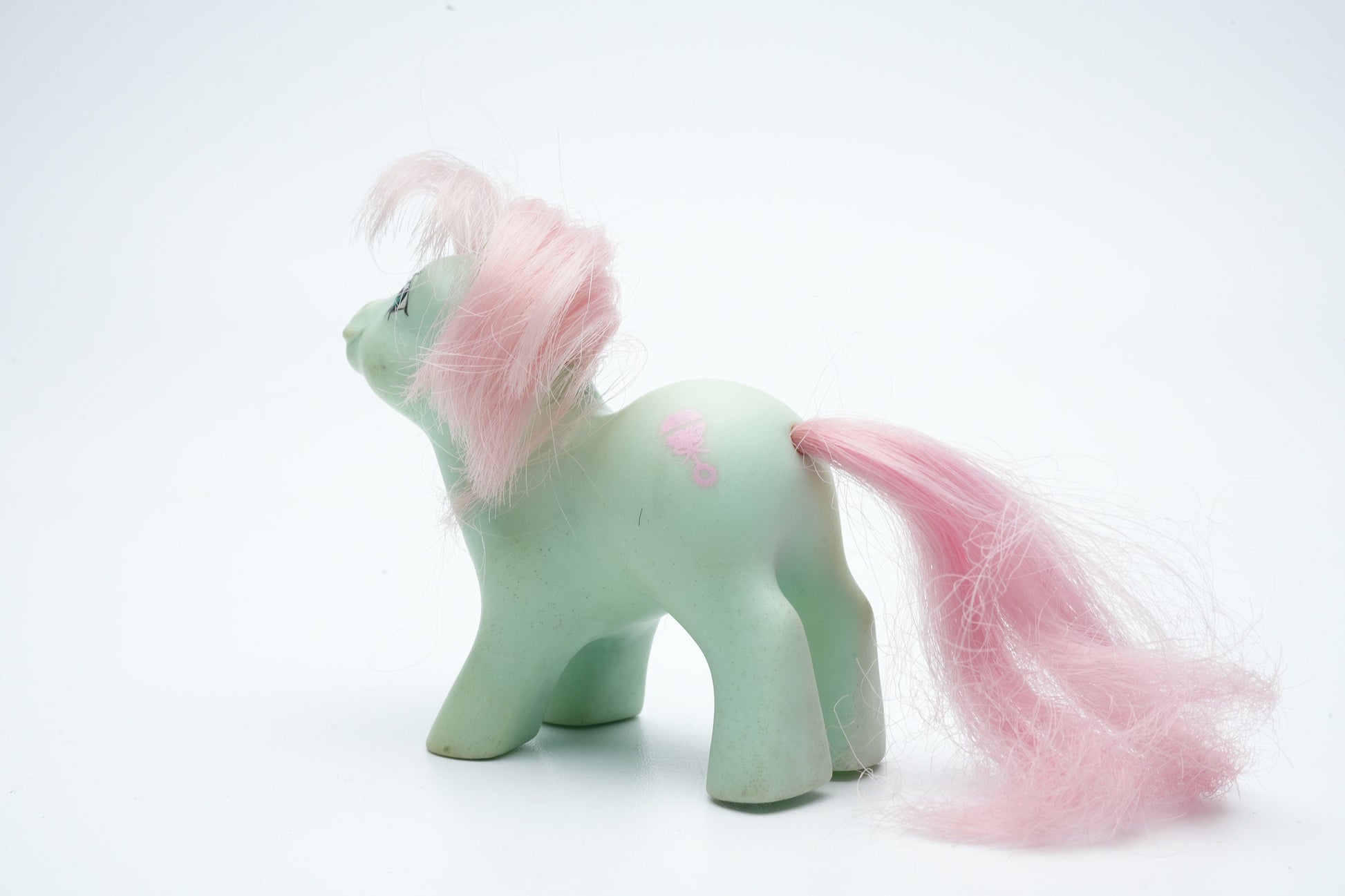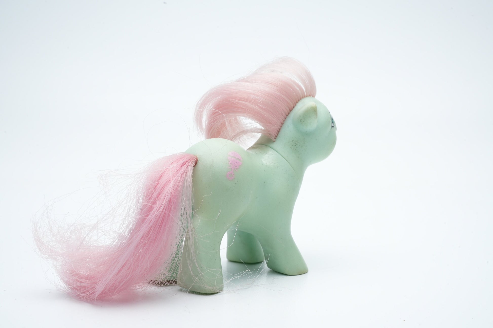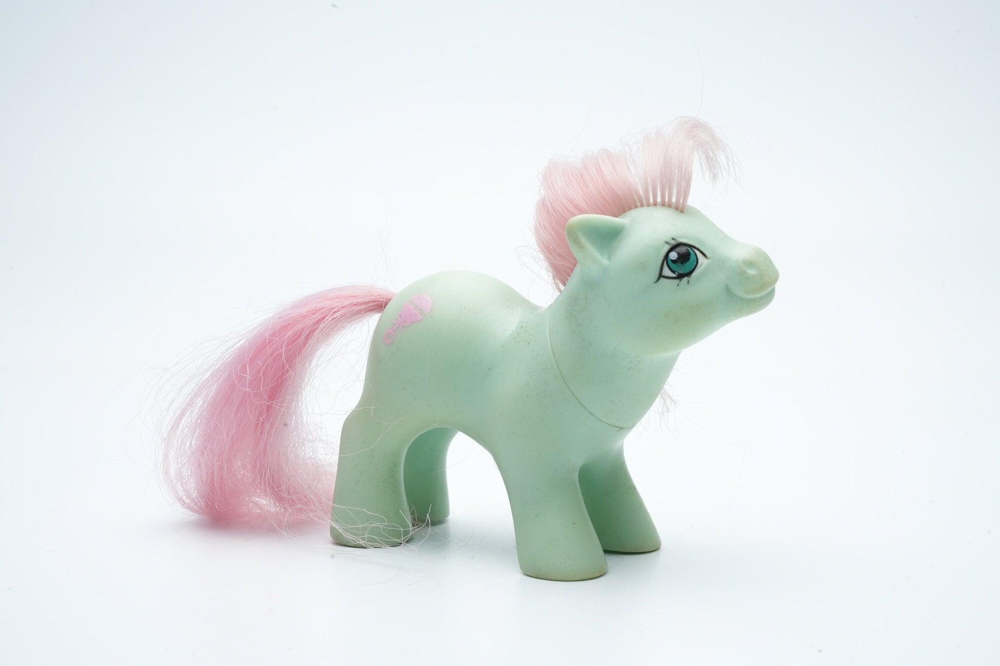 Maak kennis met de Baby Cuddles Pony, een charmante vintage My Little Pony die een nieuw thuis zoekt! Deze schattige pony is niet alleen een nostalgisch stuk speelgoed, maar ook een symbool van vriendschap en verbeelding dat generaties heeft geïnspireerd. Voeg een vleugje magie toe aan je verzameling met deze iconische pony.