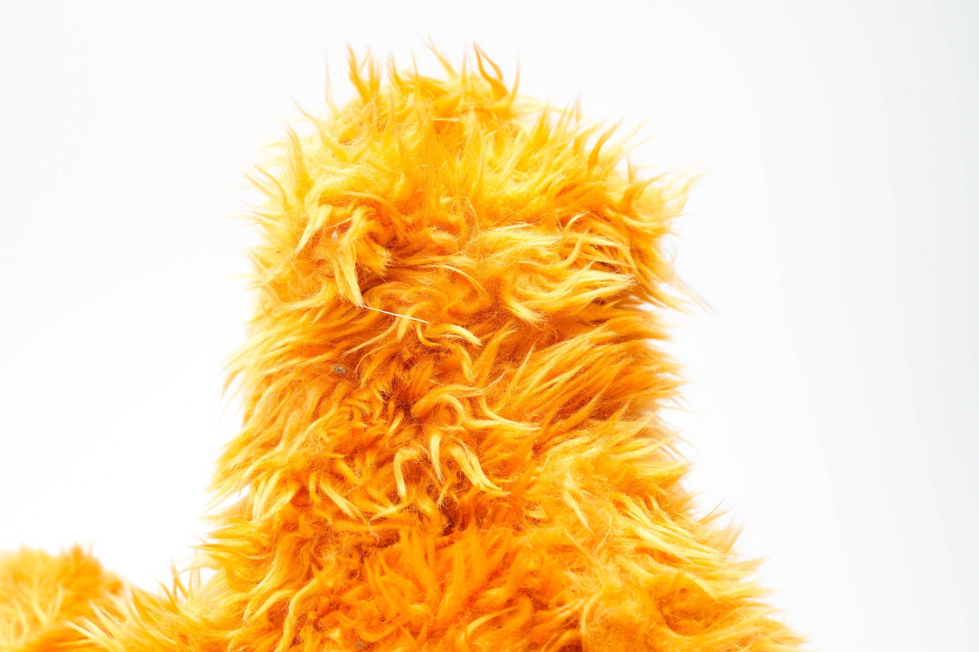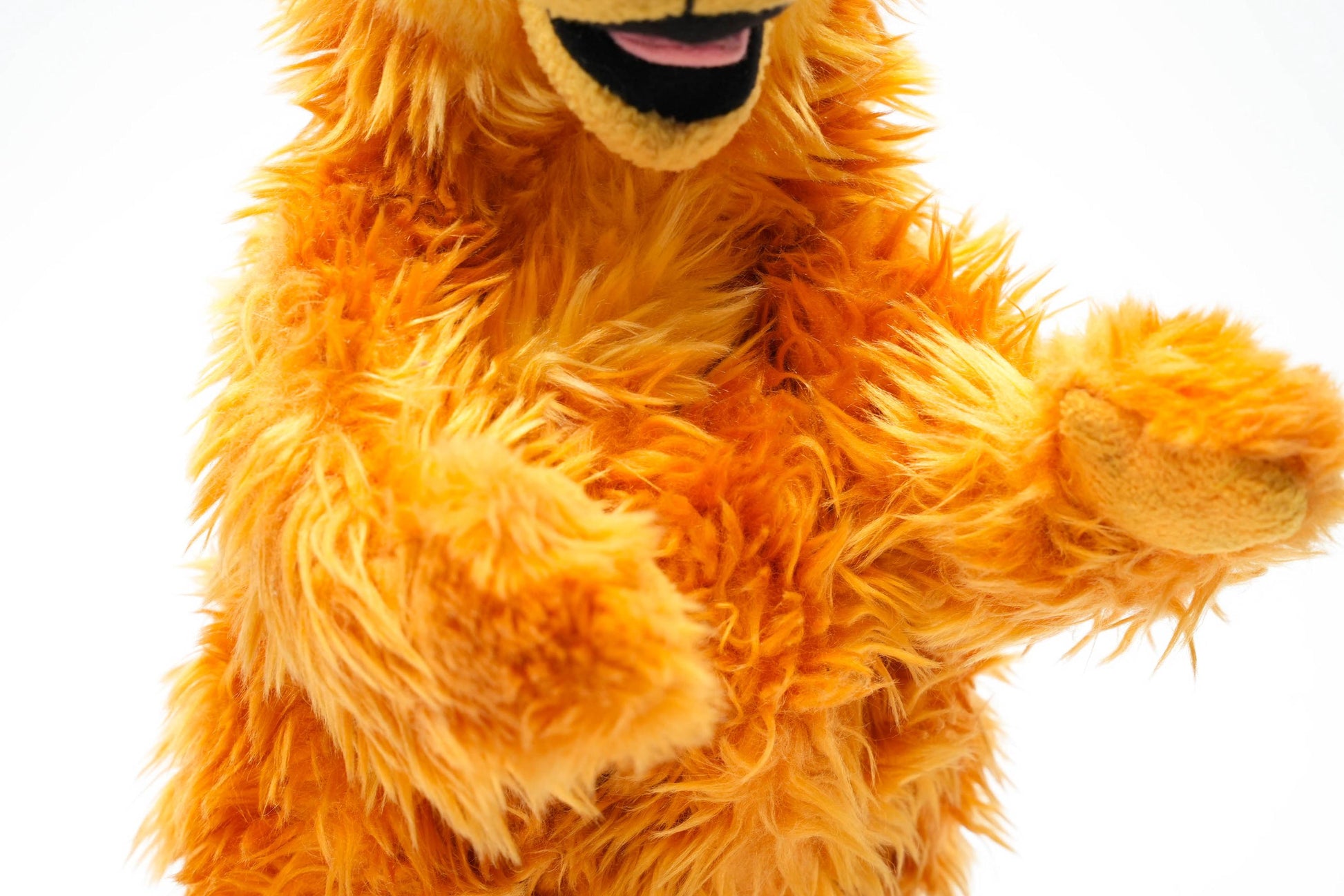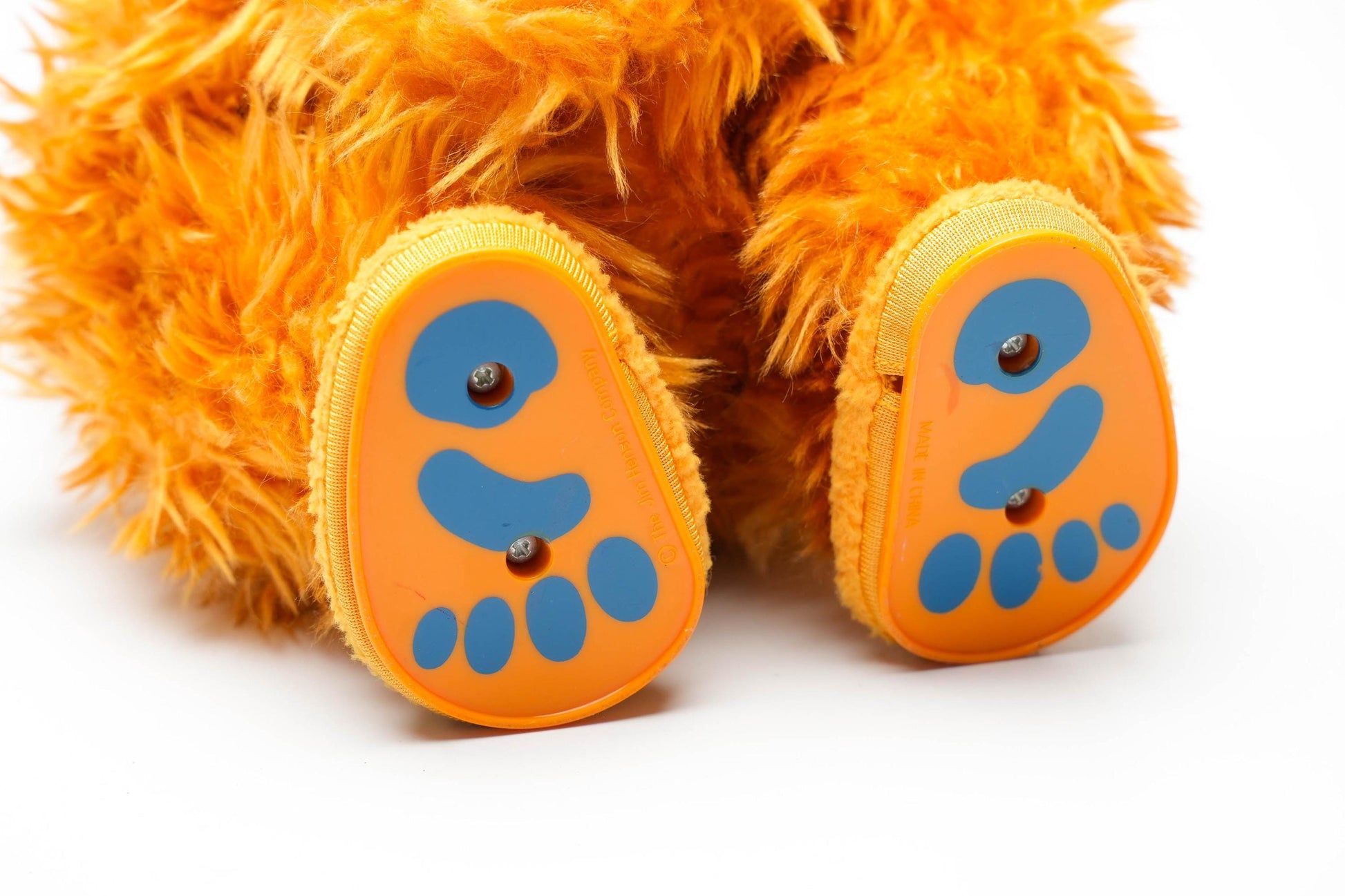 Deze knusse, pluizige vriend is niemand minder dan Bear uit de geliefde kinderserie Bear in the Big Blue House! Uitgegeven door Mattel in 1999 en officieel gelicentieerd door The Jim Henson Company, is deze vintage interactieve knuffel een zeldzaam stuk nostalgie. Met zijn speelse blauwe neus, vrolijke ogen en heerlijk zachte oranje vacht is hij een absolute eyecatcher – ook al werkt het mechanisme binnenin niet meer.