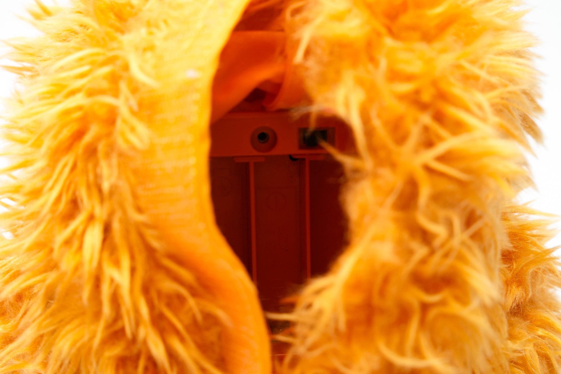 - Materiaal: Pluche buitenkant, binnenkant met elektronica (defect)