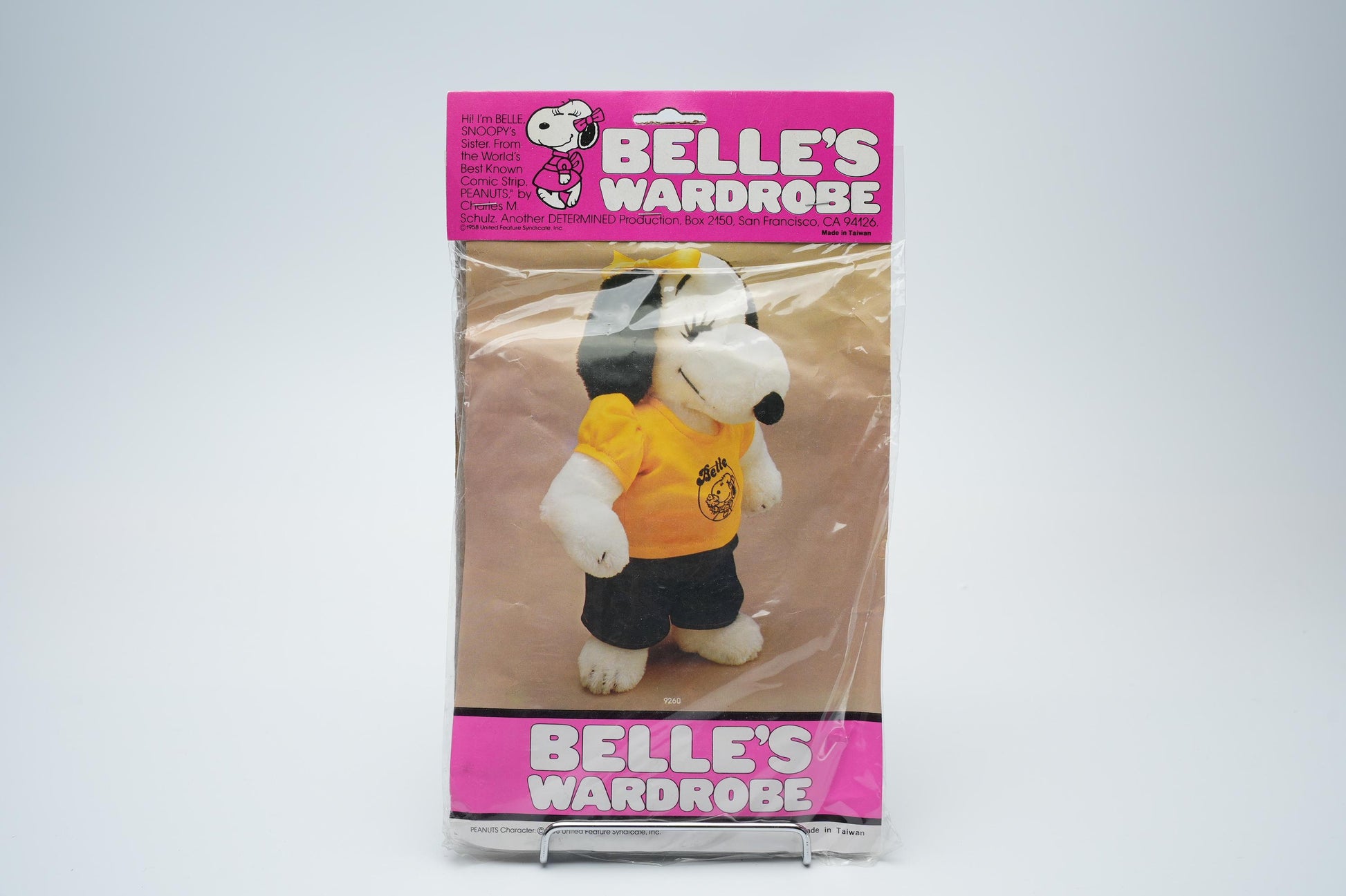 Voeg een vleugje nostalgie toe aan uw collectie met de Belle's Wardrobe - Vintage Snoopy Belle Kleding Set (1980s) - Nieuw in Verpakking. Dit charmante kledingsetje voor uw 15-inch (38 cm) Belle-pluchepop is niet alleen een modieuze aanvulling, maar ook een eerbetoon aan de speelse stijl van Snoopy’s geliefde zus Belle. Het vrolijke geel en marineblauw brengen een unieke flair die elke verzameling zal laten stralen.