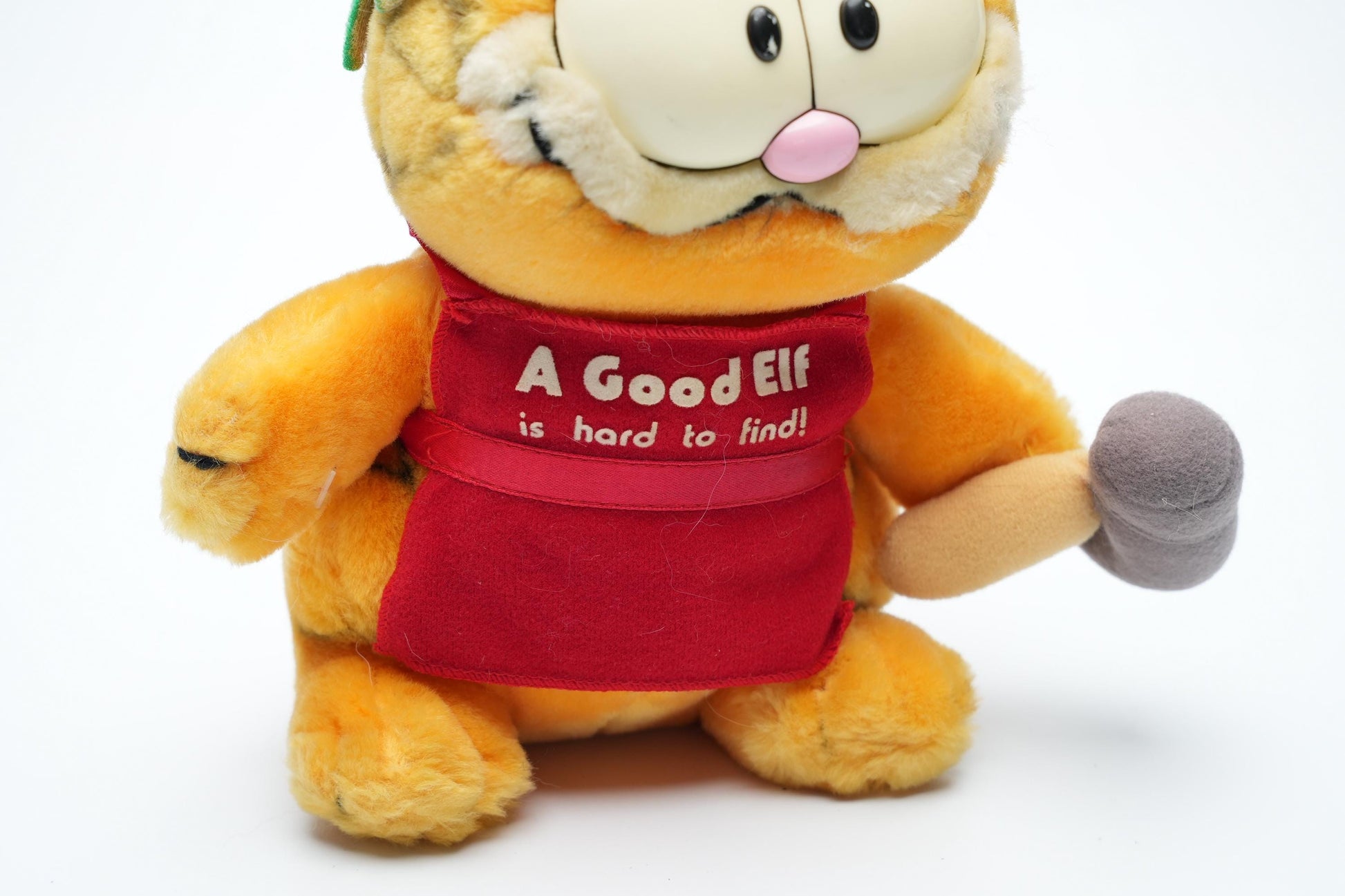 Voeg een vleugje humor en nostalgie toe aan jouw feestdagen met de Garfield Kerstelf Knuffel – een schattige 22 cm (8,7 inch) knuffel die perfect is voor elke Garfield-fan! Deze vintage knuffel, afkomstig van de United Feature Syndicate, brengt de ondeugende charme van Garfield naar jouw kerstdecoratie. Met zijn vrolijke kerstelfoutfit en speelse tekst "A Good Elf is Hard to Find!" is hij een echte blikvanger die zeker een glimlach op je gezicht tovert.
