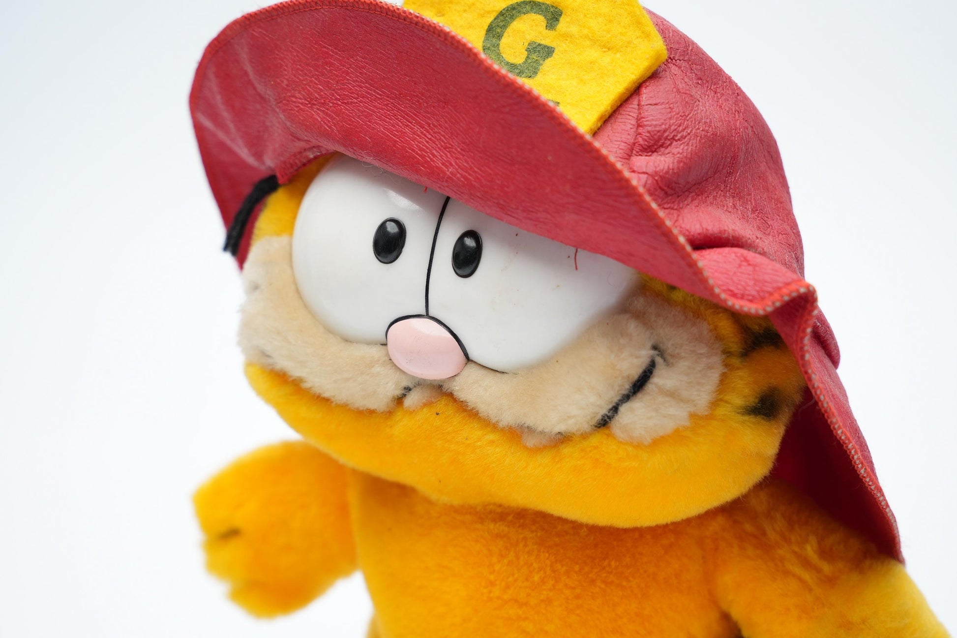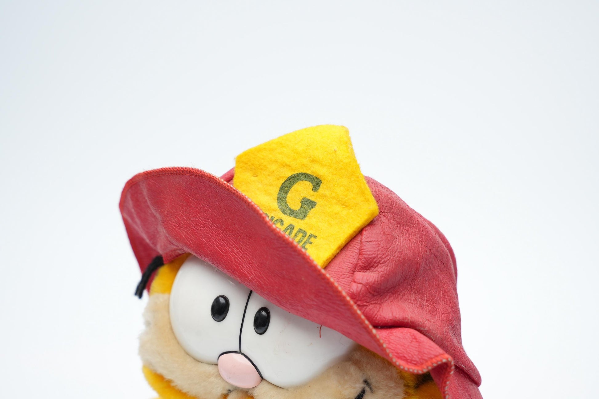 Garfield Pluche Knuffel met Brandweerhelm – 22 cm (8,7 inch) – Vintage 1981