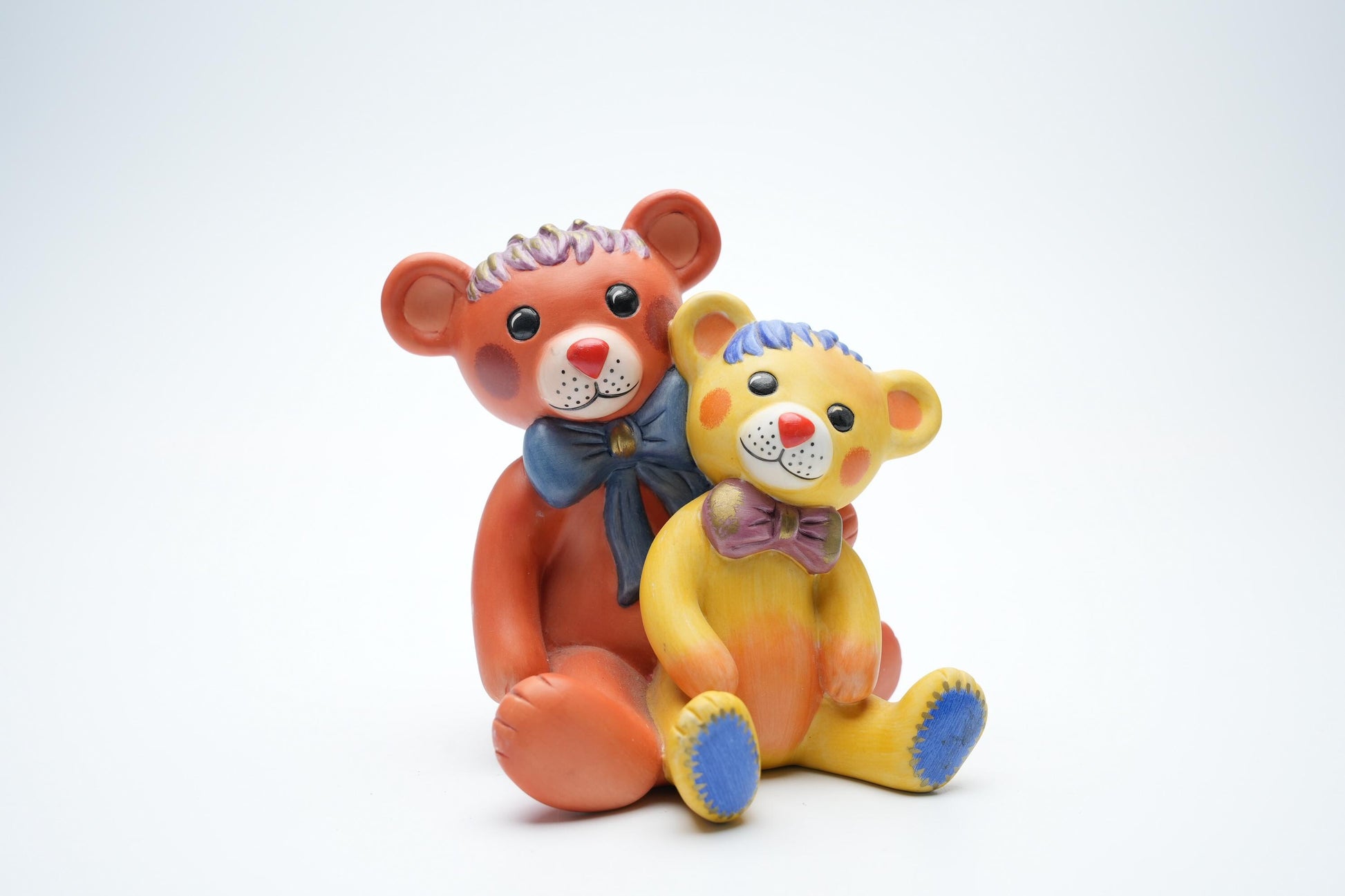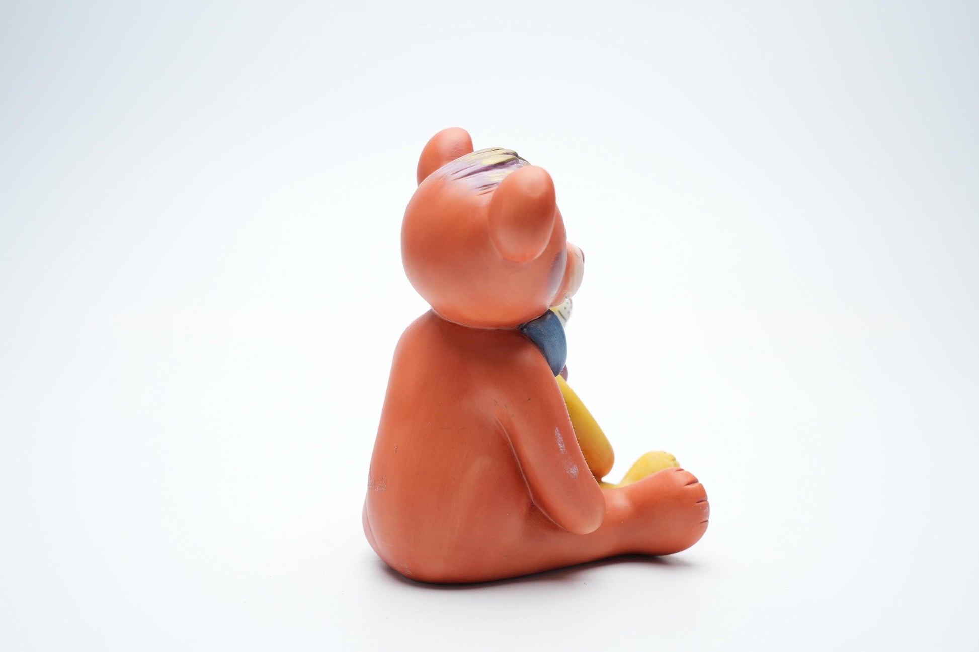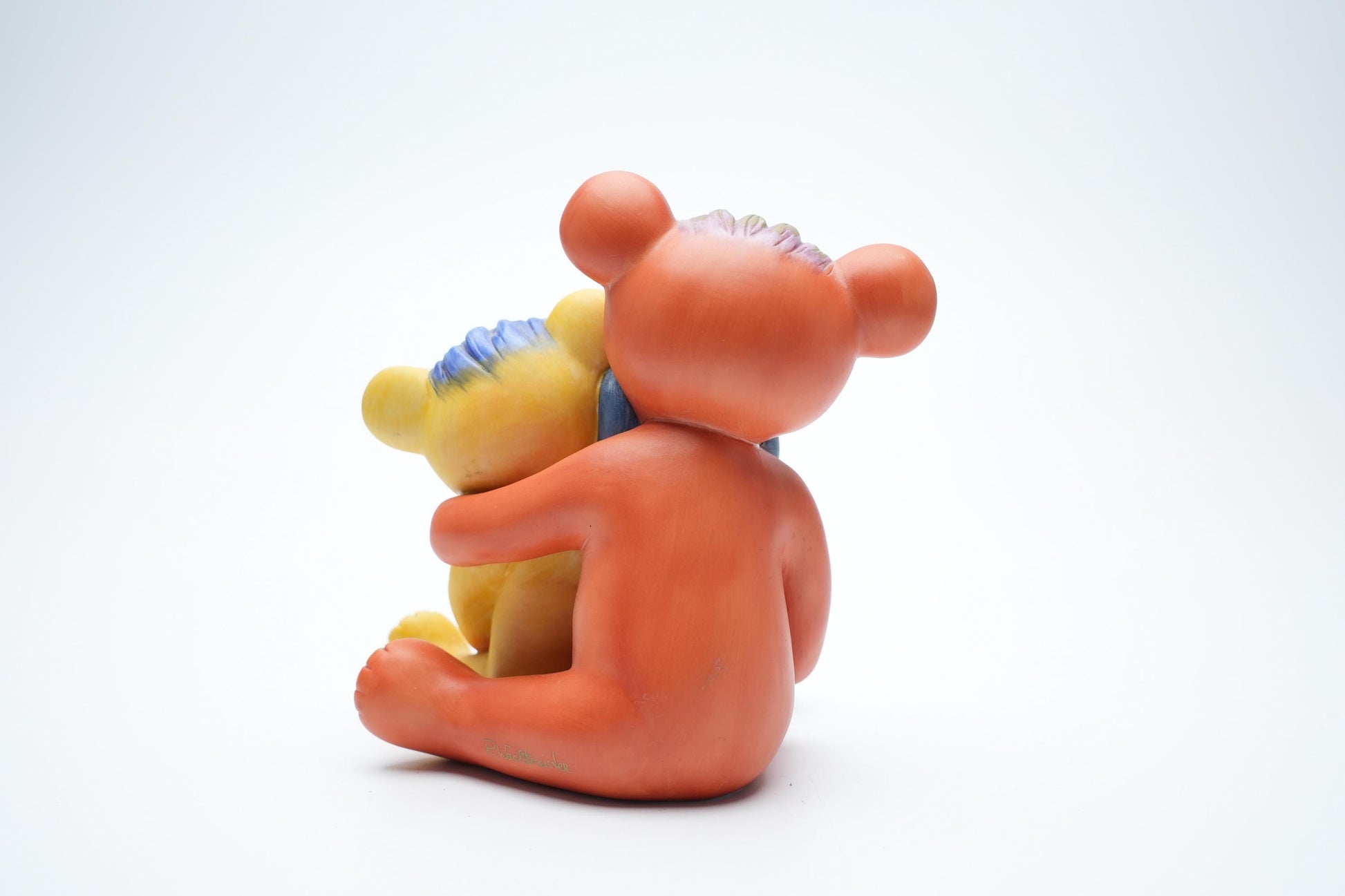 Ontdek de speelse charme van het Goebel Rosina Wachtmeister "Grisela & Carla" Beeldje. Dit unieke kunstwerk, ontworpen door de gerenommeerde kunstenares Rosina Wachtmeister, toont twee kleurrijke berenfiguren in een hartverwarmende pose. Met een hoogte van 13 cm (5 inch) is dit handgeschilderde porseleinen beeldje een perfecte aanvulling op elk interieur, dat warmte en artistieke flair uitstraalt.
