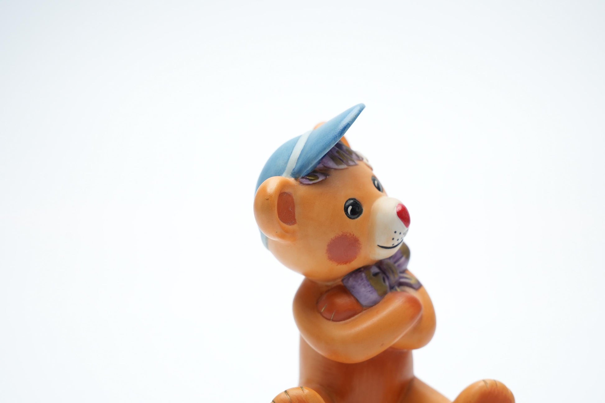 Ontdek de speelse charme van Goebel Rosina Wachtmeister "Isa" Beeldje, een prachtig beeldje ontworpen door de beroemde kunstenaar Rosina Wachtmeister en vervaardigd door Goebel. Dit schattige, handgeschilderde beertje straalt met zijn vrolijke kleuren en lieve details. Met een hoogte van 10 cm (3,9 inch) is dit beeldje ideaal als opvallend decoratief accent of als aanvulling op een collectie.