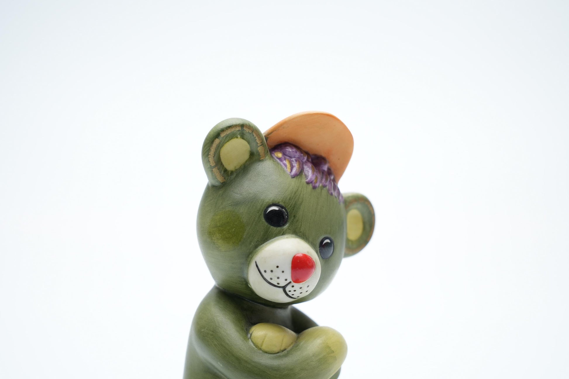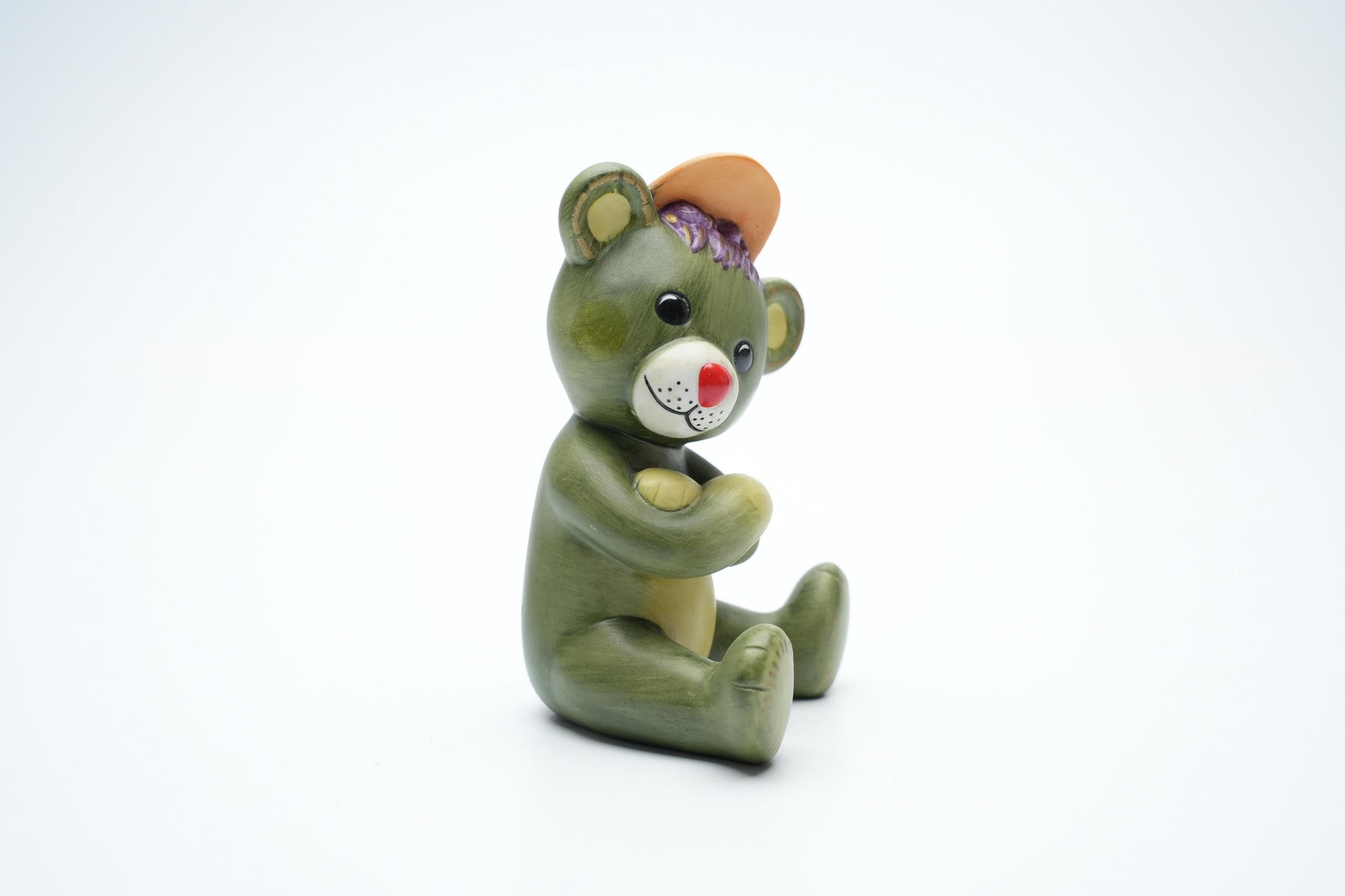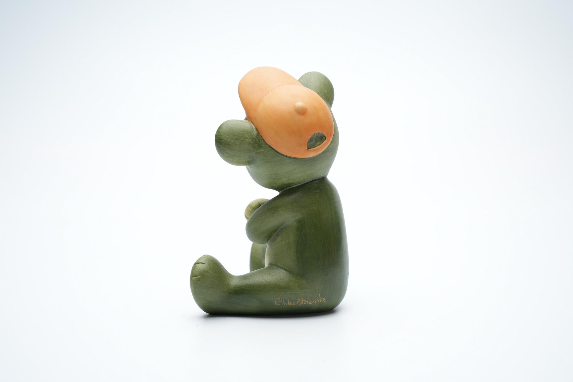 Haal een vleugje speelsheid in huis met het Goebel Rosina Wachtmeister "Nico" Beeldje. Dit schattige, handgeschilderde porseleinen figuur, ontworpen door de gerenommeerde kunstenares Rosina Wachtmeister, toont een charmante groene beer met een vrolijke oranje pet. Met zijn hoogte van 10 cm (3,9 inch) voegt "Nico" een kleurrijke en unieke touch toe aan elke ruimte, perfect voor zowel kunstverzamelaars als decoratie-liefhebbers.