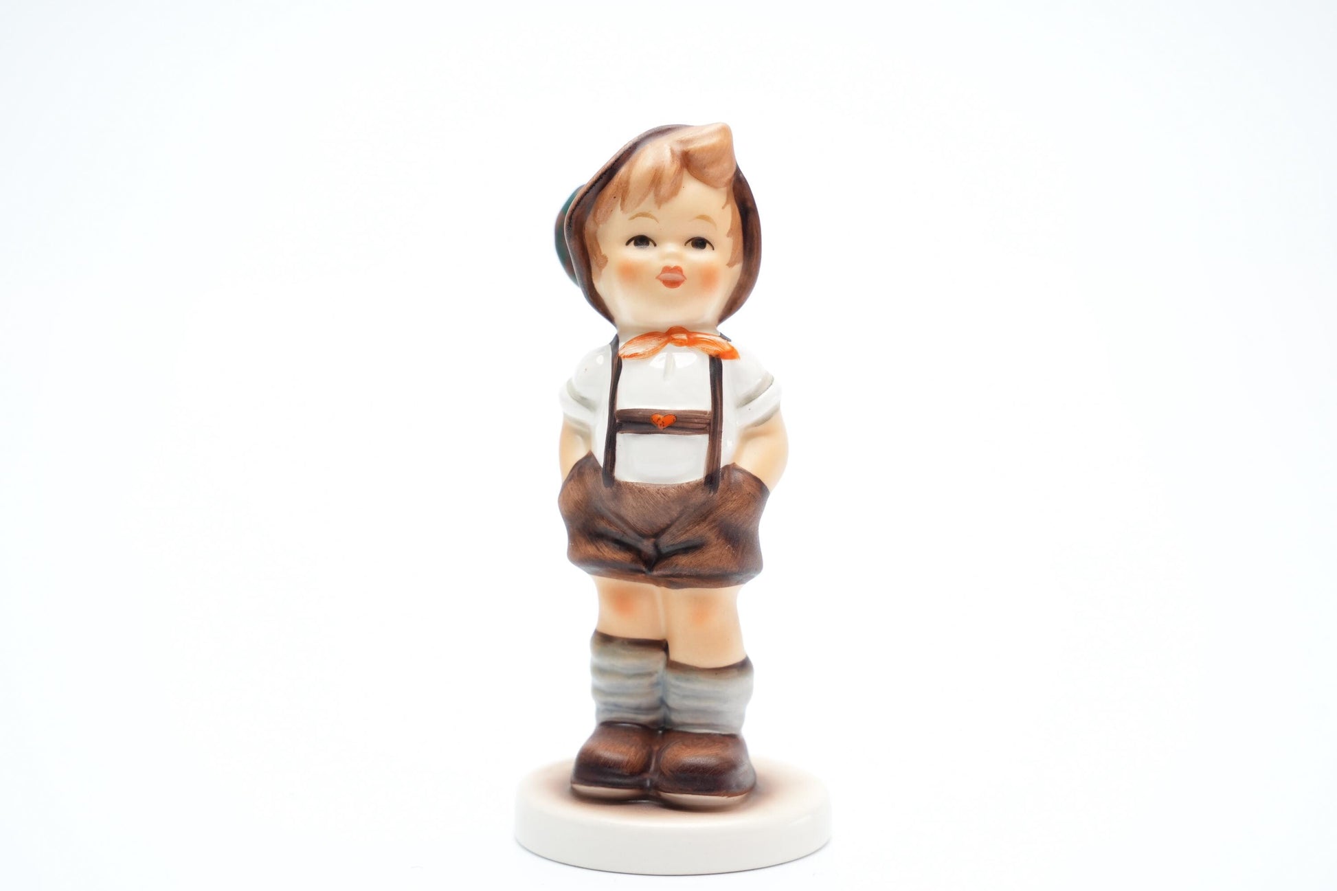 Maak kennis met het charmante Goebel Hummel beeldje 'Playful Boy' (HUM 630), een klassiek collectors-item dat een speelse jongen in traditionele lederhosen toont. Dit prachtig handgeschilderde beeldje vangt de onschuld en speelsheid van een zorgeloze jeugd. Met verfijnde details zoals het hartje op de bretels en het kenmerkende rode sjaaltje, straalt dit figuur de unieke nostalgie en kwaliteit van Hummel uit.