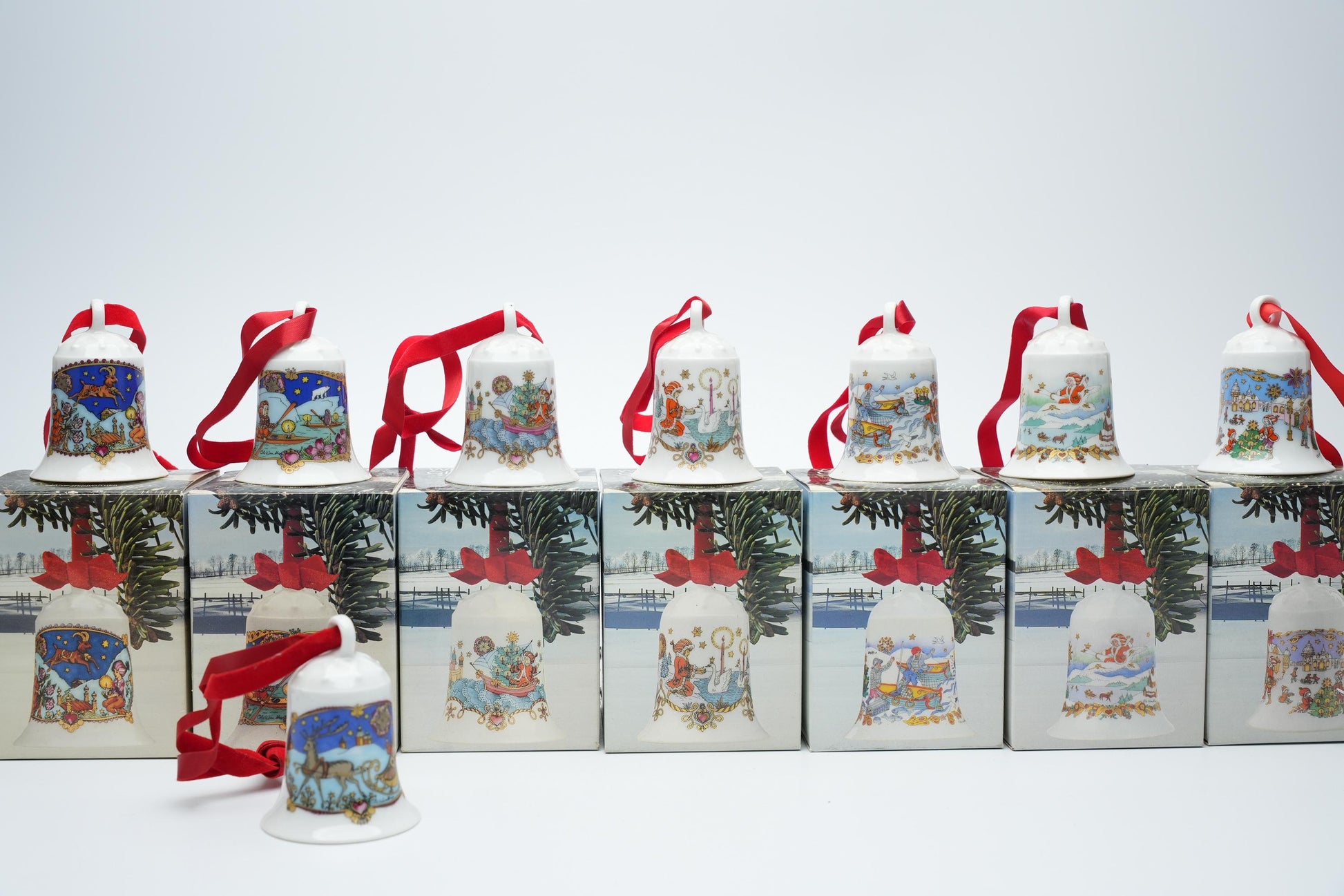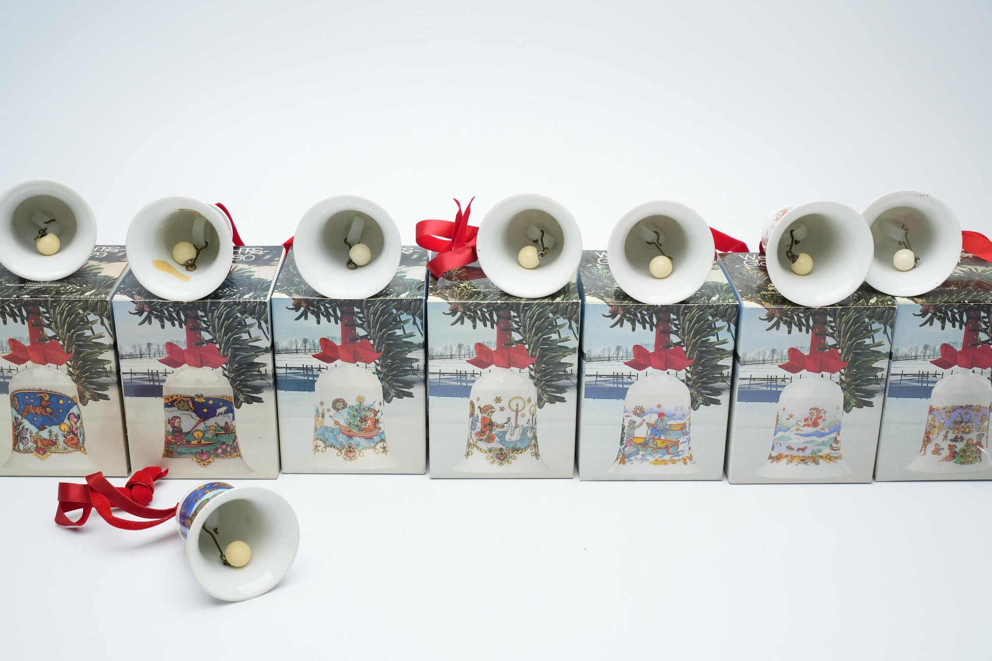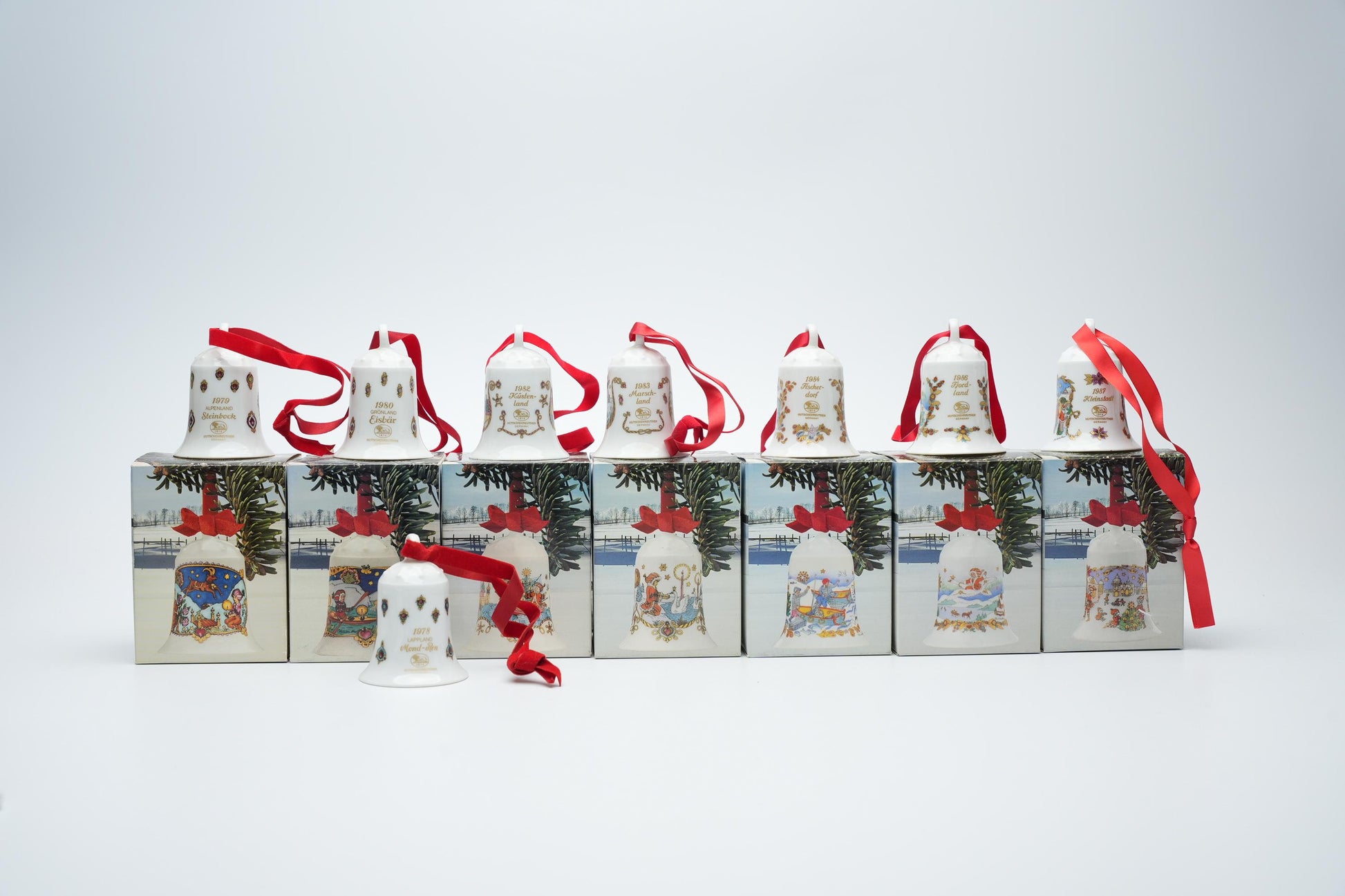 - Bijzonderheden: Inclusief originele rode linten; de meeste klokjes worden geleverd in hun originele doosjes (behalve 1978).