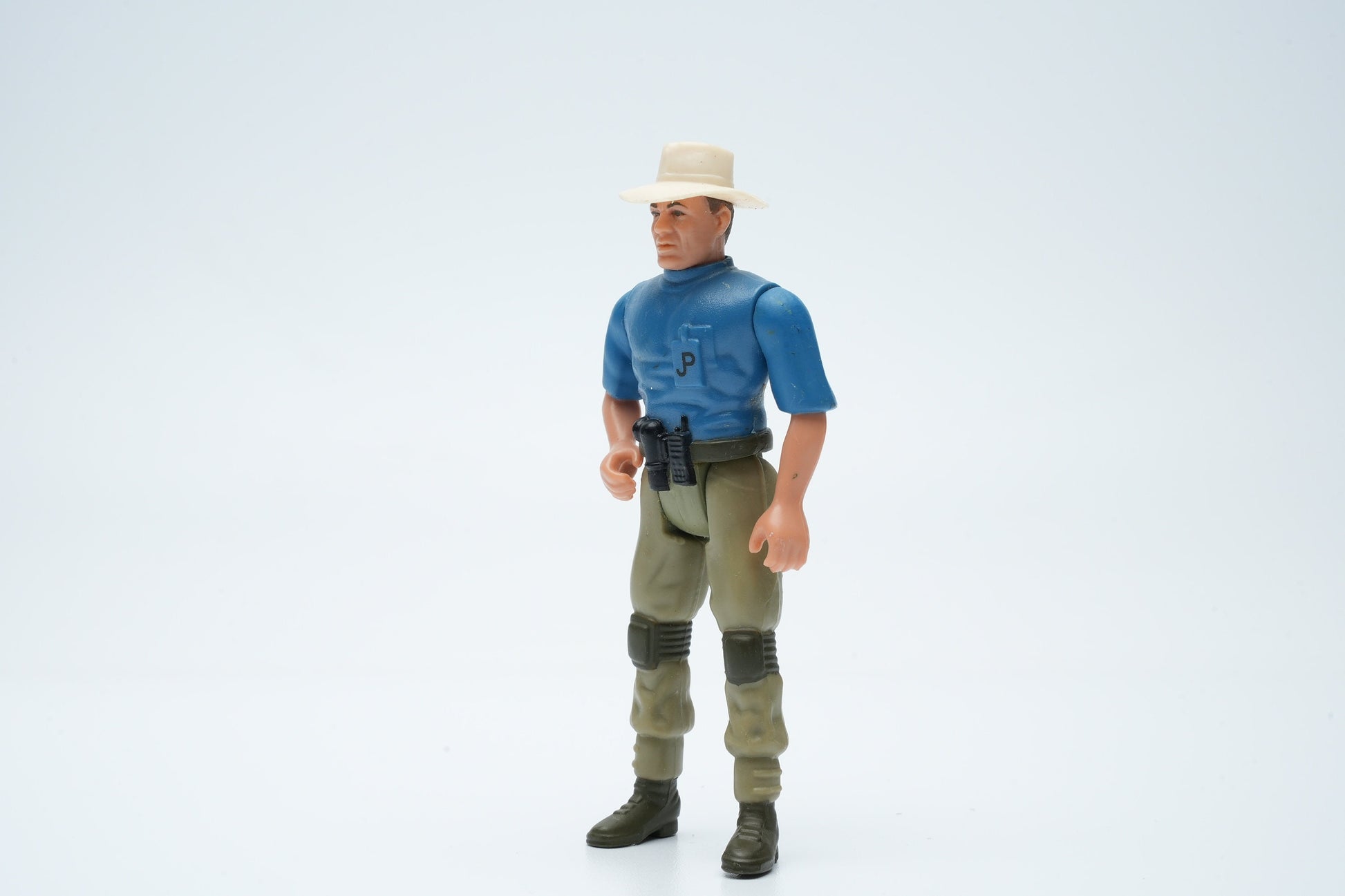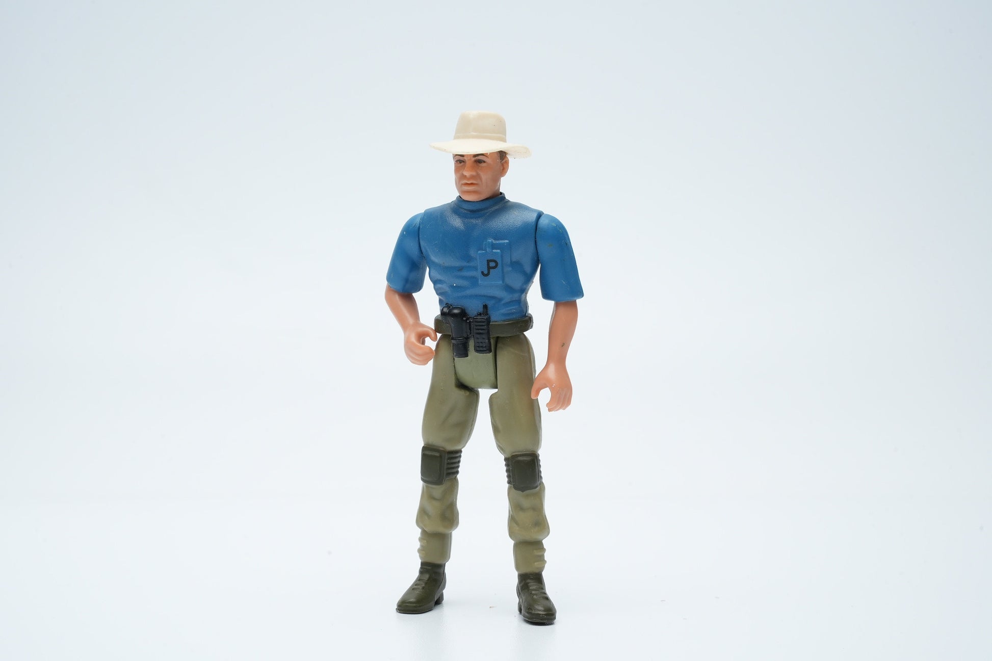 De Jurassic Park Alan Grant actiefiguur, uitgebracht door Kenner in 1993, vangt de essentie van de beroemde paleontoloog uit de originele film. Gekleed in zijn kenmerkende outfit, compleet met hoed en gereedschapsgordel, is deze figuur perfect voor zowel verzamelaars als voor spannende speelmomenten.