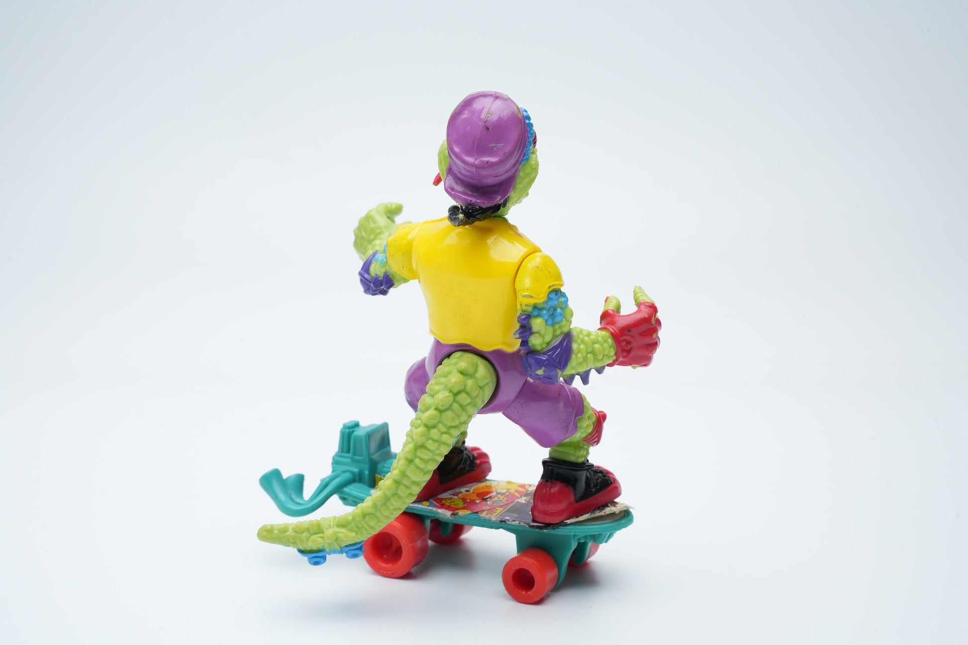 Voeg een stukje radicale mutant actie toe aan je verzameling met deze unieke Mondo Gecko 1990 Platemate actiefiguur uit de iconische Teenage Mutant Ninja Turtles-serie! Deze authentieke figuur, geproduceerd door Playmates Toys, belichaamt de geest van de jaren '90 met zijn coole uitstraling en skateboard. Mondo Gecko is niet alleen een verzamelobject; hij is een stukje geschiedenis dat elke fan moet hebben!