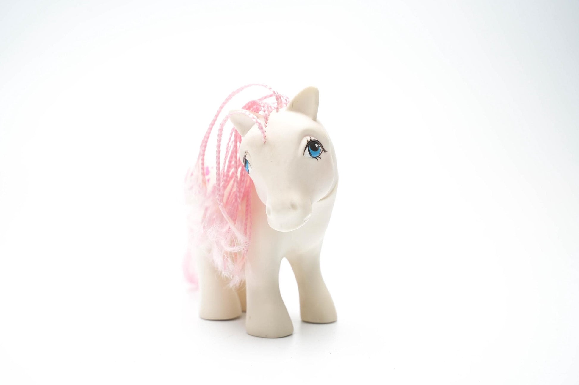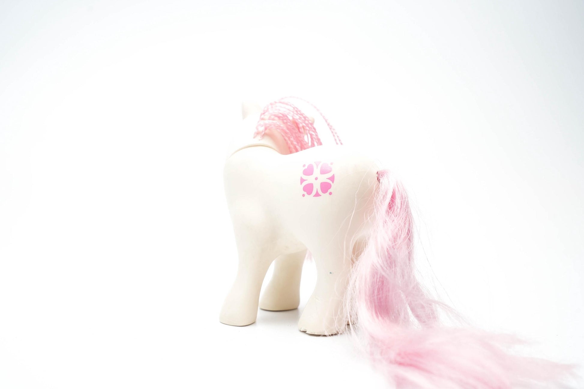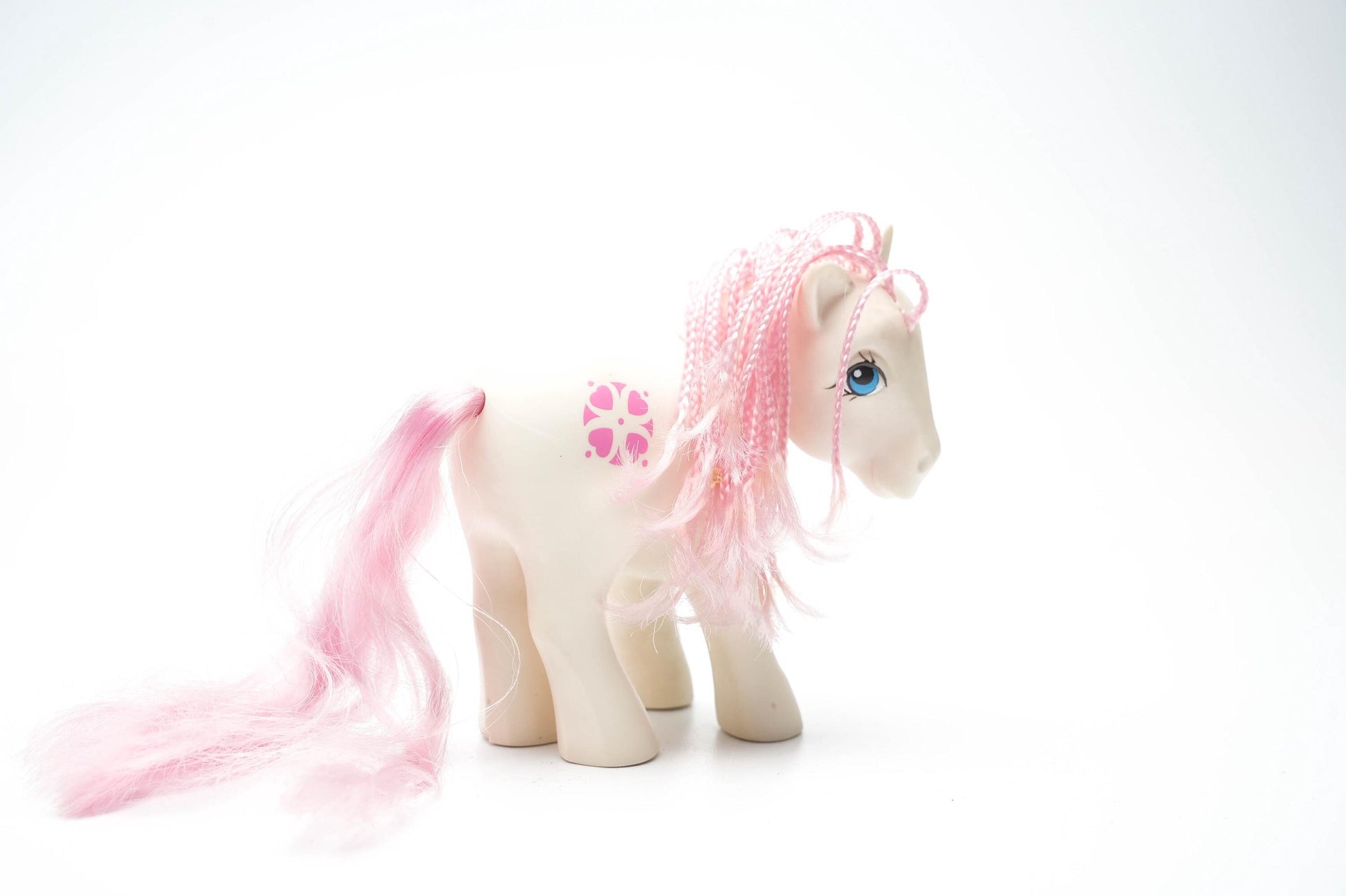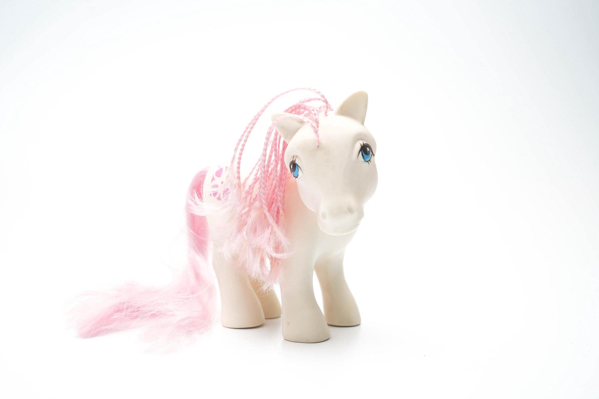 Breng een stukje jaren '80 magie in huis met de originele My Little Pony G1 Sundance! Deze vintage pony, uitgebracht door Hasbro in 1983, is een iconisch verzamelobject dat zowel nostalgie als charme uitstraalt. Met haar crèmekleurige lijfje, pastelroze manen en hartvormige bloemenpatroon is Sundance een must-have voor elke ponyliefhebber en verzamelaar.