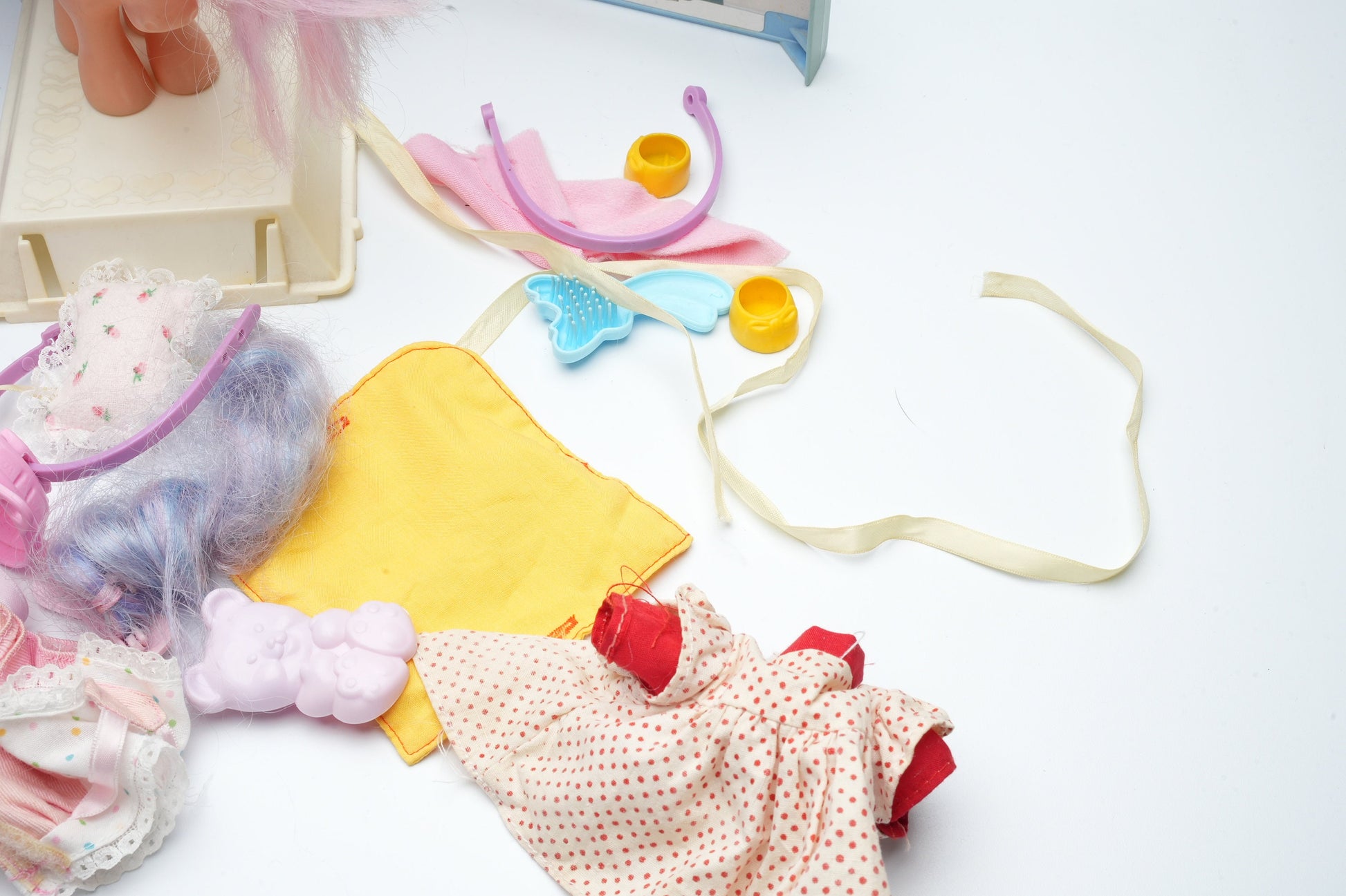 Ontdek de magie van de My Little Pony paardenstal met kleding en vele extra's uit de G1 serie! Deze vintage set brengt je terug naar de speelse wereld van My Little Pony, waar fantasie en creativiteit samenkomen. Het is de perfecte aanvulling voor elke verzameling en zorgt voor urenlang speelplezier voor zowel kinderen als volwassen verzamelaars.