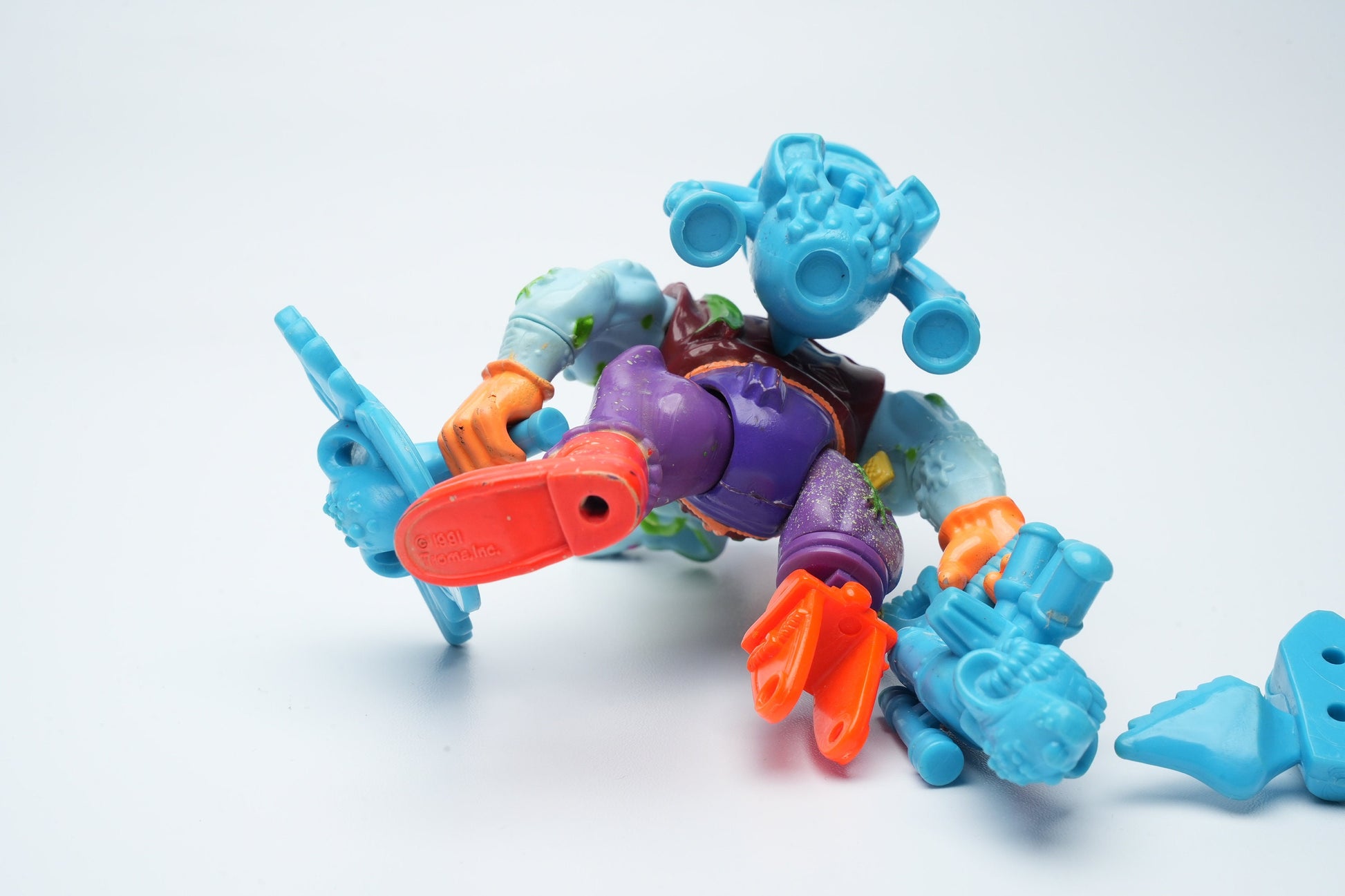Deze authentieke Nozone actiefiguur komt uit de originele Toxic Crusaders-serie, geproduceerd door Playmates Toys in 1991. Nozone, met zijn opvallende kleuren en gedetailleerde ontwerp, is een iconisch personage uit deze milieubewuste superheldenserie en een waardevolle toevoeging aan elke verzameling.