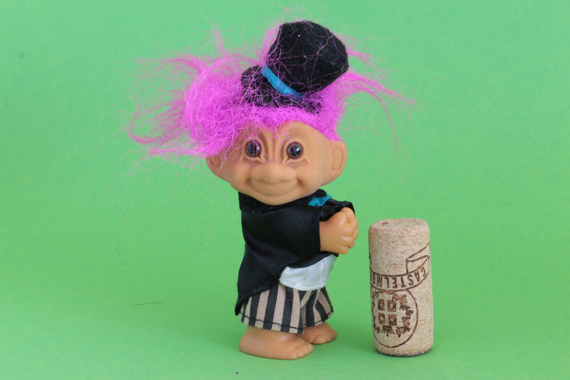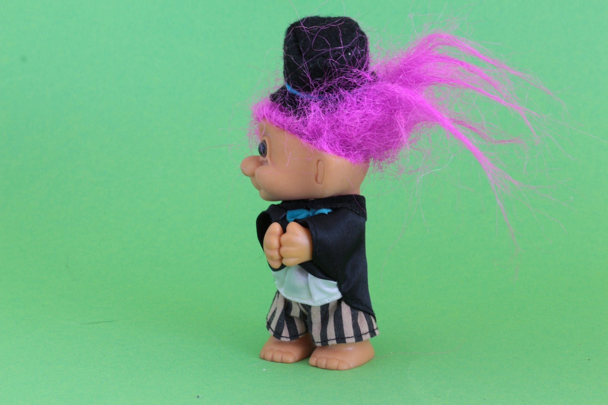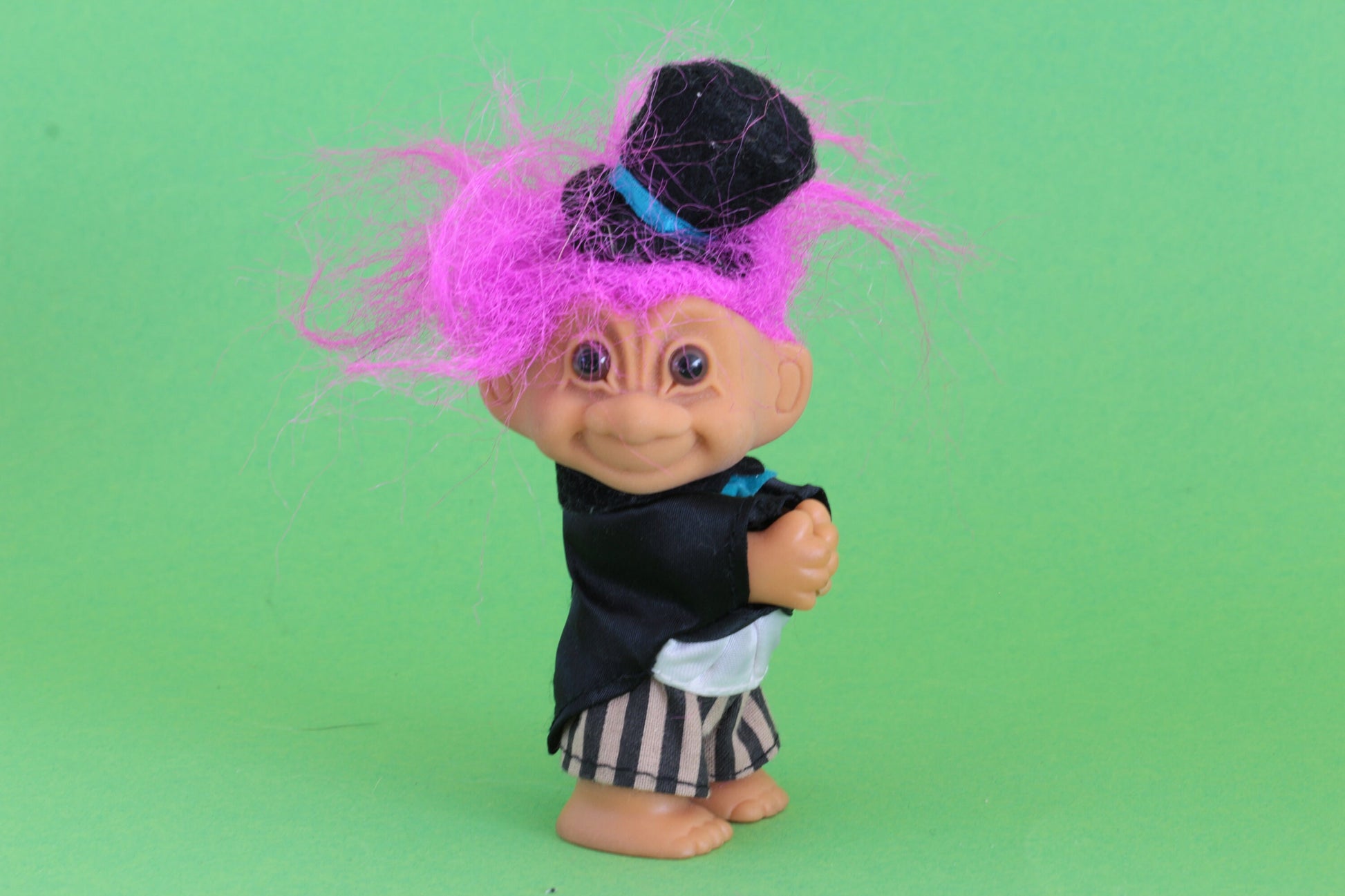 Ontdek de charme van de Schattige trol in pak, een unieke vintage dam trol die direct een glimlach op uw gezicht tovert. Deze oude dam trol, gekleed in een prachtig jurkje en een hoed, is het perfecte decoratiestuk voor elke verzamelaar of liefhebber van retro items. Met zijn originele outfit en karakteristieke uitstraling brengt deze trol een vleugje nostalgie in uw huis.