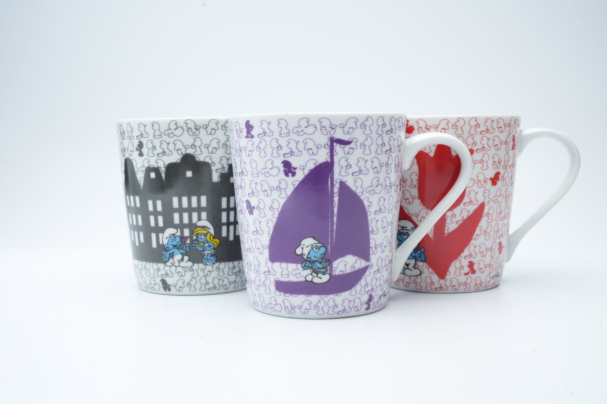 - Set van 3 Mokjes: Deze set bevat drie verschillende schattige Smurf mokken, elk met een eigen uniek ontwerp.