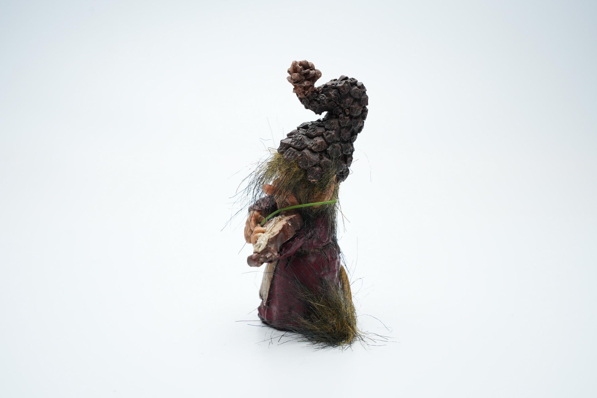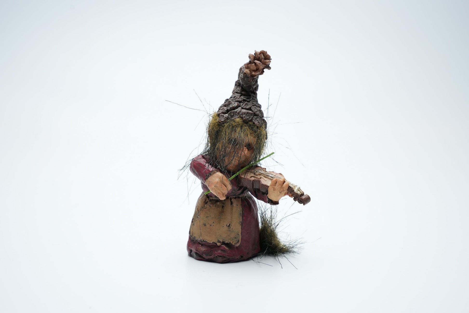 Dit unieke Troll Beeldje – 10 cm / 4 inch – Muzikale Bos Trol toont een muzikale bos trol die viool speelt, een prachtig stukje Scandinavische folklore. Met zijn puntige hoed van dennenappelschubben, warme rode outfit en speels warrig haar, heeft hij een magische en mysterieuze uitstraling.