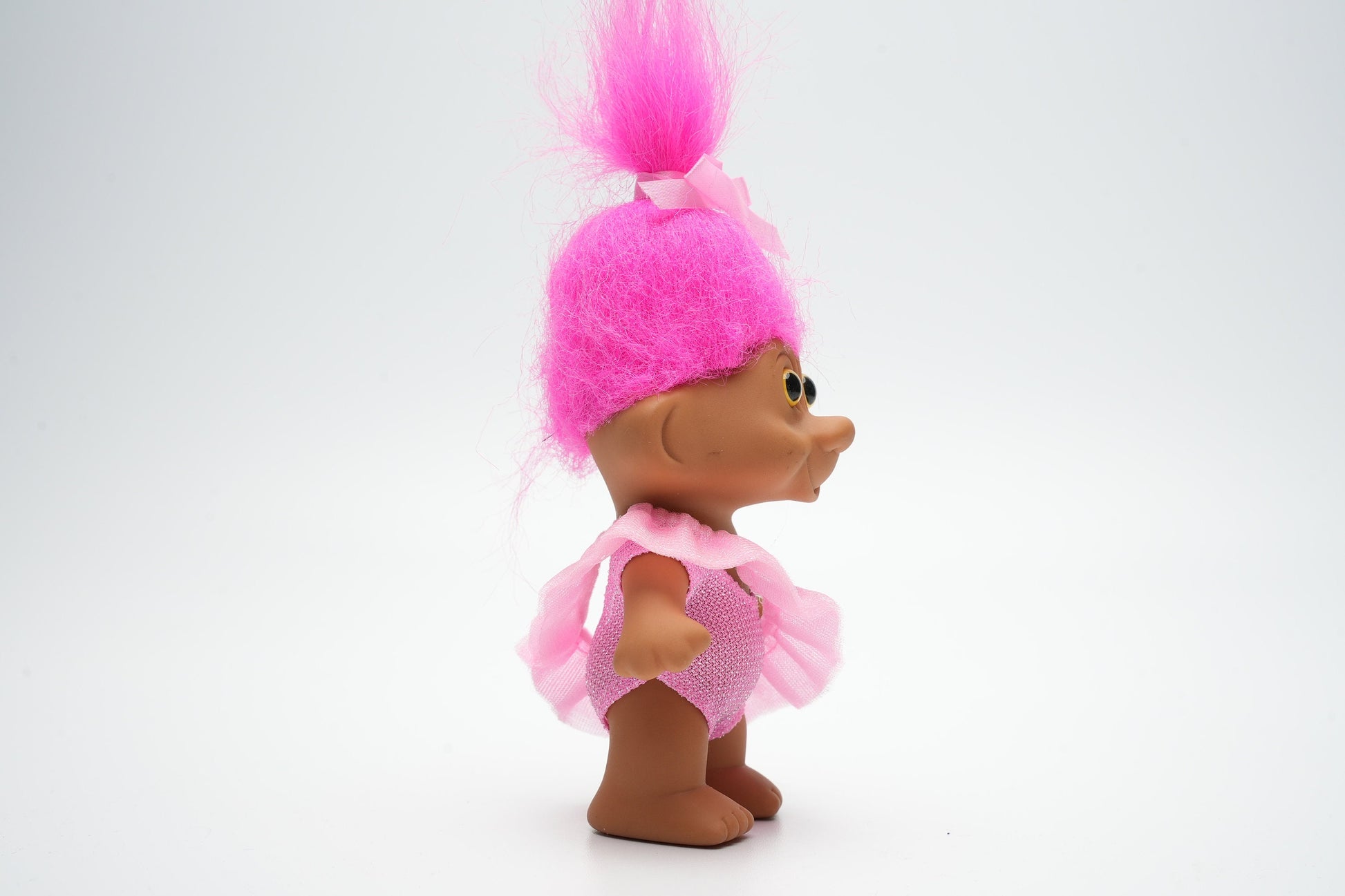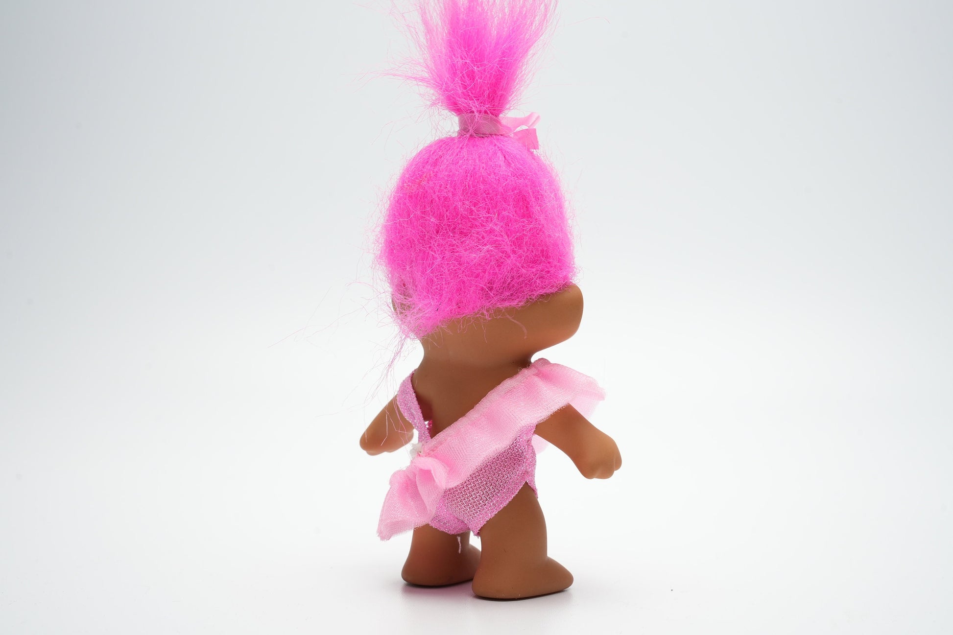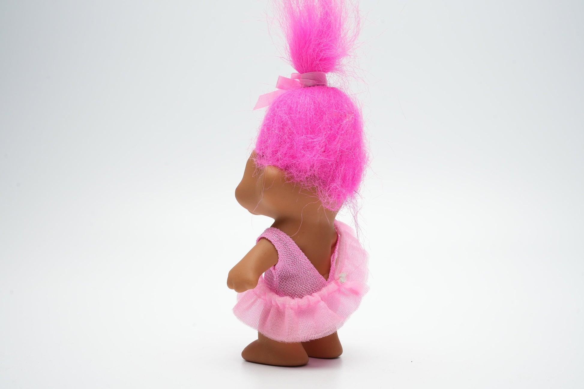Troll in roze outfit die gaat ballet dansen - vintage troll met roze haar