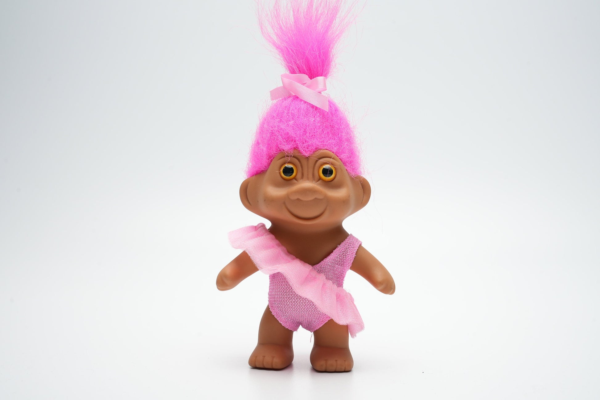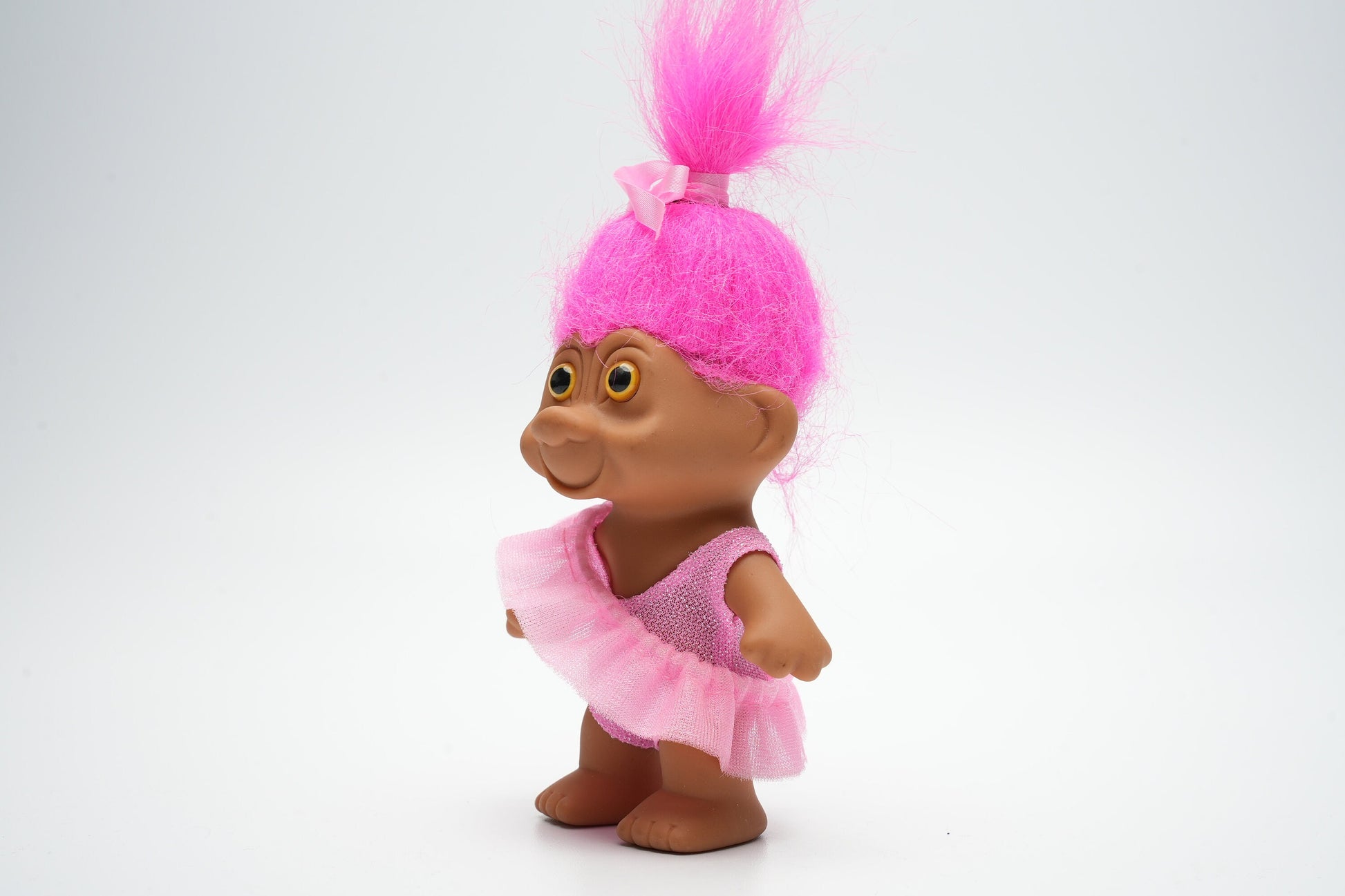 Ontdek onze schattige troll in roze outfit die gaat ballet dansen! Deze vintage troll met opvallend roze haar is een must-have voor iedere verzameling. Verkleed in een leuke en kleurrijke outfit, zal deze bijzondere troll zeker een glimlach op je gezicht toveren.