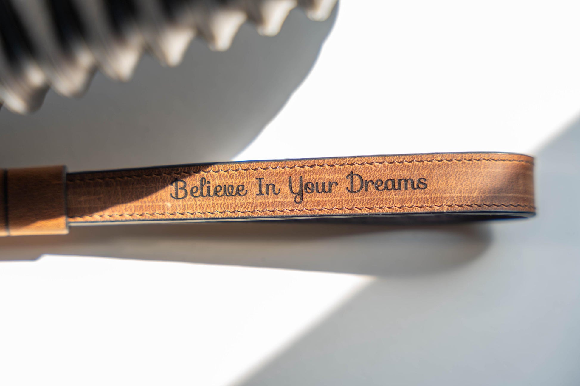 Met onze Unieke leren camera polsband ben je verzekerd van een veilige en stijlvolle manier om je camera mee te nemen. Maak het nog specialer door het te personaliseren en voeg een unieke touch toe aan je fotografie-uitrusting. Wacht niet langer en bestel vandaag nog jouw gepersonaliseerde polsband!