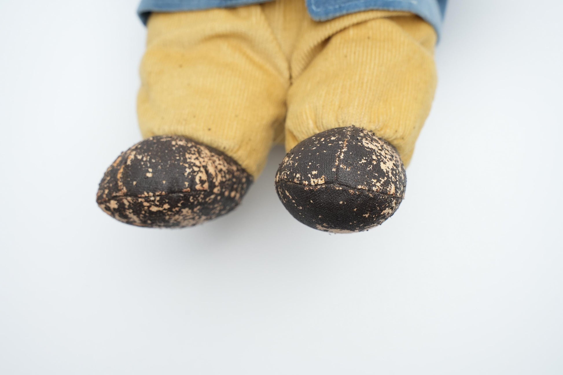 - Conditie: Licht gebruikt, met lichte slijtage aan de schoenen en jas, maar in goede vintage staat. Het originele label is aanwezig.