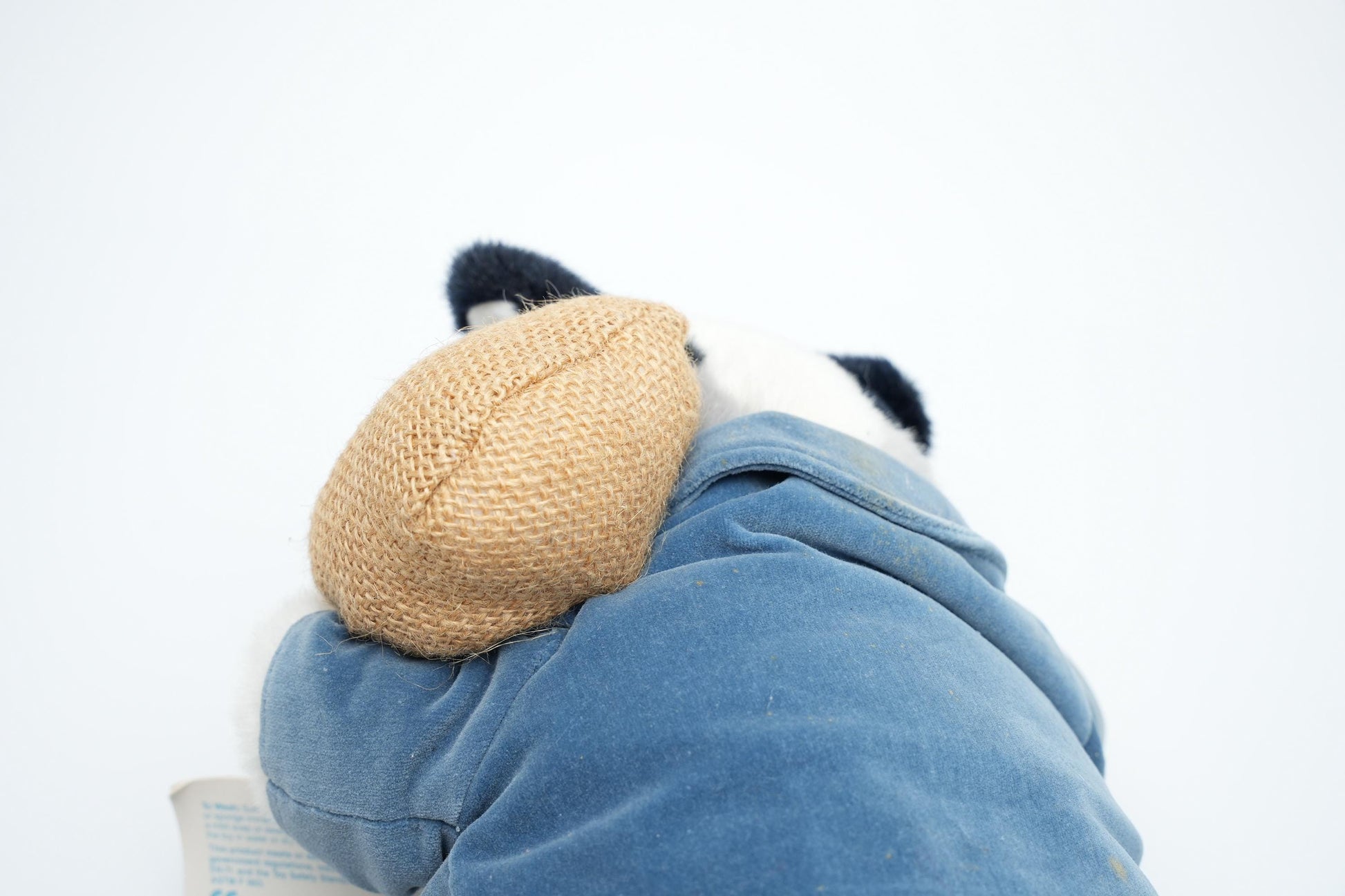 Breng de magie van Beatrix Potter's geliefde verhalen tot leven met deze zeldzame Tommy Brock knuffel van Eden uit 1993! Dit verzamelbare figuur is gebaseerd op het karakter uit The Tale of Mr. Tod en viert het 100-jarig jubileum van Potter's klassieke werken, zoals aangegeven op het originele label. Met zijn herkenbare outfit – een blauwe fluwelen jas, rode vest en gele corduroy broek – straalt deze das de charme en nostalgie uit van de originele illustraties.