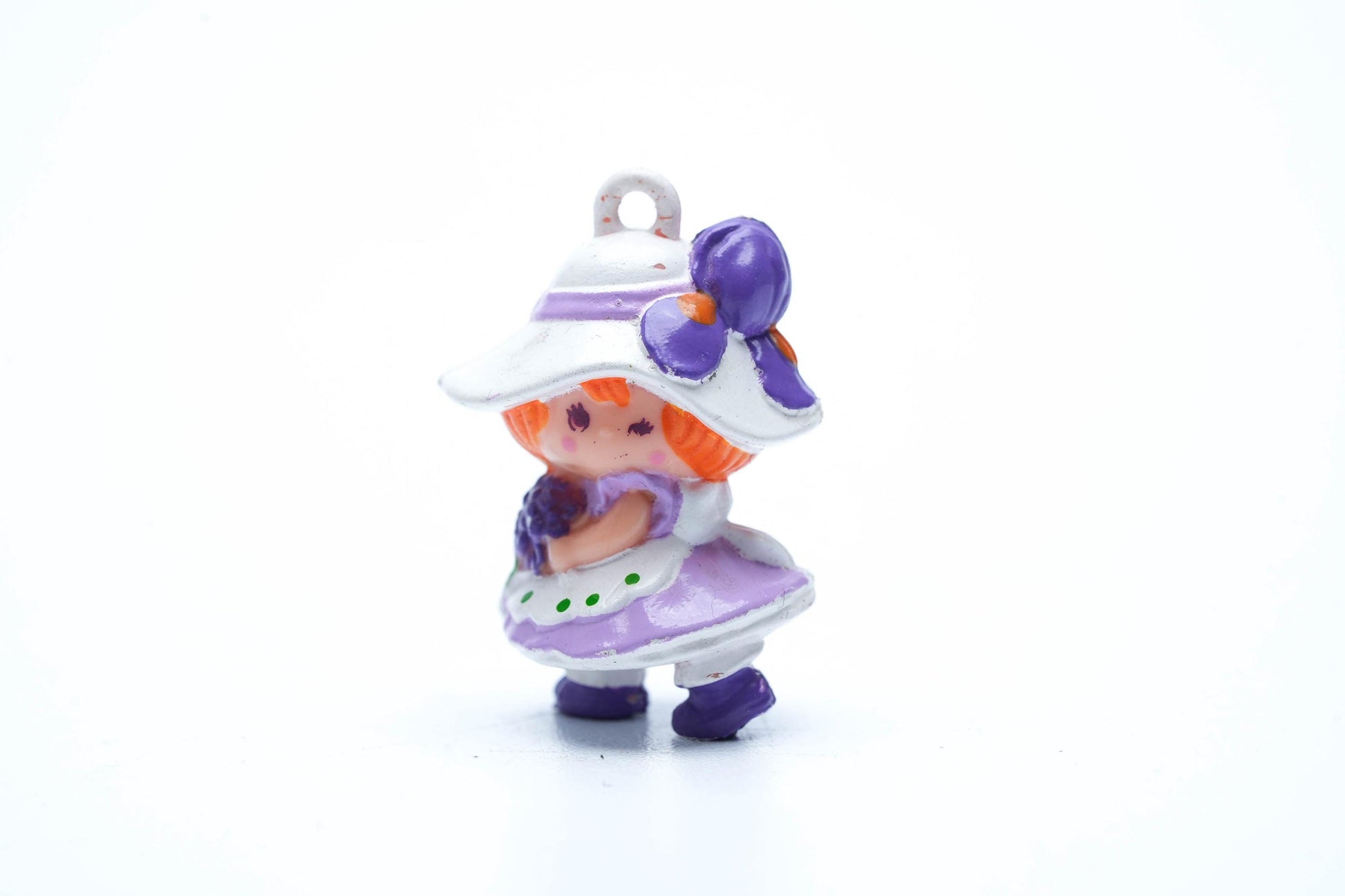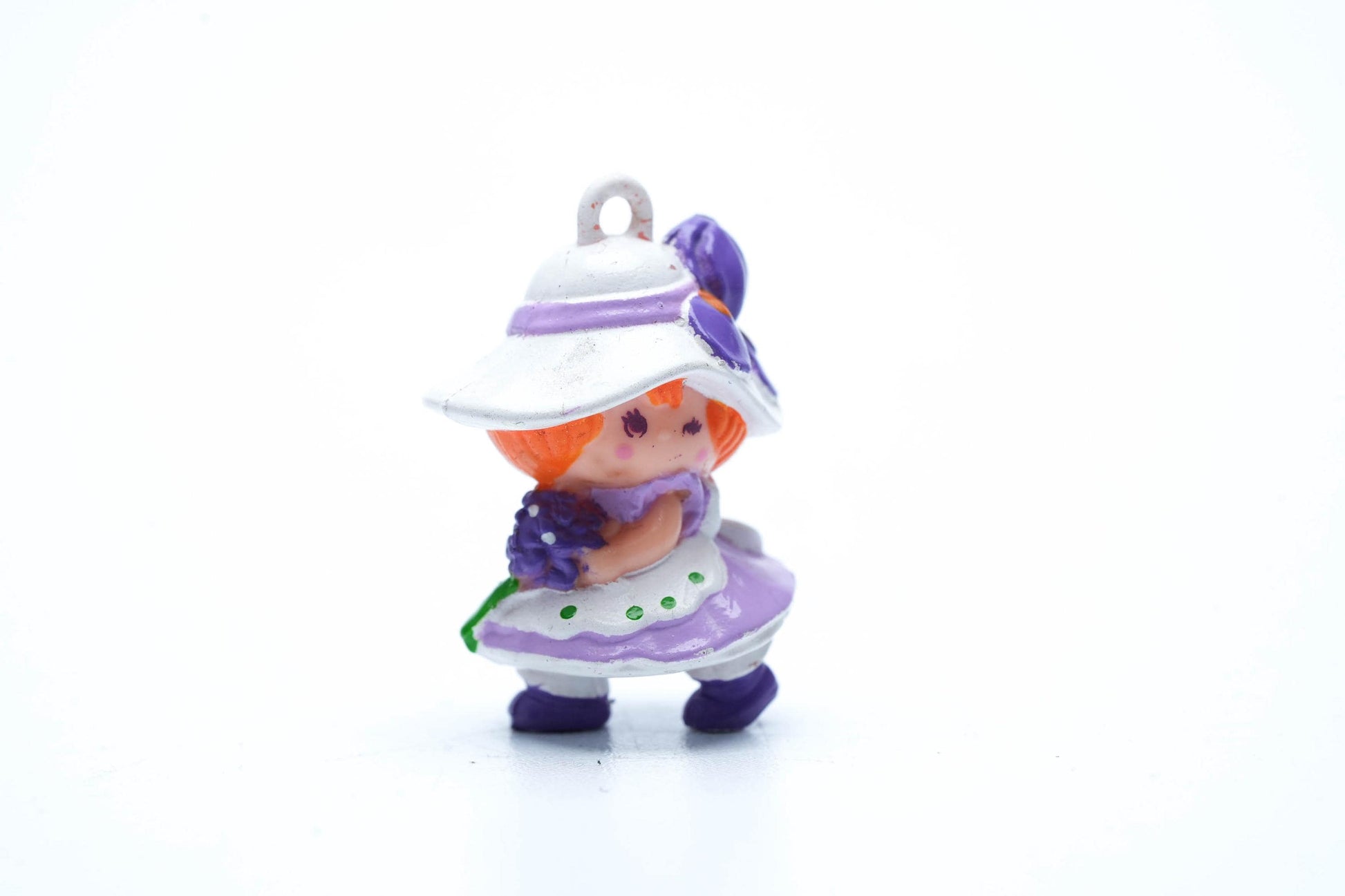 Vintage Charmkins Blossom – Hasbro 1983 – Paarse Jurk & Bloemenhoed | Mini Bedelfiguur uit de jaren 80