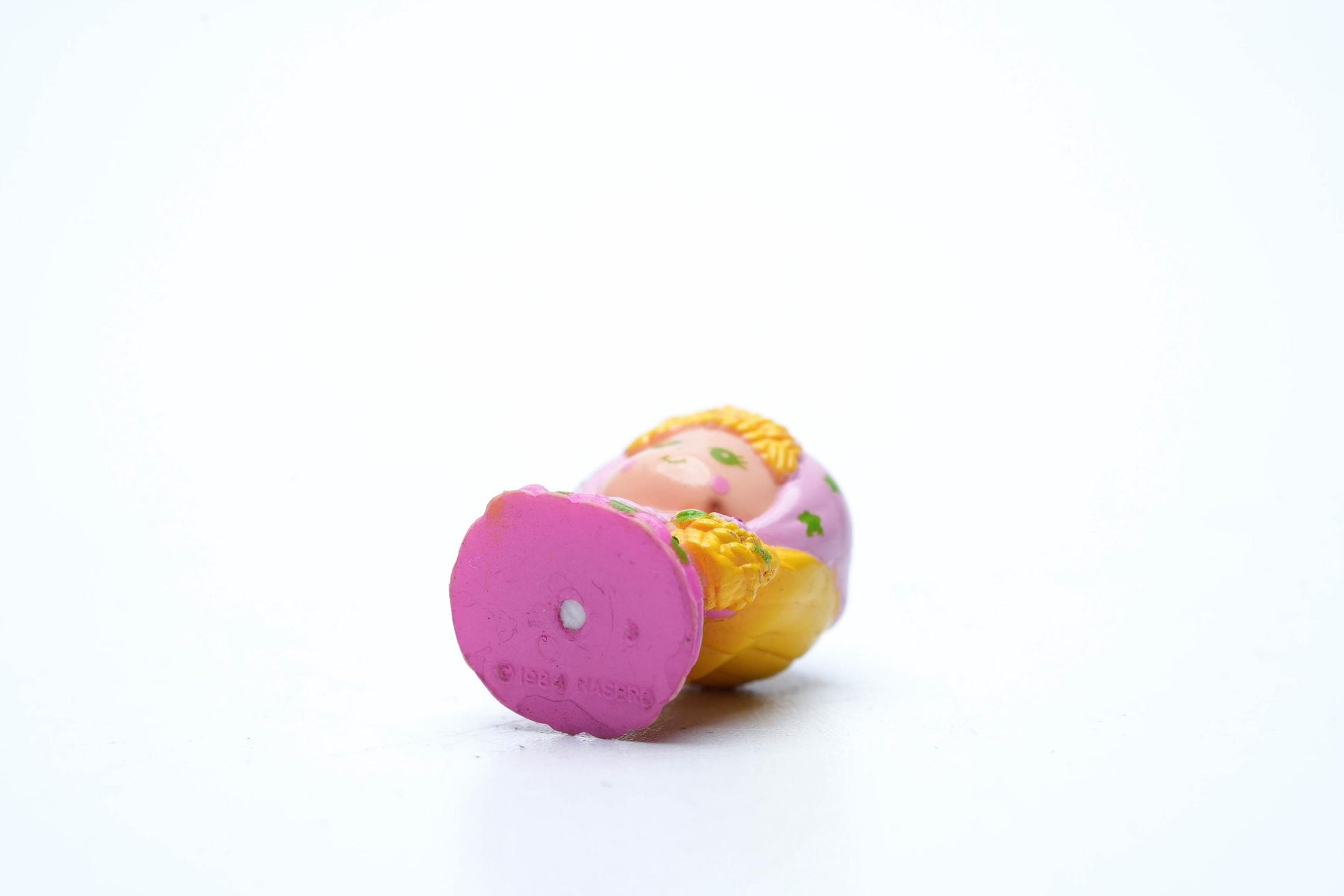 Vintage Charmkins Chrysanthe-Mum 1984 – Hasbro Mini Bedelfiguur met Roze Kapje & Bloemen