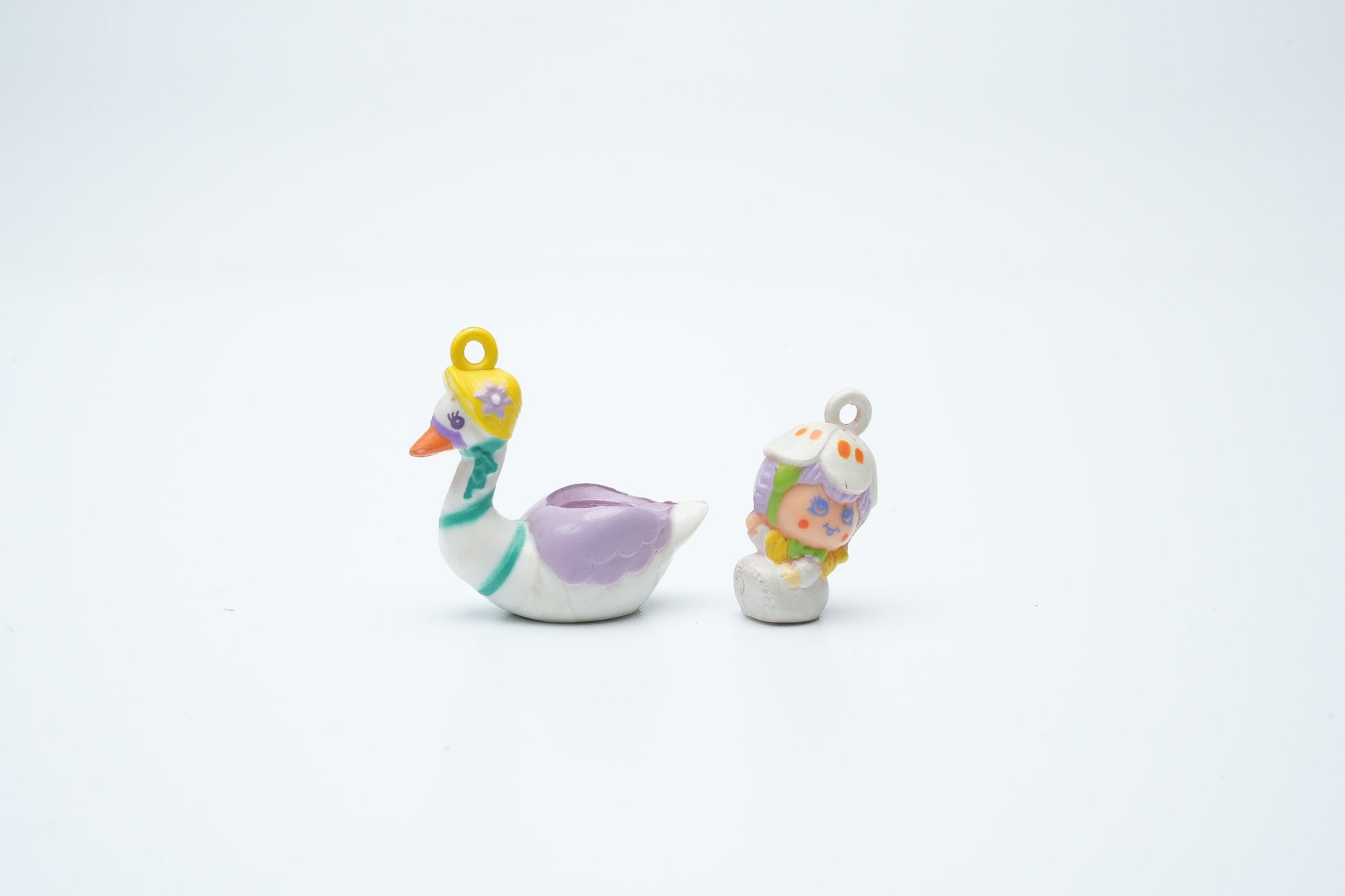 Vintage Charmkins Twinkle en Snowflower zwaan kettinghanger