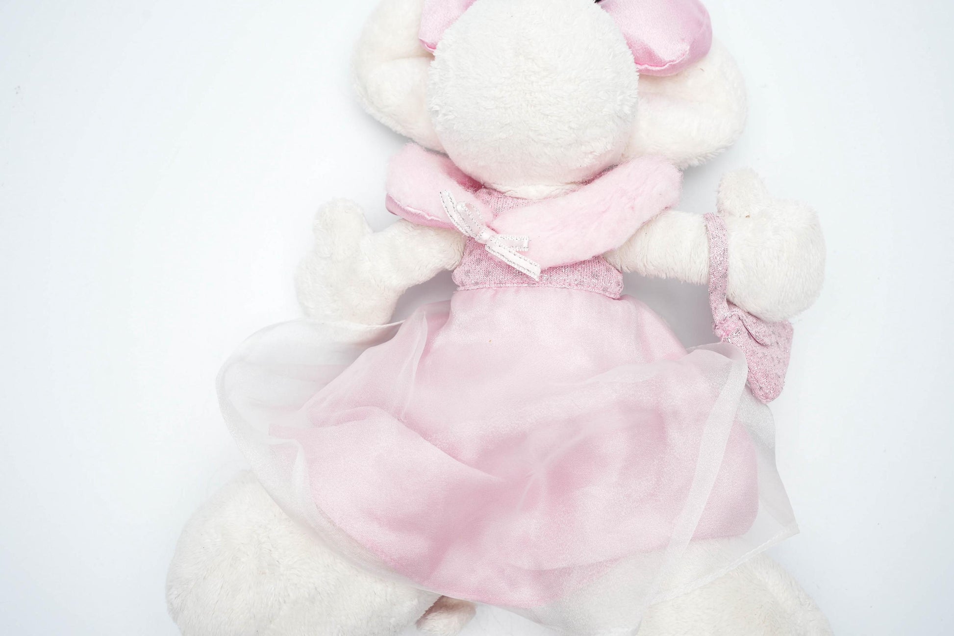 Laat je betoveren door de schattige vintage Diddlina knuffel in luxe roze jurk! Deze elegante muis, afkomstig uit de iconische Diddl collectie van Depesche, is de perfecte combinatie van nostalgie en stijl. Met haar zachte witte vacht en sprankelende uitstraling, is Diddlina een must-have voor verzamelaars en fans van de jaren 90. Of je nu een unieke decoratie zoekt of een bijzonder cadeau wilt geven, deze knuffel brengt gegarandeerd een glimlach op ieders gezicht.