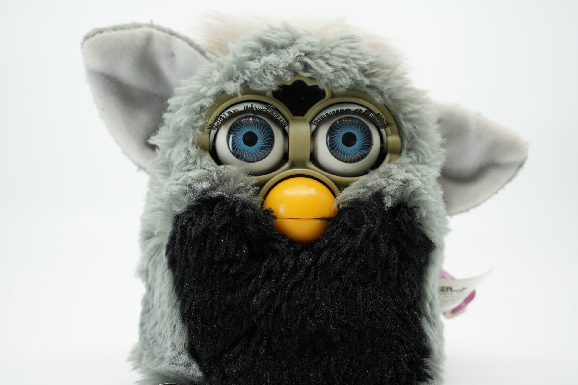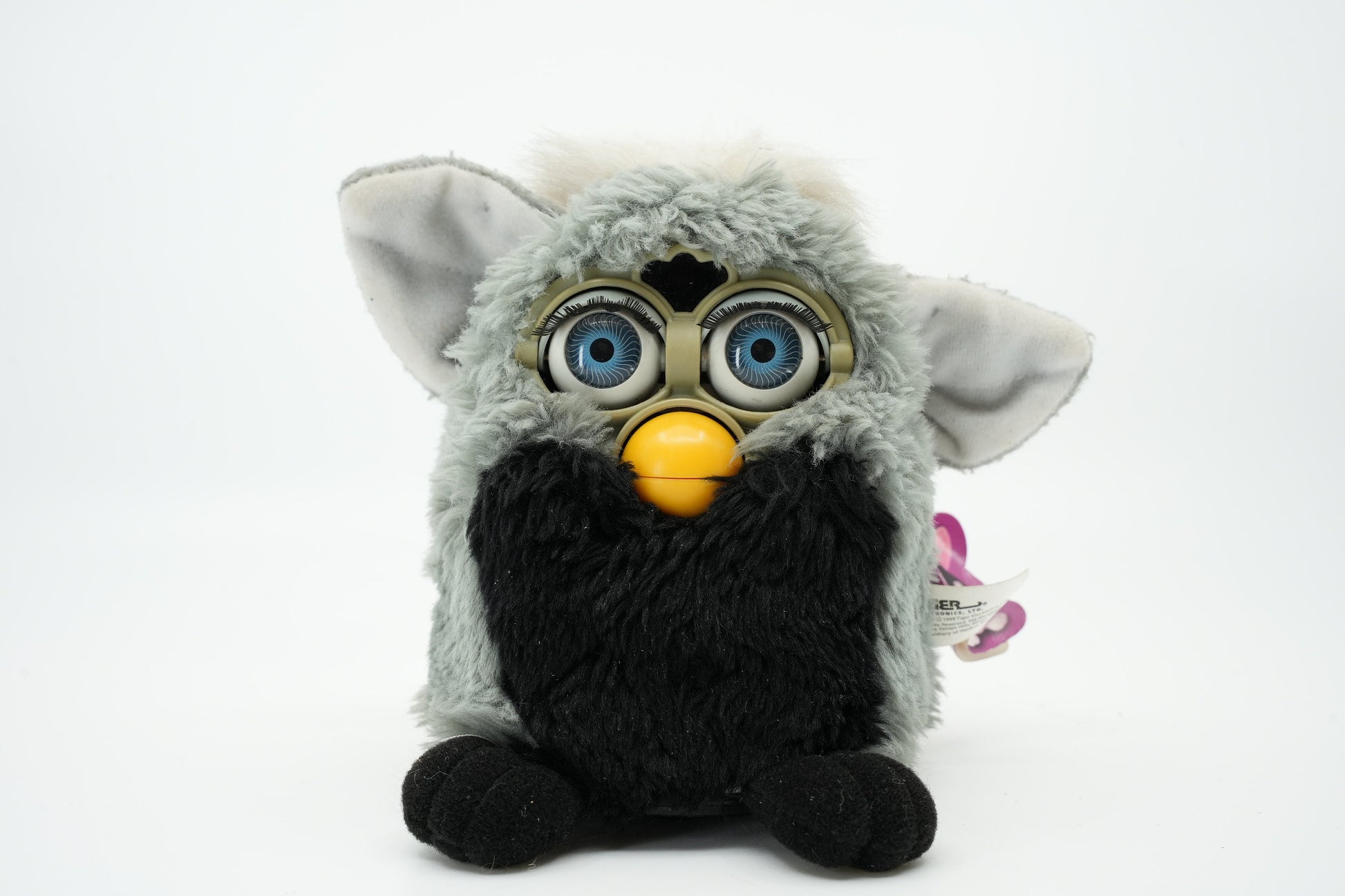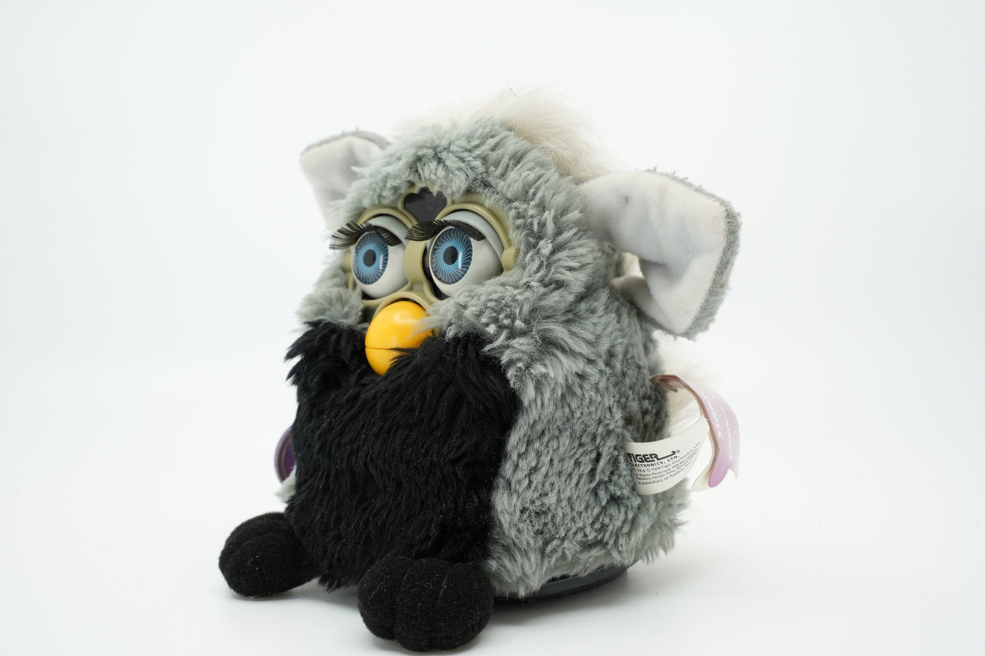 Vintage Furby Koala blauwe ogen 1999 | furby tag | Vintage Furby met Grijs/ Zwarte vacht | Spreekt Engels en Furbish