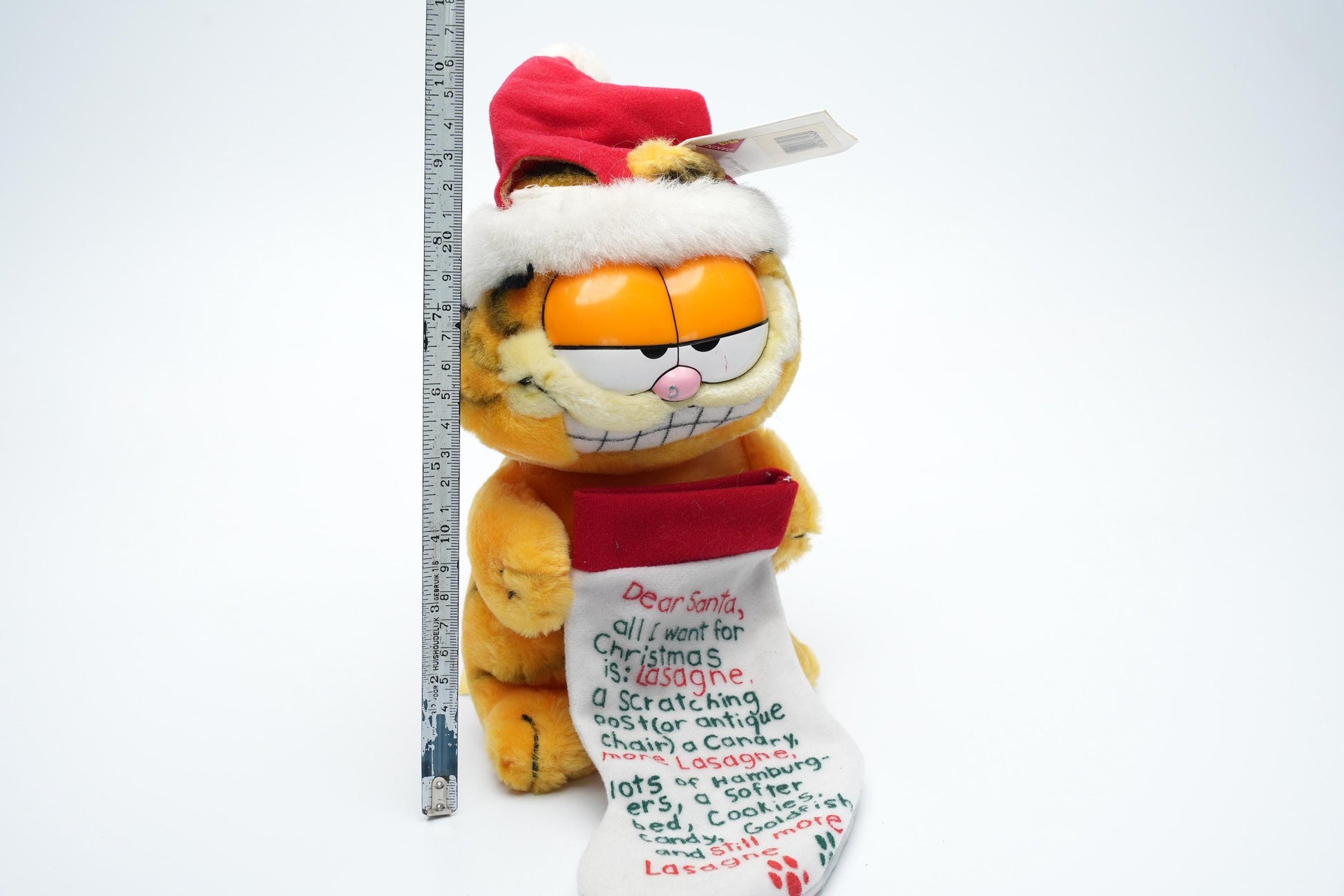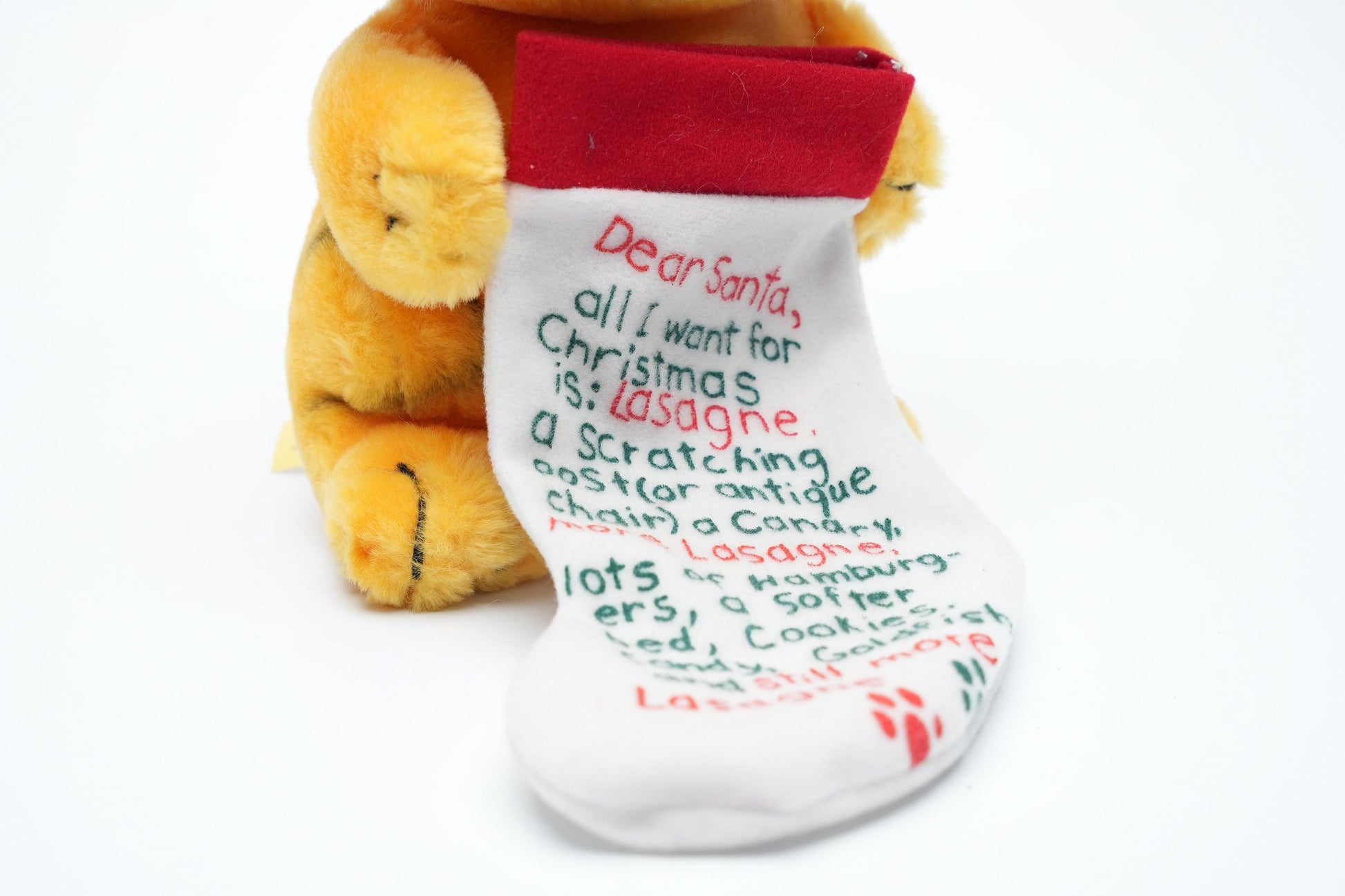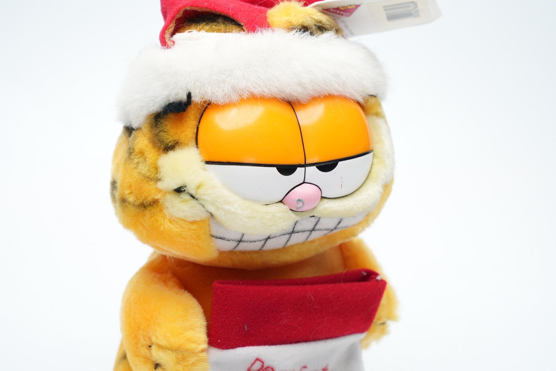 Vintage Garfield Kerstman Knuffel met Kerstsok – 25 cm (10 inch) – 1981 United Feature Syndicate