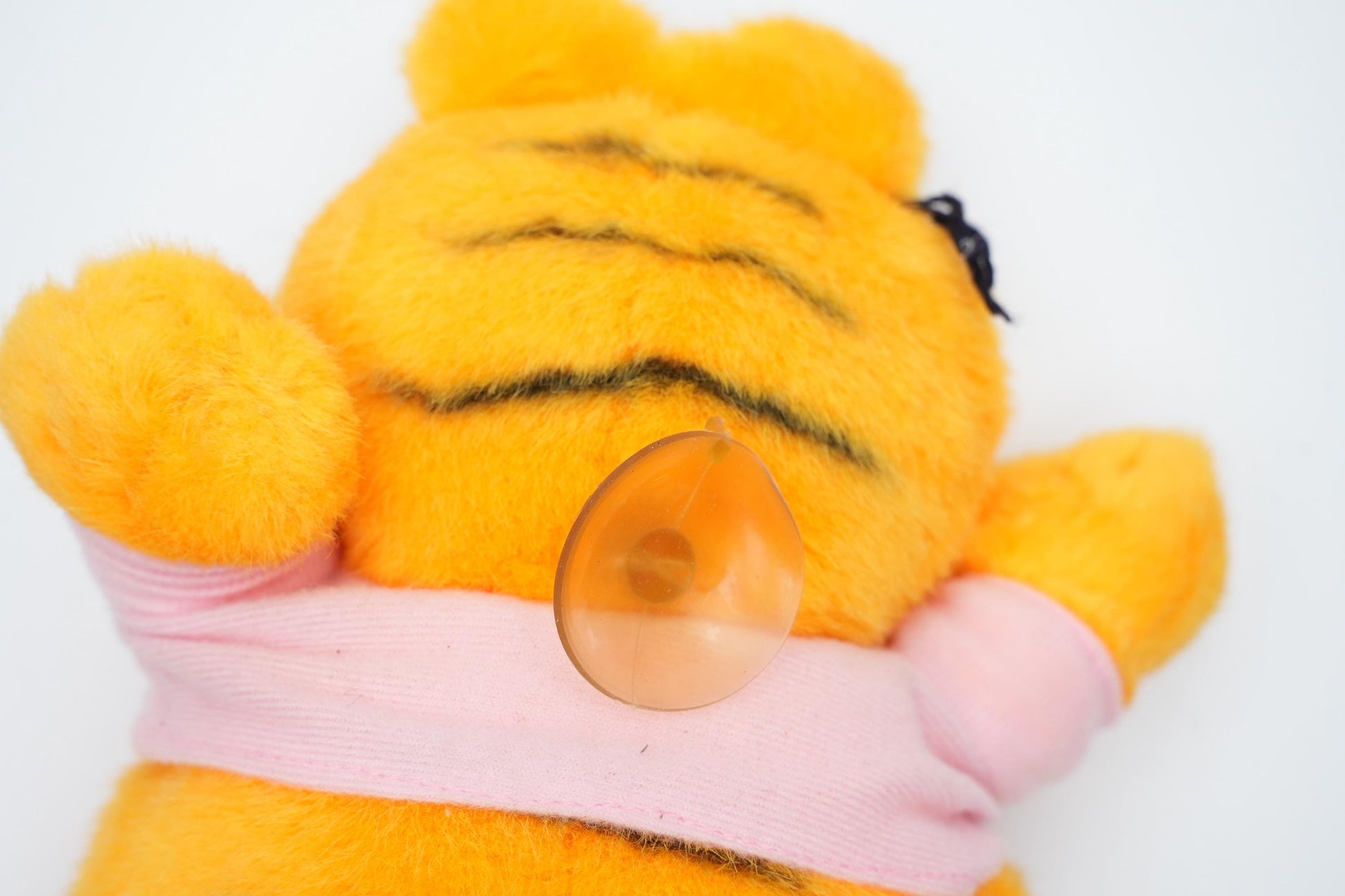 Breng de charme van de jaren '80 in huis met deze unieke Vintage Garfield Knuffel met Roze Sjaal, geproduceerd door United Feature Syndicate Inc. en Paws in 1981. Deze pluchen Garfield, perfect in zijn luie houding, is niet alleen een knuffel maar ook een nostalgisch verzamelobject dat met liefde en humor de geest van de iconische stripkat vastlegt.
