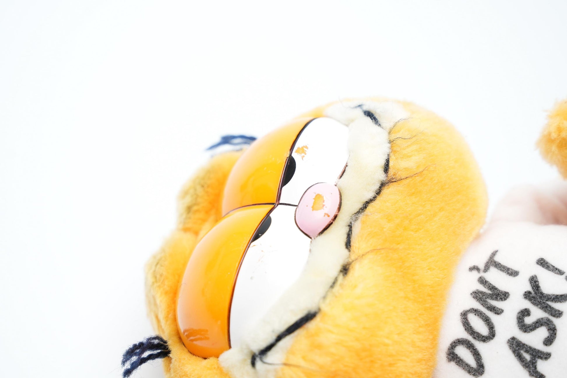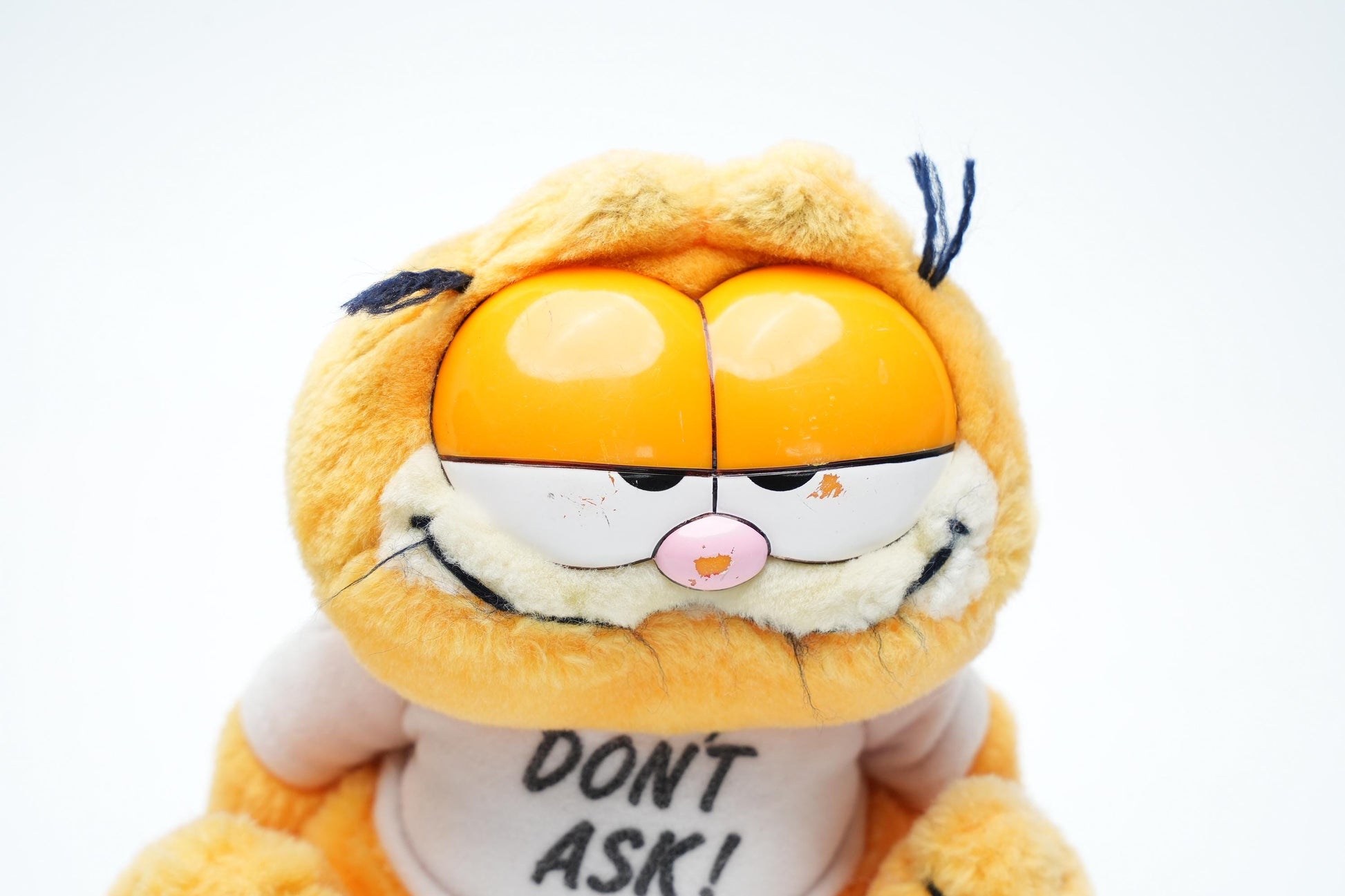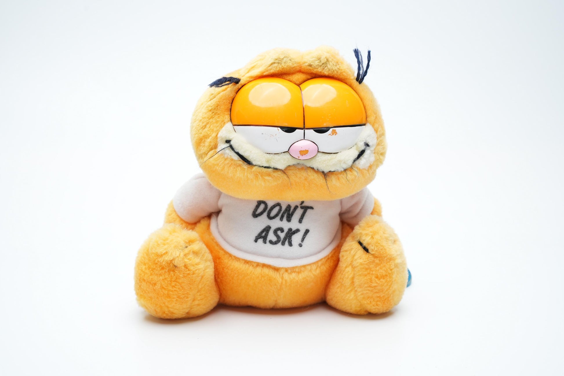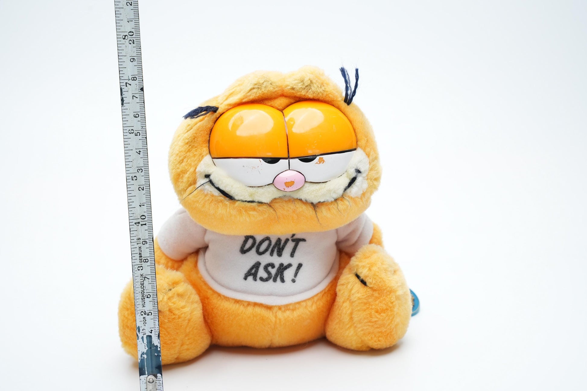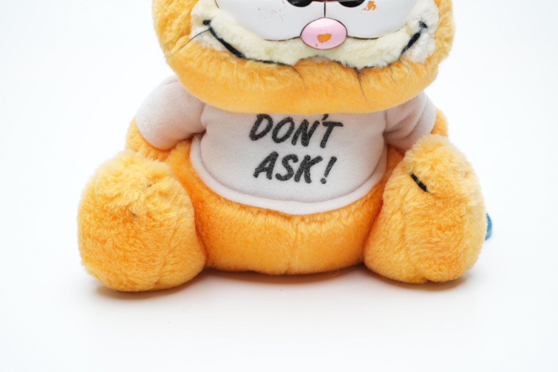 Vintage Garfield Knuffel – Zittend met "Don't Ask!" Shirt – 18 cm (7 inch)