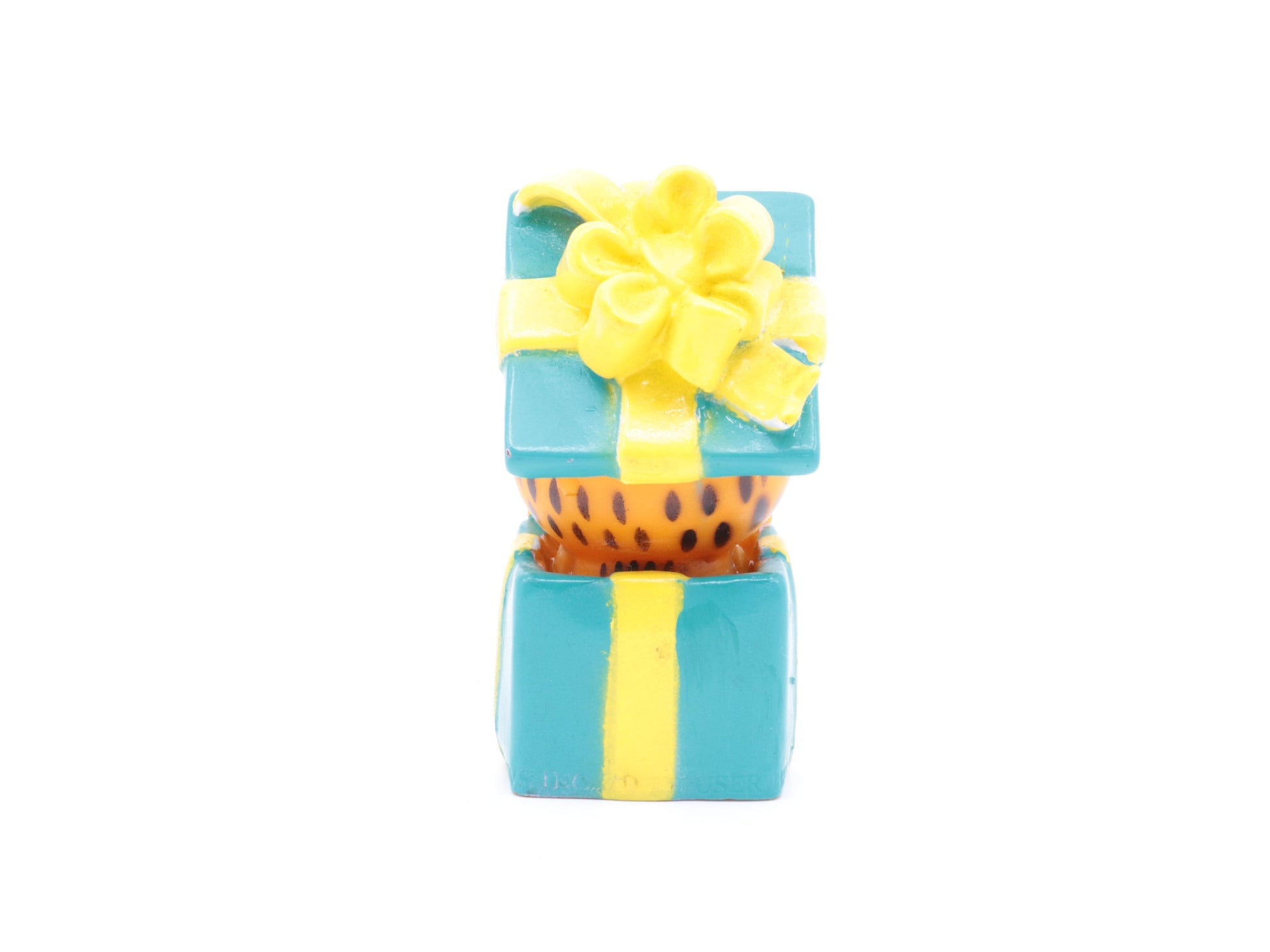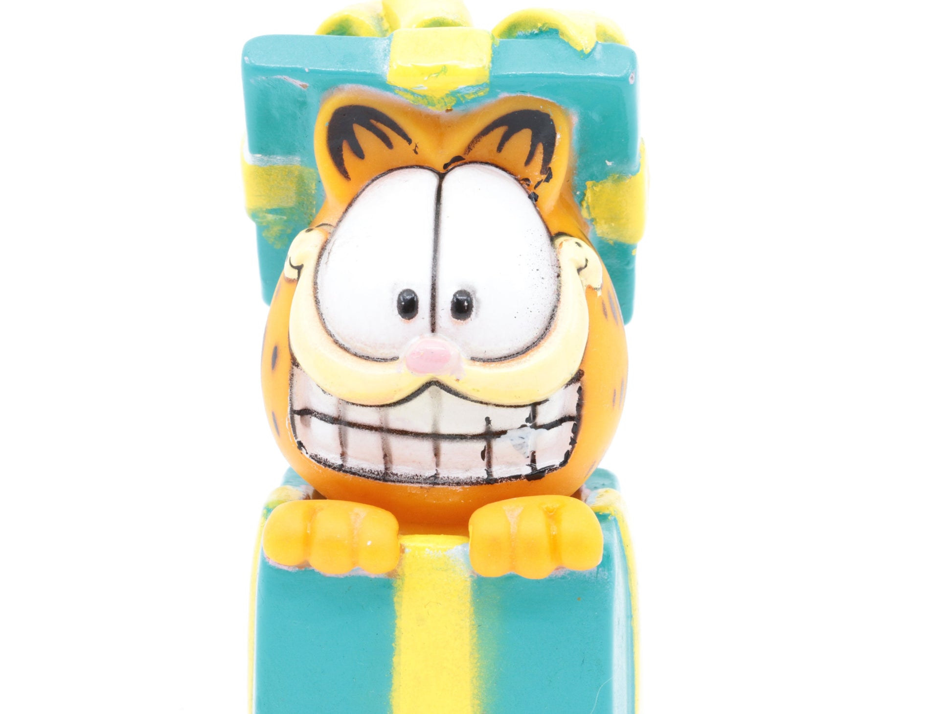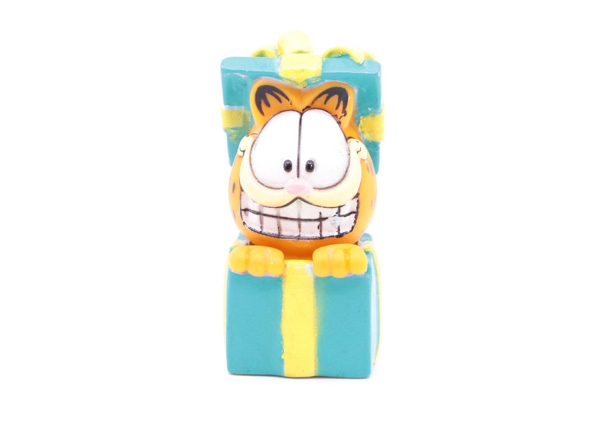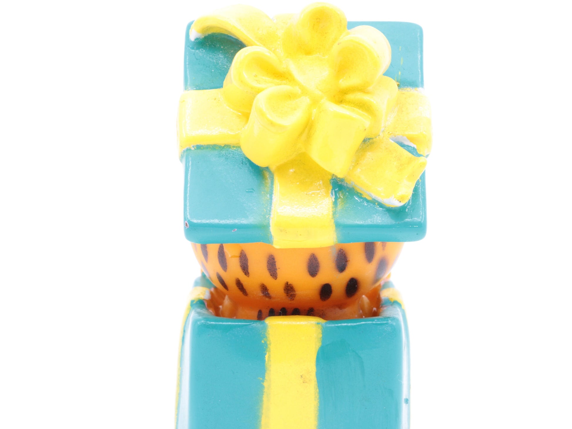 Vintage Garfield plastic toy gemaakt door Paws in jaren 80| Garfield suprise | Garfield in een kado | Vintage garfield speeltje
