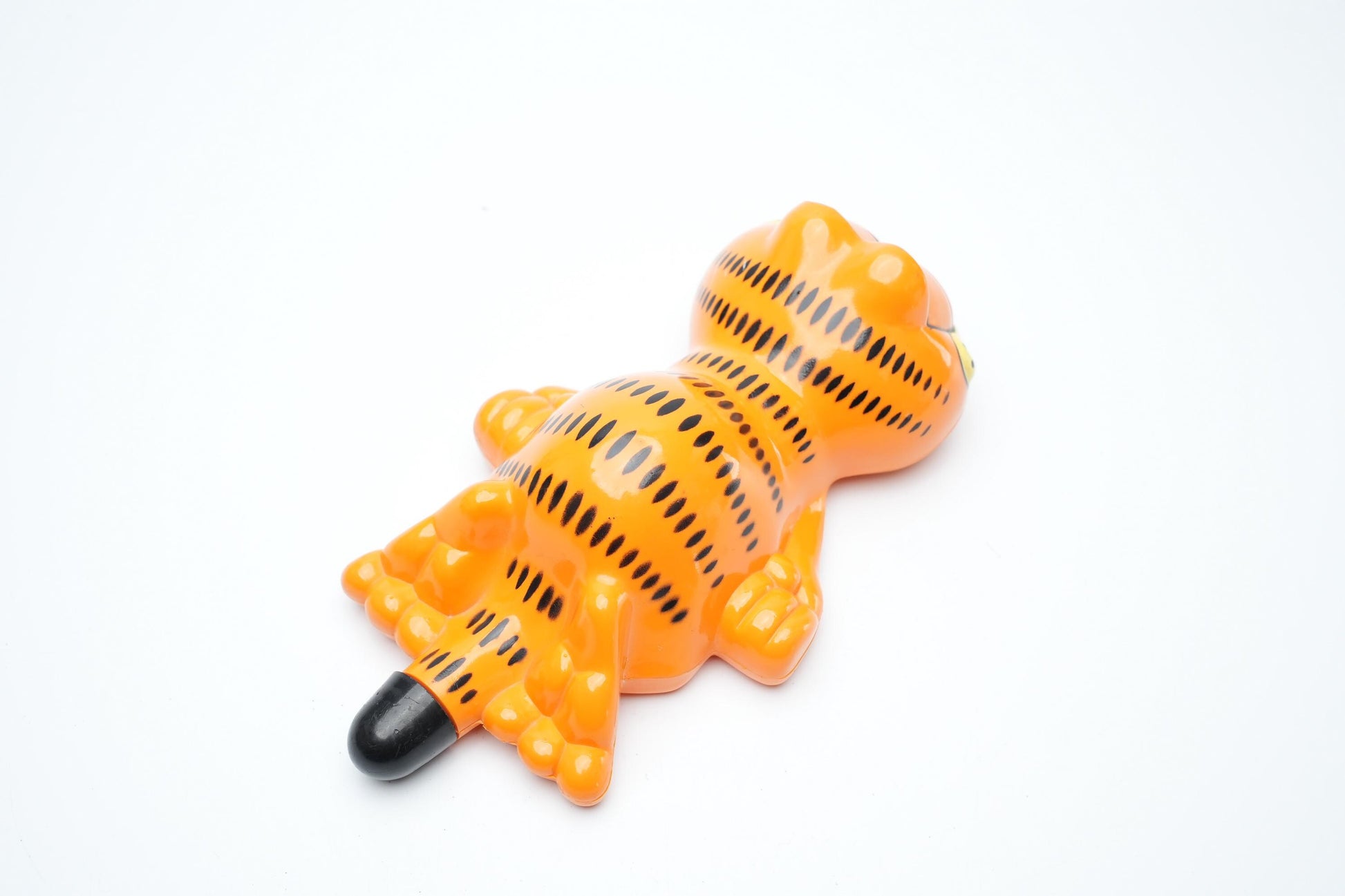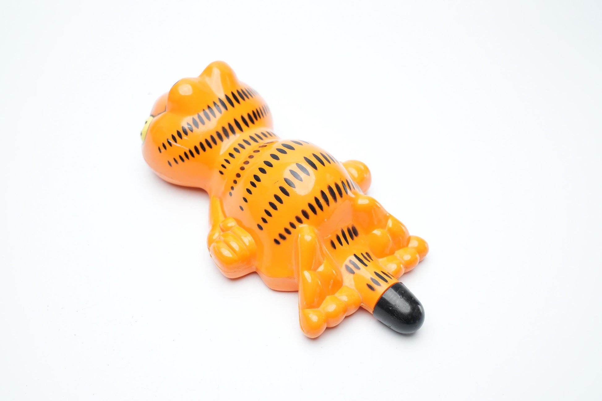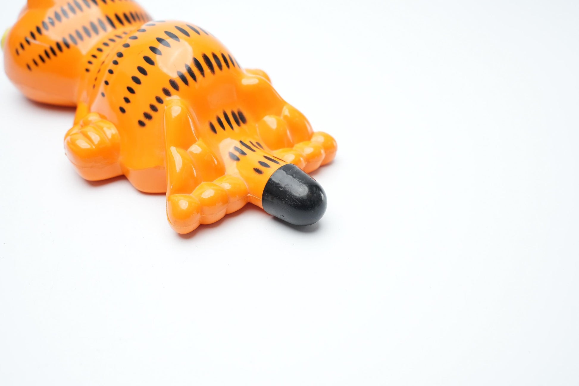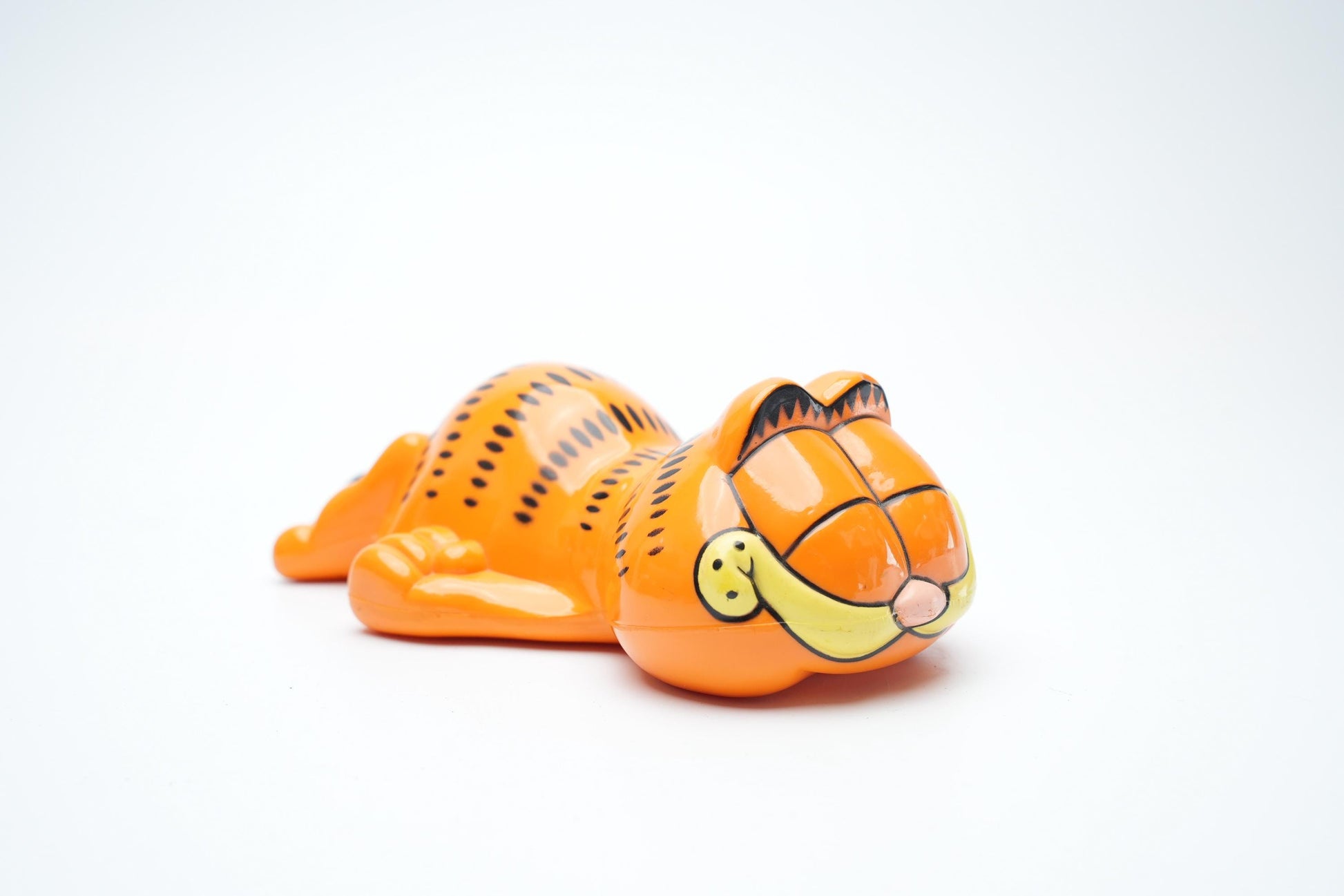Ontdek de charme van de Vintage Garfield Spaarpot - Liggend Ontwerp, een uniek verzamelobject dat de iconische kat in een ontspannen pose toont. Gemaakt door United Feature Syndicate Inc. in samenwerking met Paws in 1981, straalt deze spaarpot retro vibes uit. De levendige kleuren en het gedetailleerde ontwerp maken het niet alleen een praktische spaaroplossing, maar ook een geweldig decoratief stuk dat elke ruimte opvrolijkt.
