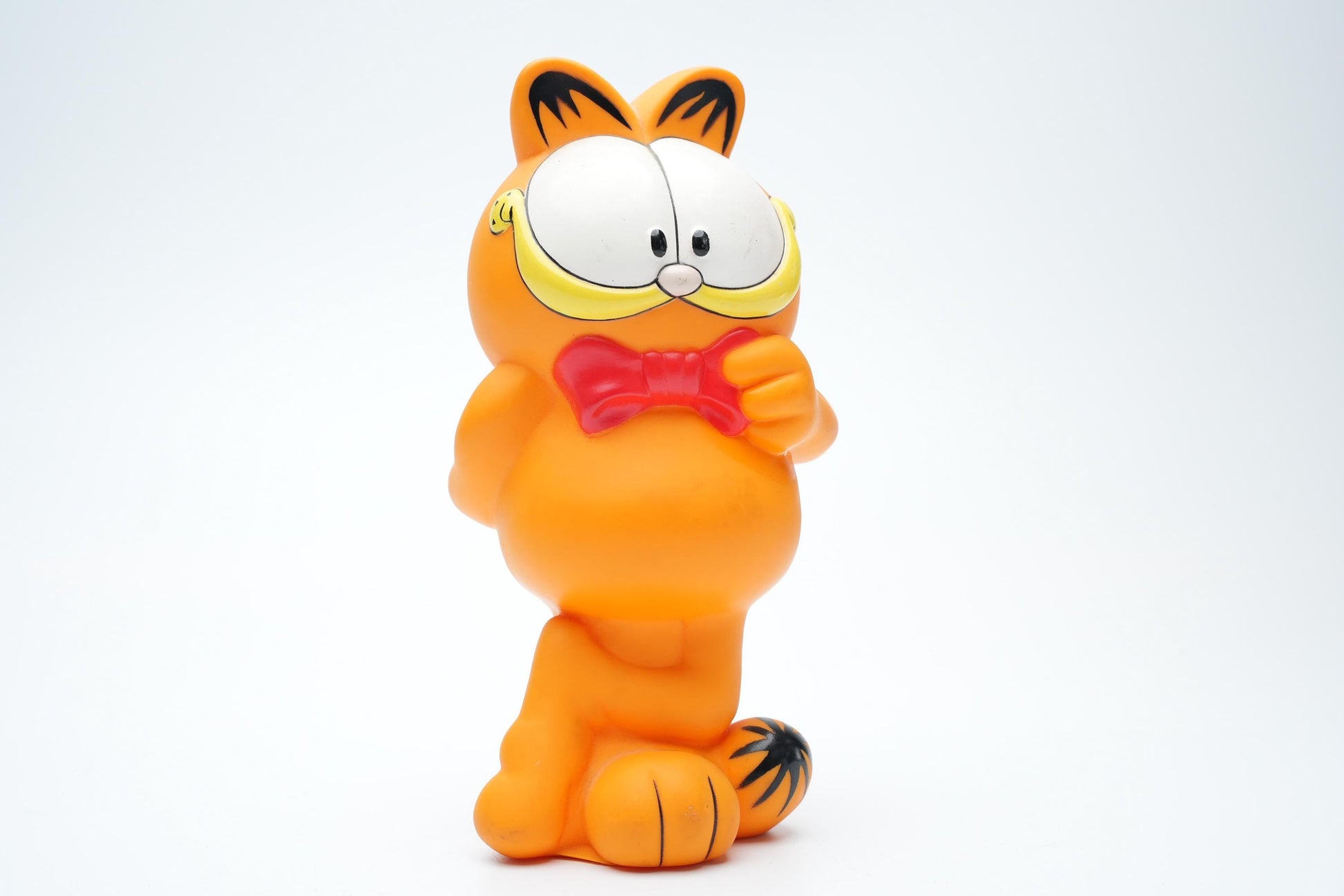 Voeg een vleugje retro-charme toe aan je interieur met de Vintage Garfield Spaarpot met Strik van United Feature Syndicate Inc. & Paws, geproduceerd in 1981! Deze unieke spaarpot is niet alleen praktisch, maar ook een prachtig verzamelobject dat de vrolijke geest van Garfield vastlegt. Met zijn opvallende rode strik en iconische uitstraling is deze spaarpot een must-have voor elke fan van de nostalgische cartoon.