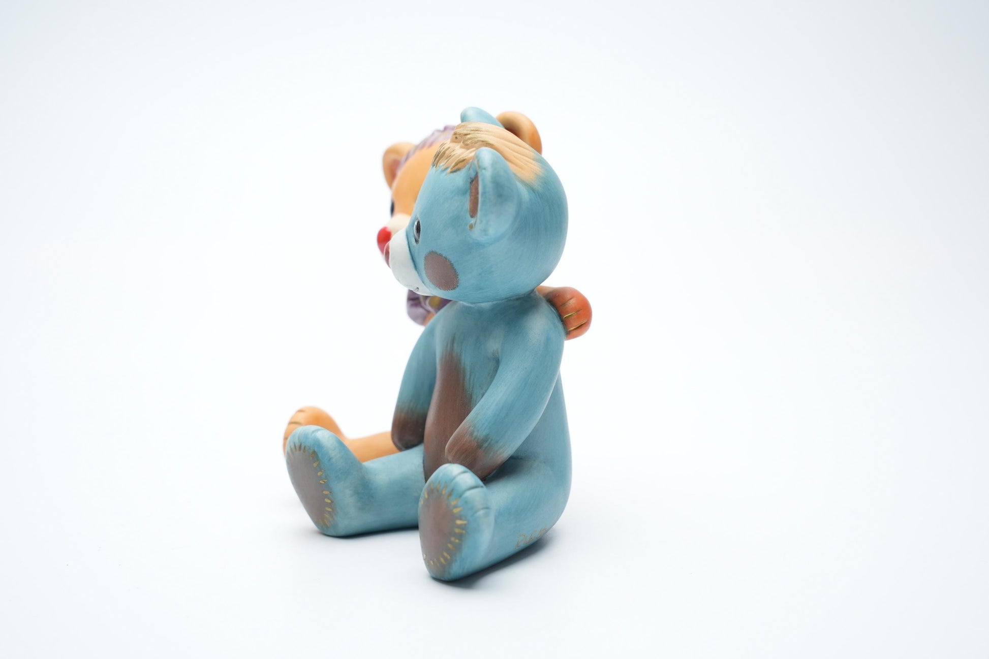 Laat je betoveren door het prachtige vintage Goebel Rosina Wachtmeister beeldje "Isa & Vellio". Dit handgeschilderde keramische duo bestaat uit twee schattige teddyberen die met hun warme oranje en koele blauwe tinten een gevoel van nostalgie en charme uitstralen. Met hun vrolijke gezichten en unieke details, zoals het strikje van Isa en de pluizige haaraccenten van Vellio, is dit beeldje een perfecte aanvulling voor elke verzameling of als decoratie in je huis.