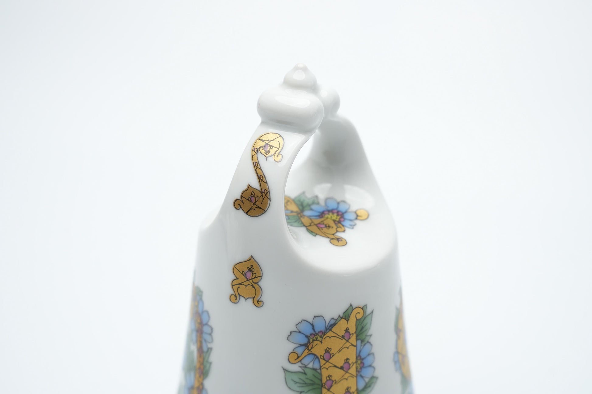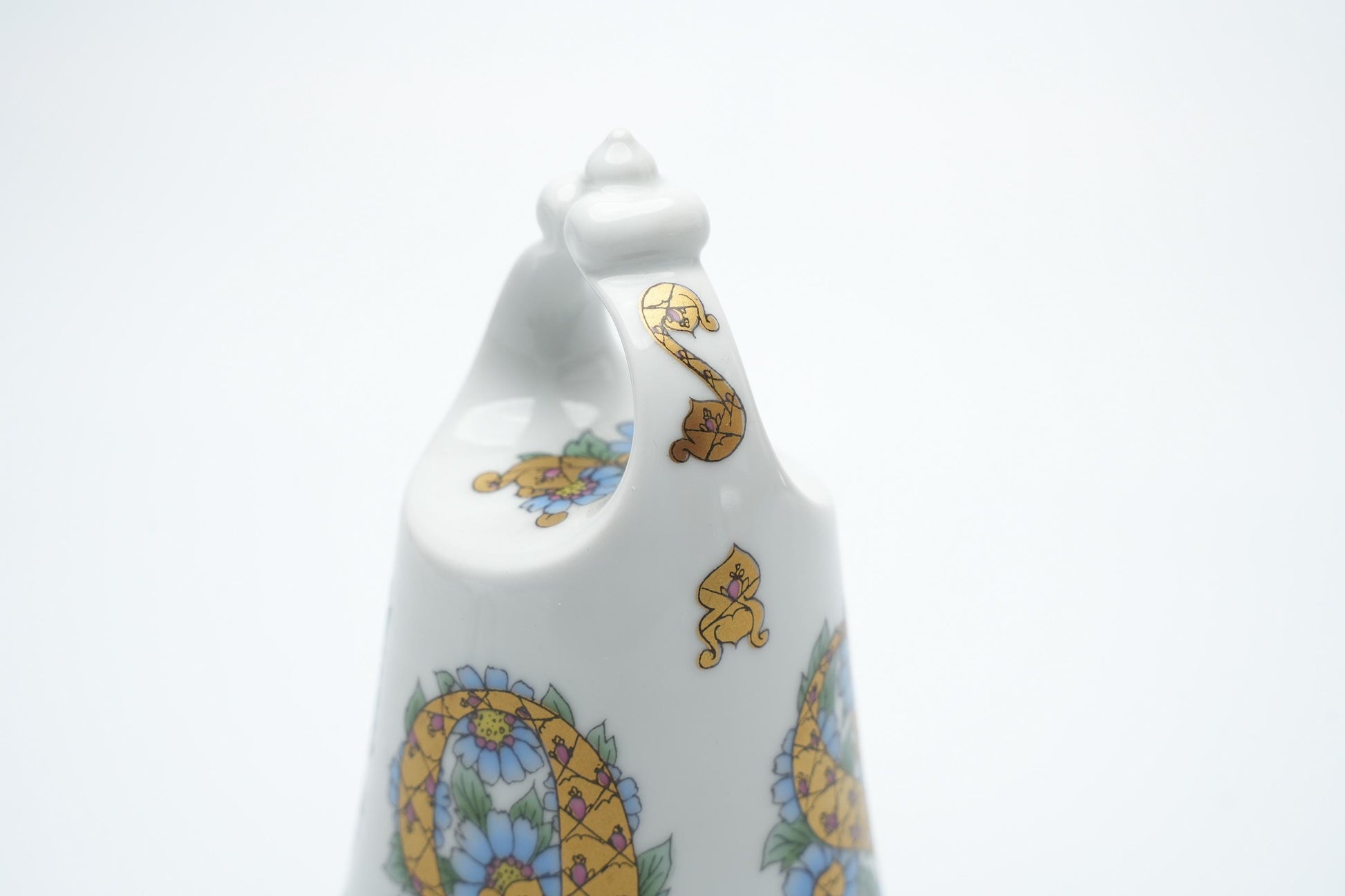 Ontdek de tijdloze charme van de Vintage Hutschenreuther Jaarbel 1980 - Limited Edition Nr. 756/10000. Dit meesterwerk van porselein, ontworpen door de gerenommeerde kunstenaar Ole Winther, is niet alleen een prachtig decoratief element, maar ook een waardevol verzamelobject. Het betoverende bloemenpatroon met elegante gouden accenten maakt deze bel tot een eye-catcher in elke ruimte.