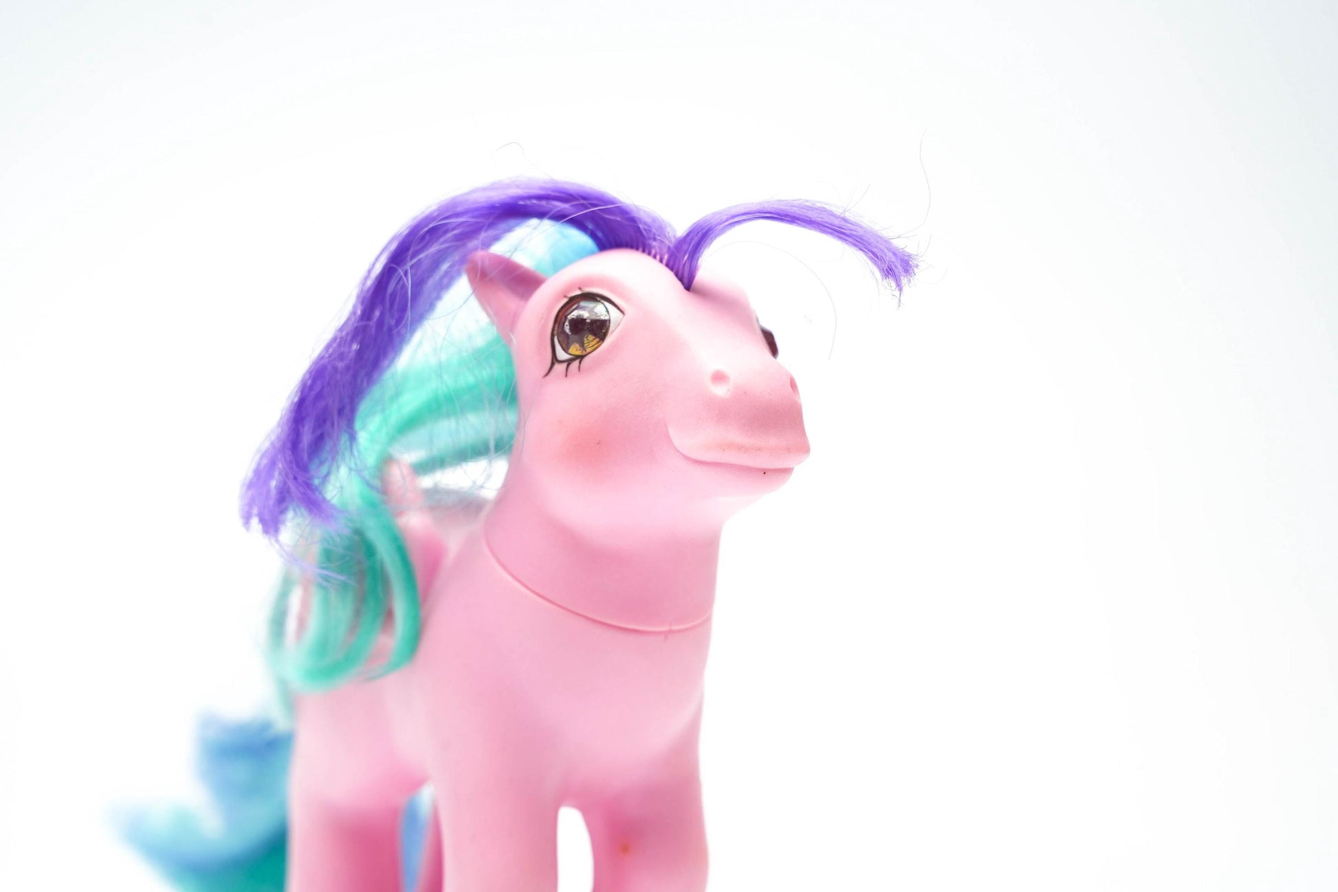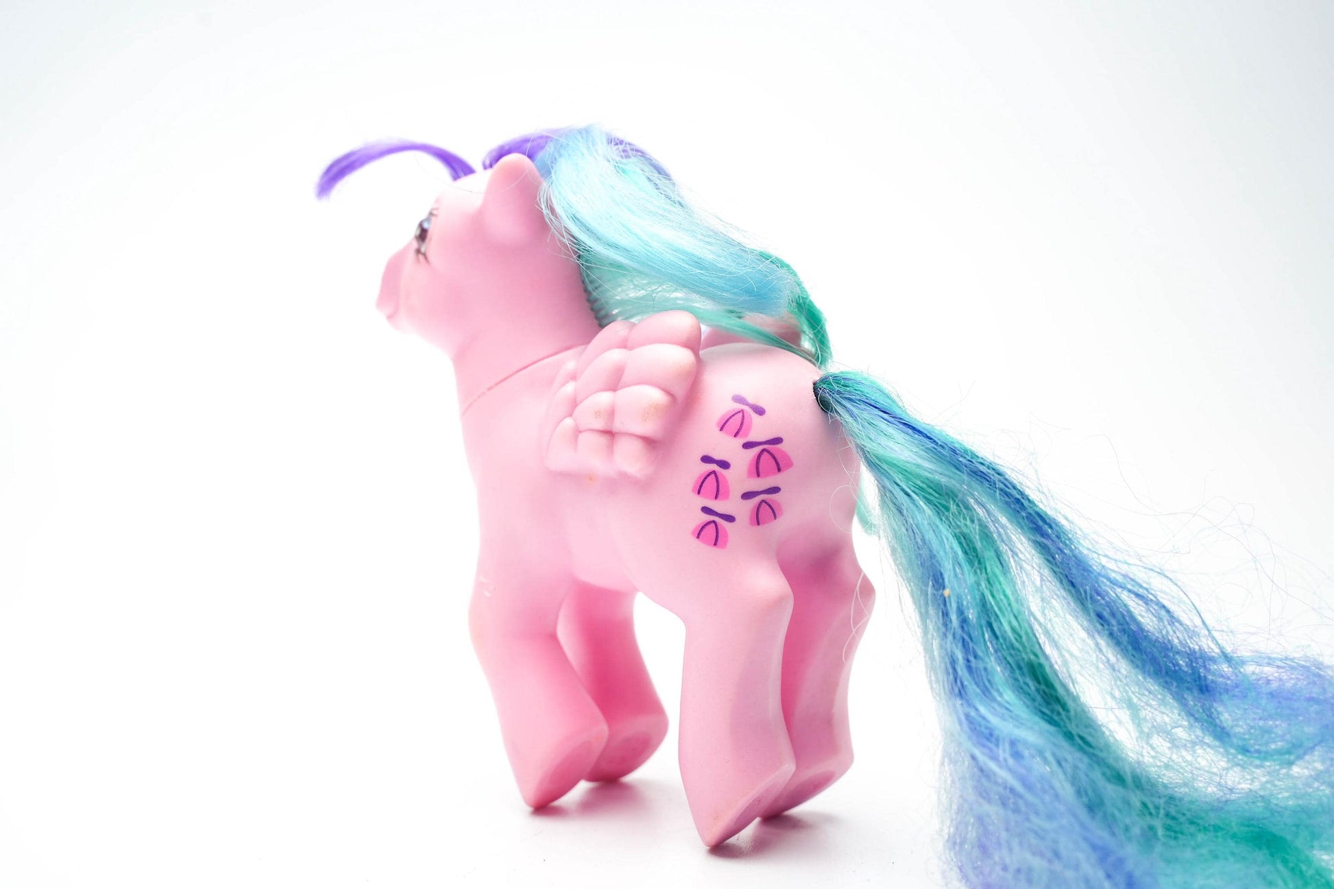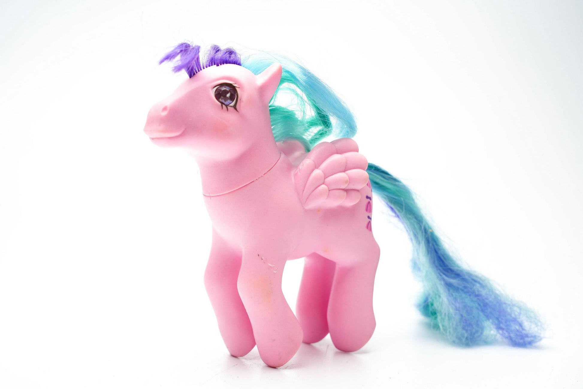 Herbeleef de magie van de jaren 80 met deze originele My Little Pony G1 Whizzer, een betoverende Pegasus uit de zeldzame Twinkle Eyed Ponies-serie van Hasbro. Deze vrolijke roze pony is een waar icoon uit 1987 en een must-have voor iedere verzamelaar of nostalgische ziel.