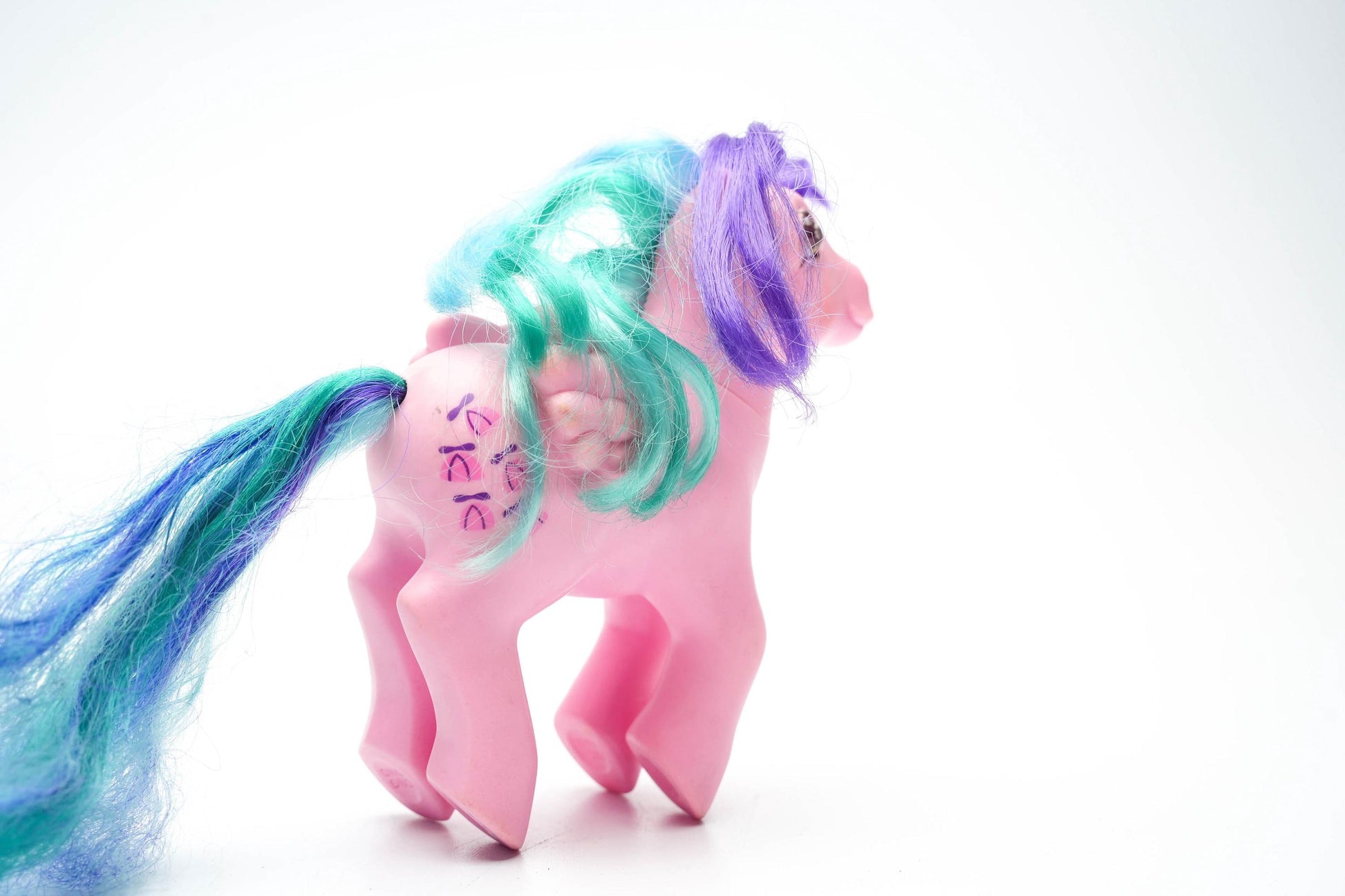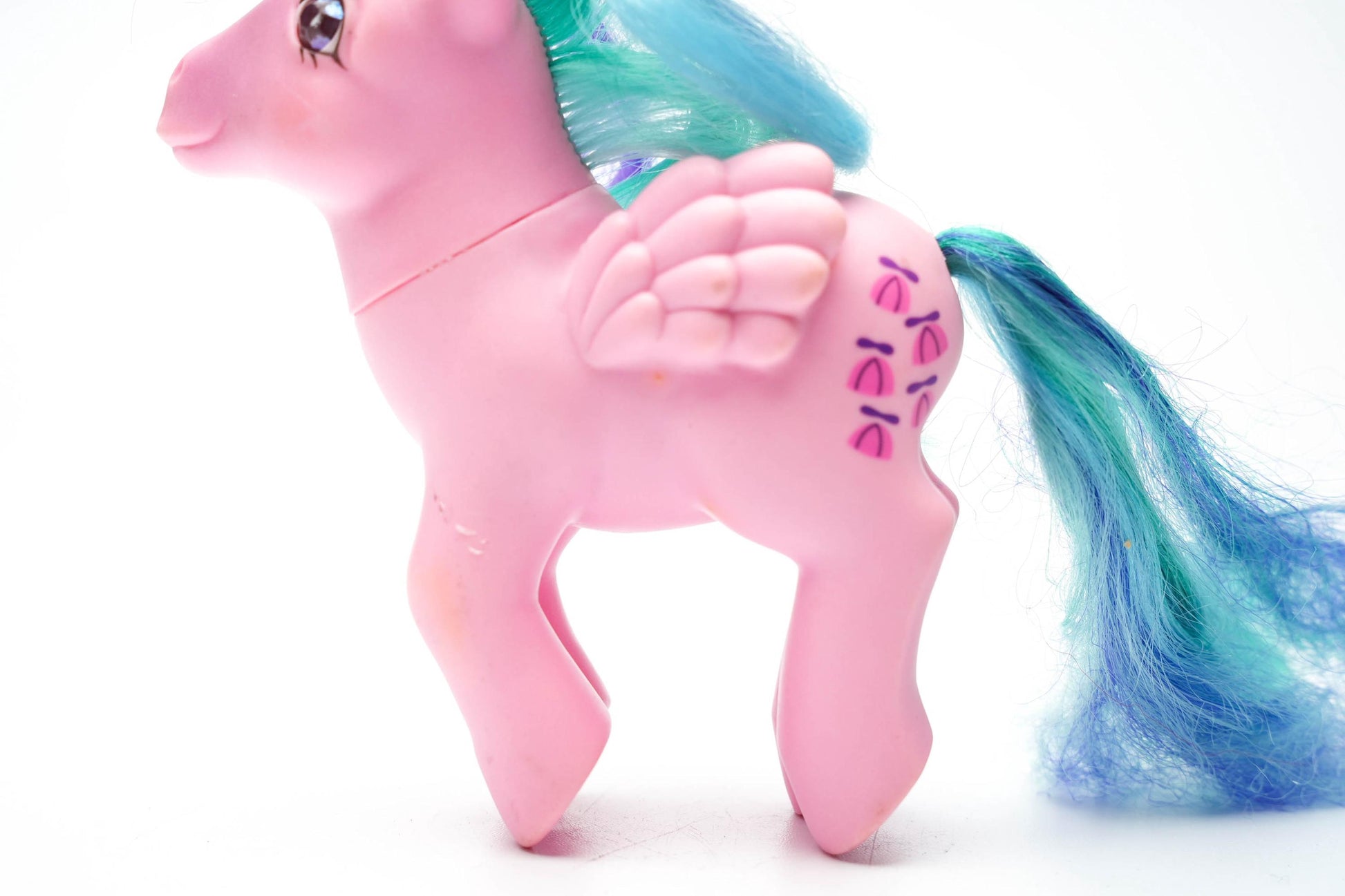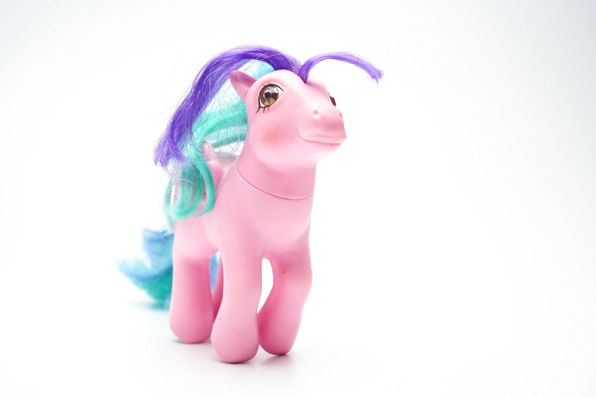 Herbeleef de magie van de jaren 80 met deze originele My Little Pony G1 Whizzer, een betoverende Pegasus uit de zeldzame Twinkle Eyed Ponies-serie van Hasbro. Deze vrolijke roze pony is een waar icoon uit 1987 en een must-have voor iedere verzamelaar of nostalgische ziel.