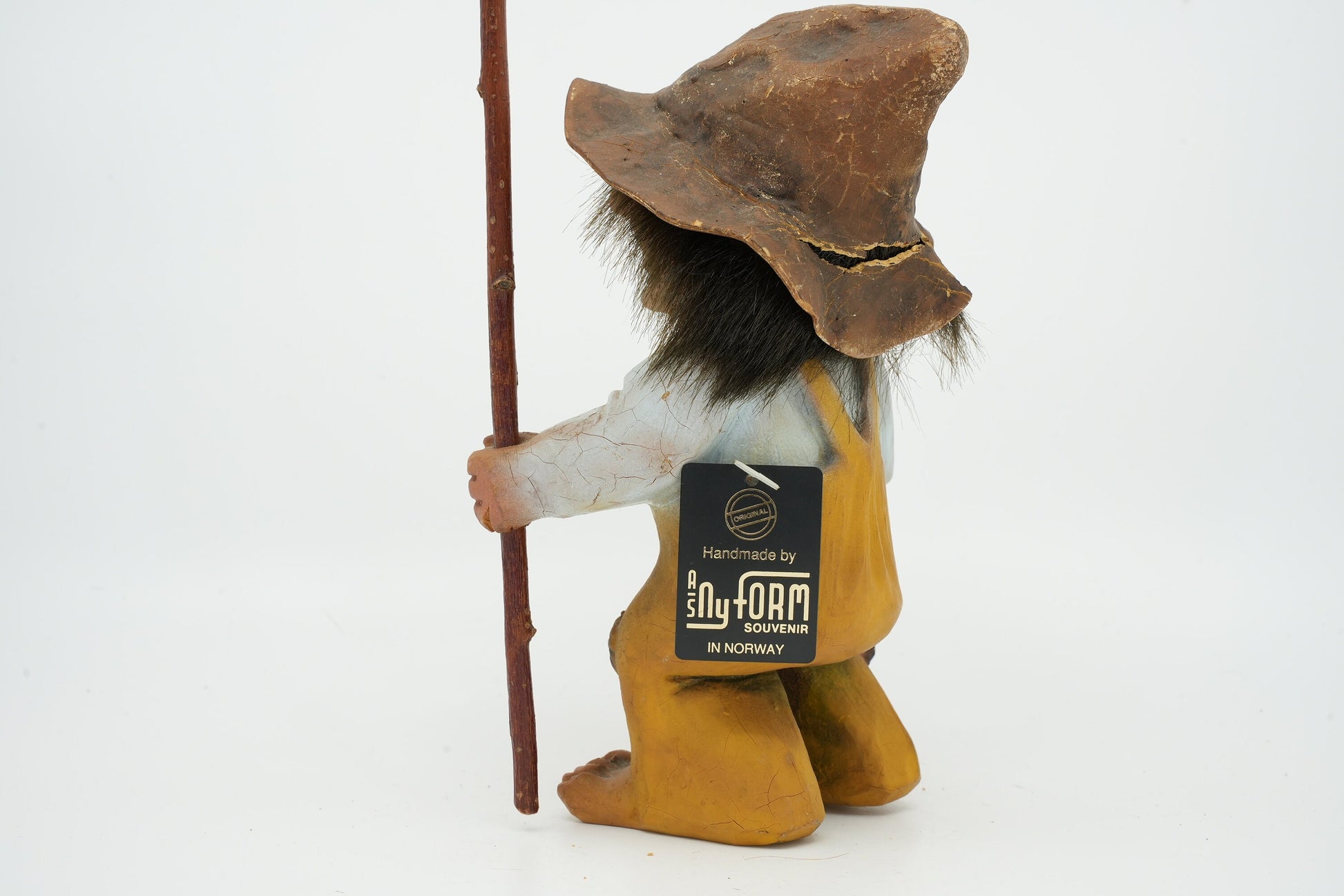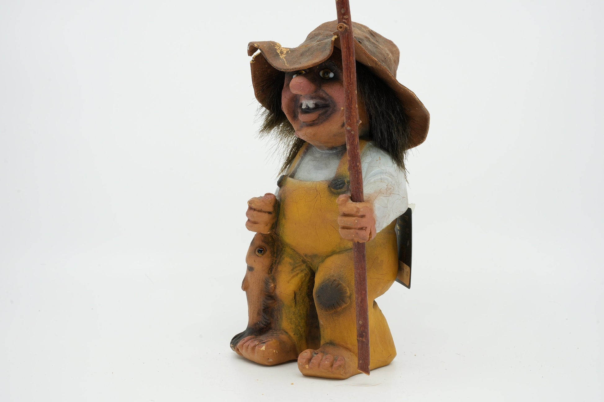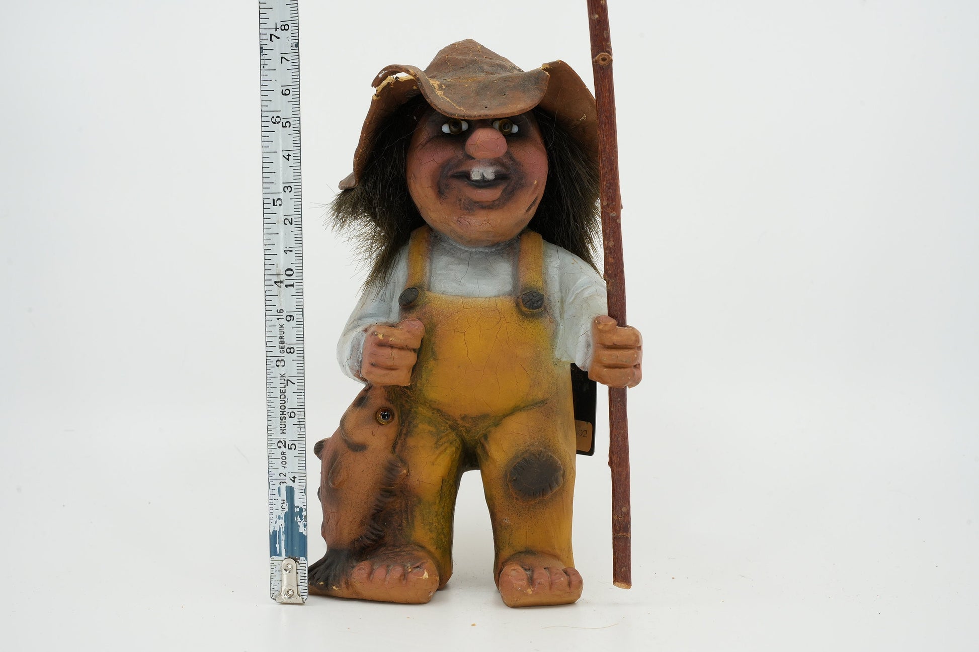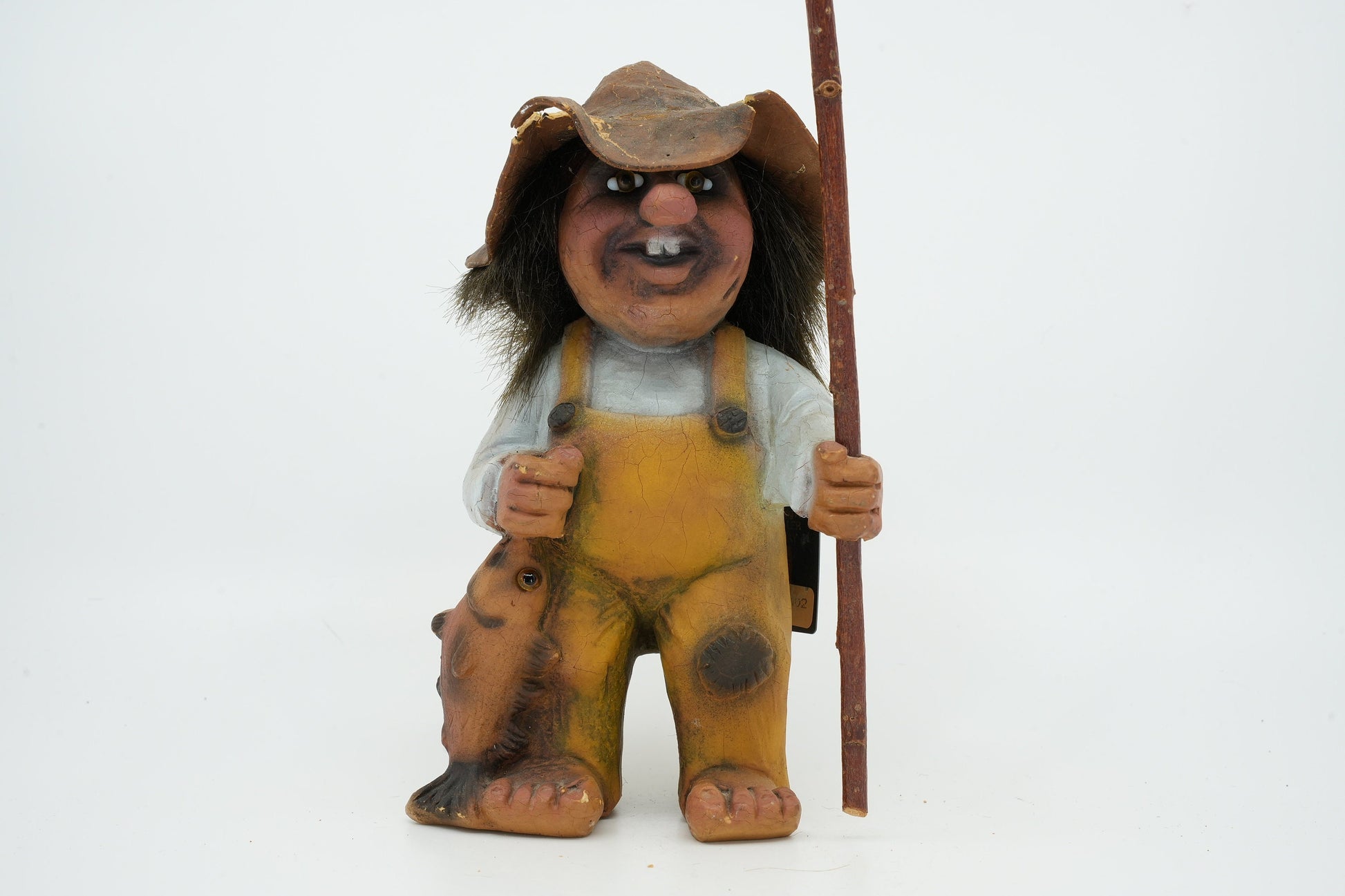 Vintage Noorse Trollen, Nyform Troll, verzamel beeldje, visser (man met vishengel)