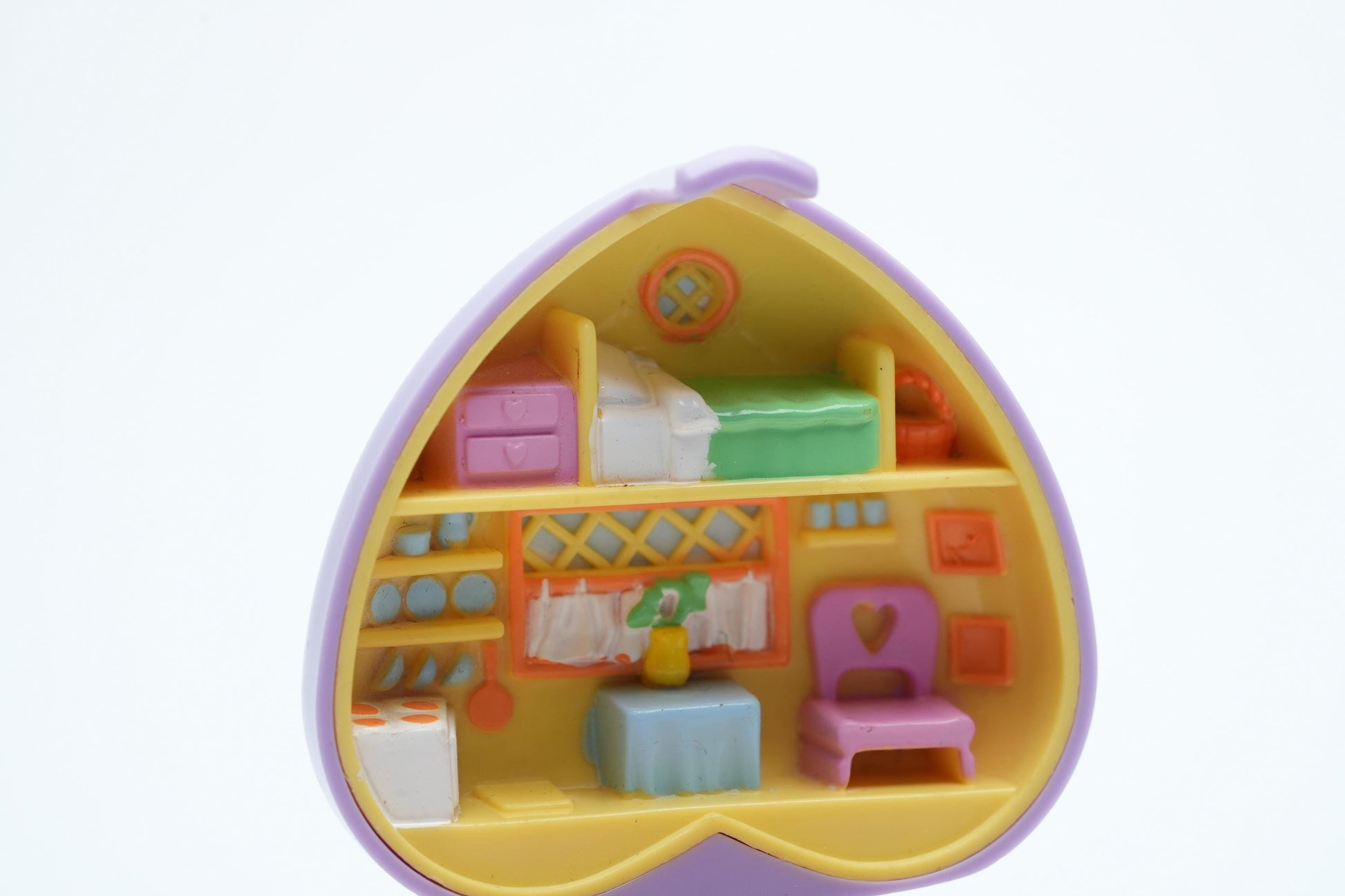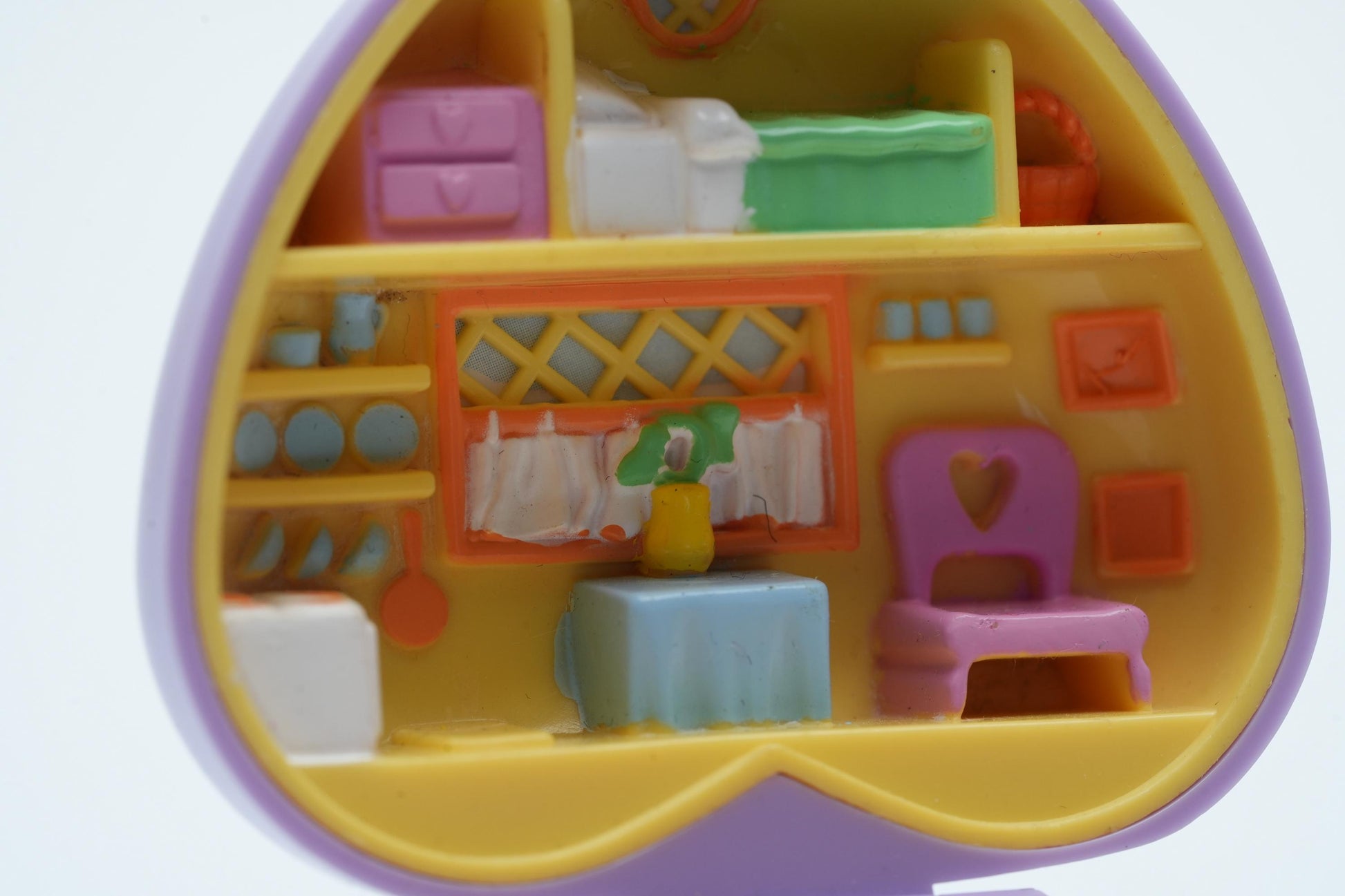 Herleef de magie van de jaren '90 met de Vintage Polly Pocket Pretty Bunnies – 1993 Bluebird Compact! Deze unieke hartvormige speelset opent zich tot een betoverende boerderijsetting, compleet met een slaapkamer, keuken en een schattig buitenverblijf waar twee originele konijntjes hun sprongetjes maken. Perfect voor verzamelaars en liefhebbers van nostalgie!