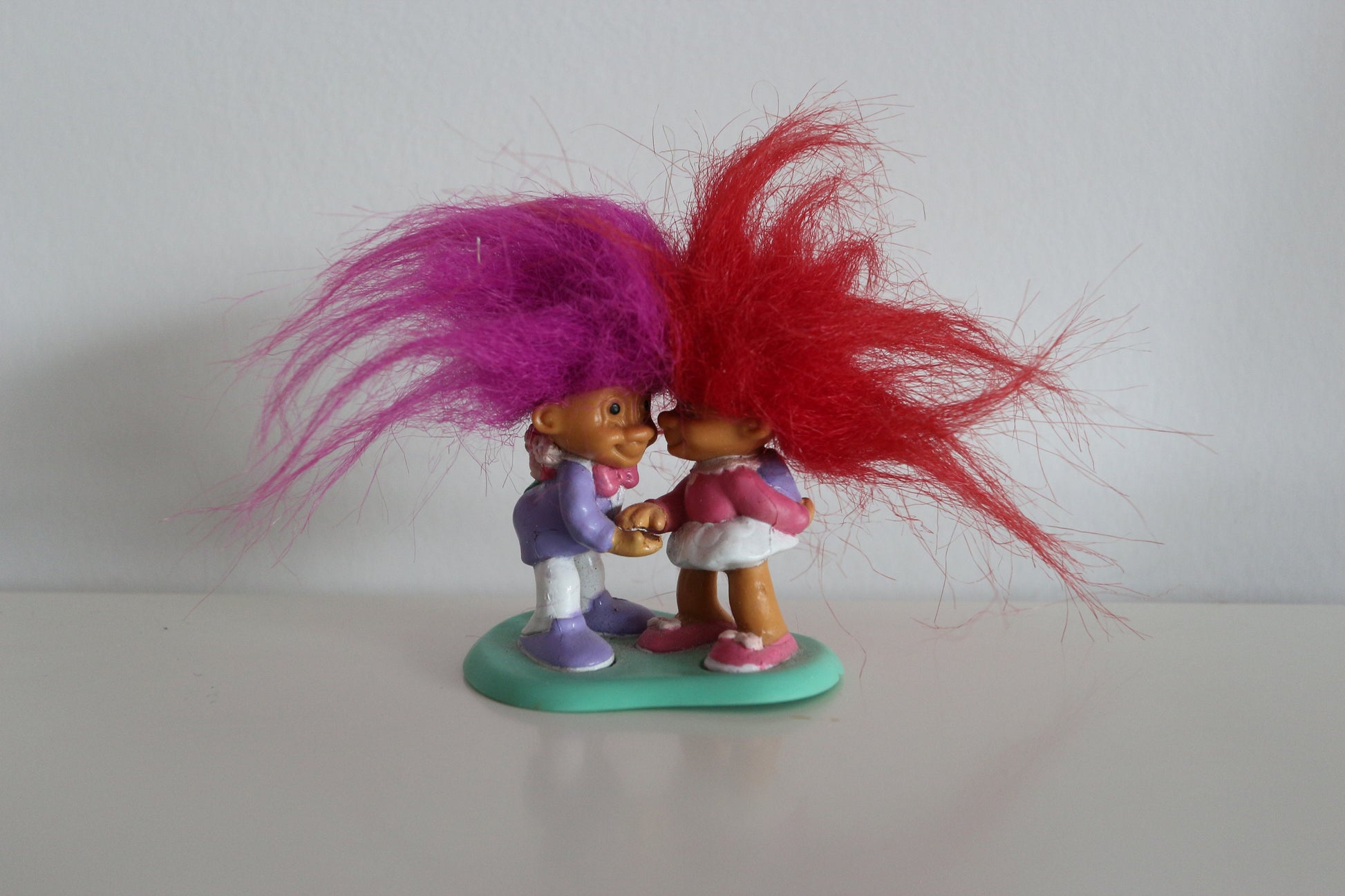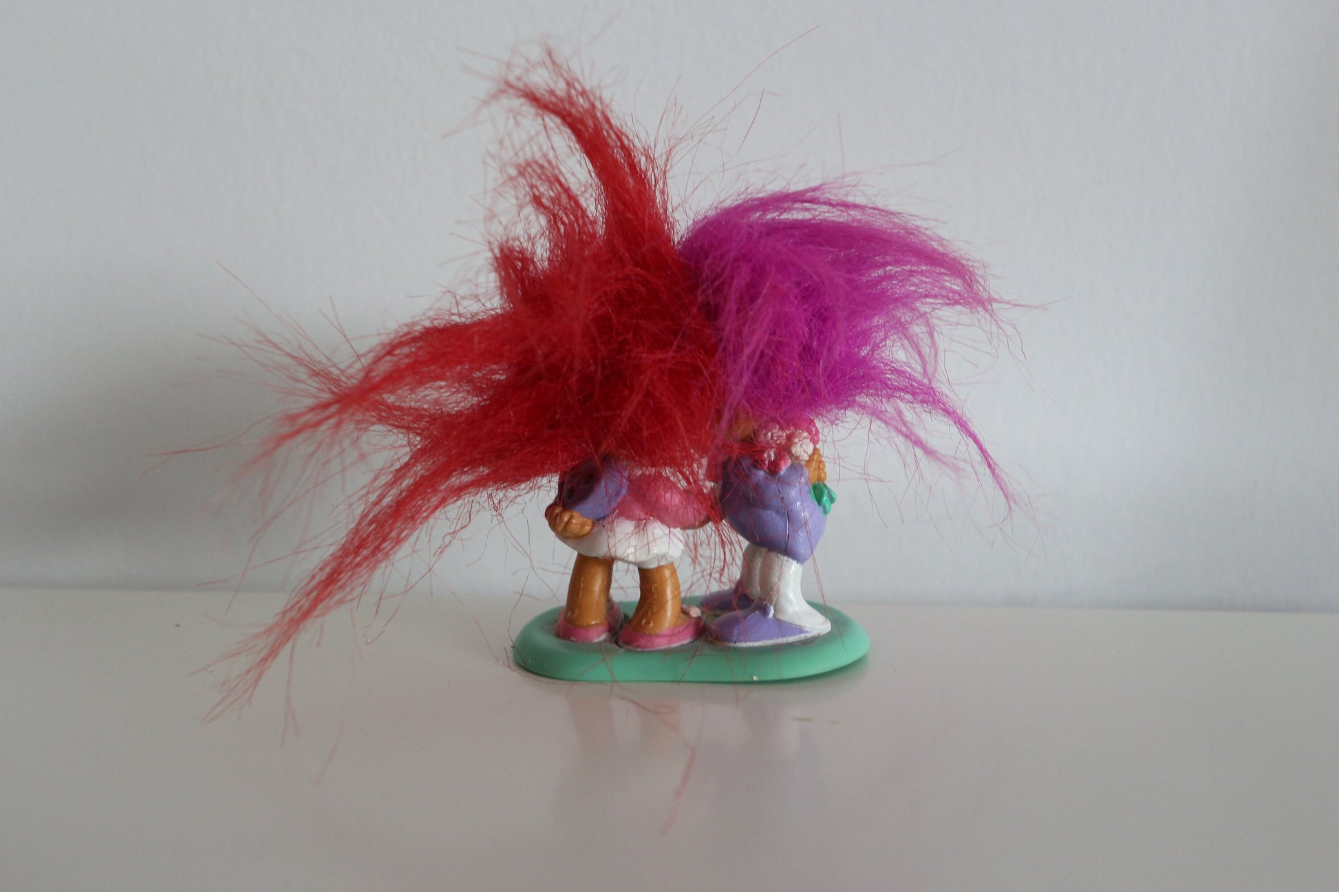 Vintage Trollen figuurtjes paars en rood haar (stel)