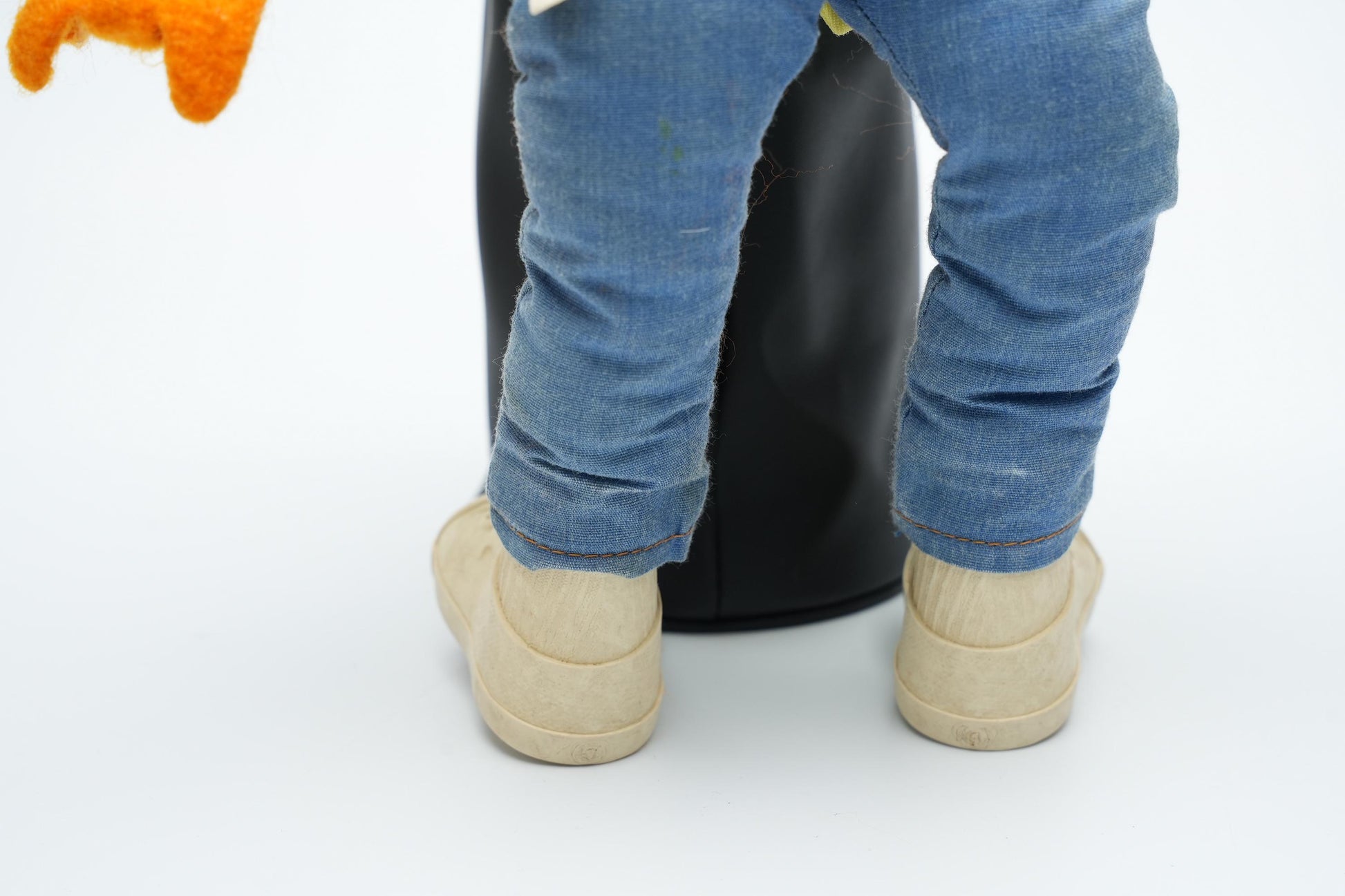 - Conditie: In vintage conditie met enige gebruikssporen, wat bijdraagt aan het karakter en verhaal van de pop.
